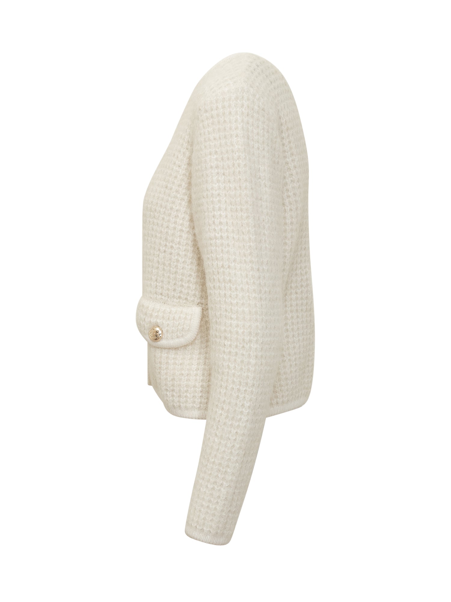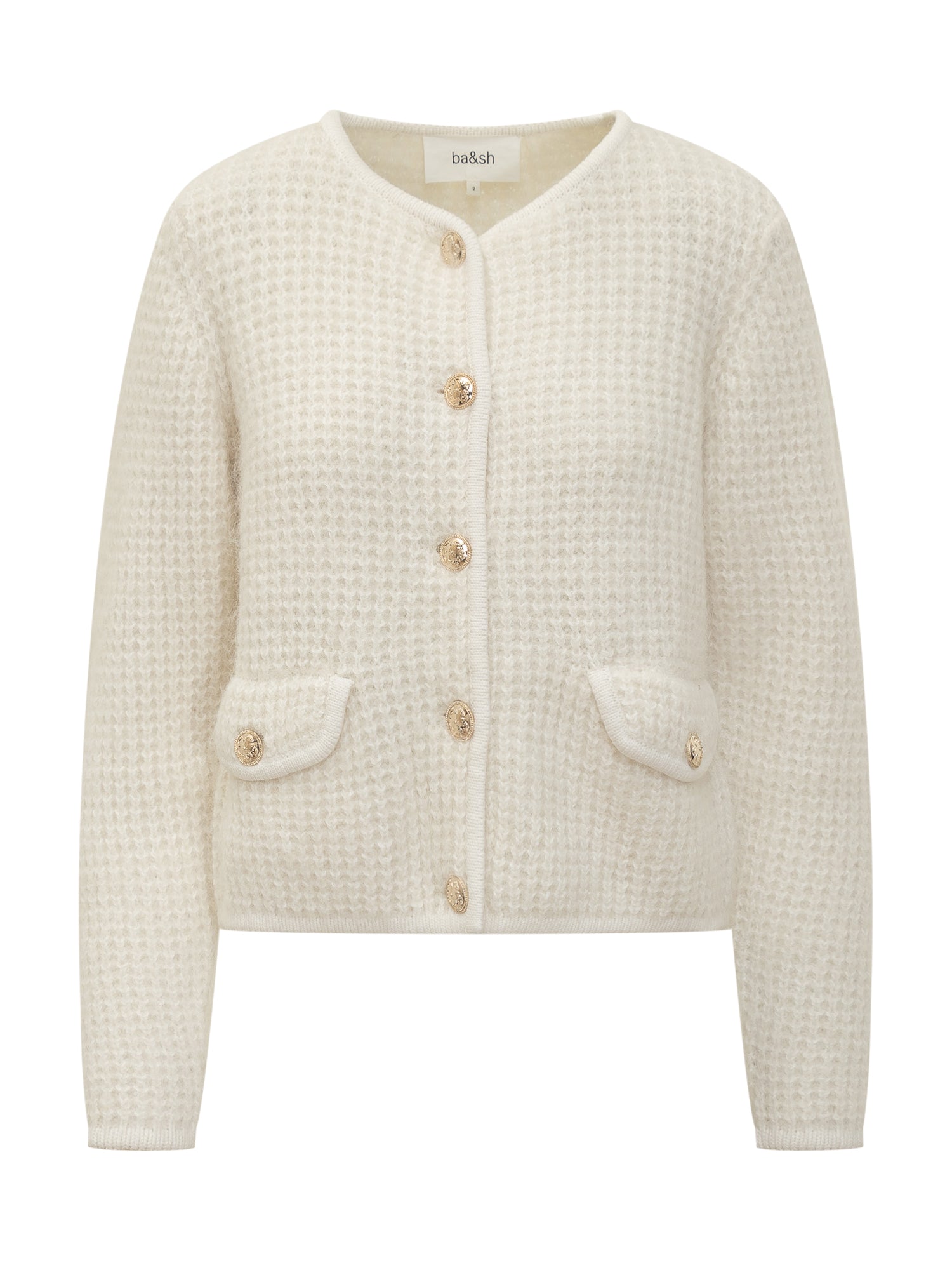 Cardigan Ba&Sh in lana bianca con bottoni dorati e tasche applicate.