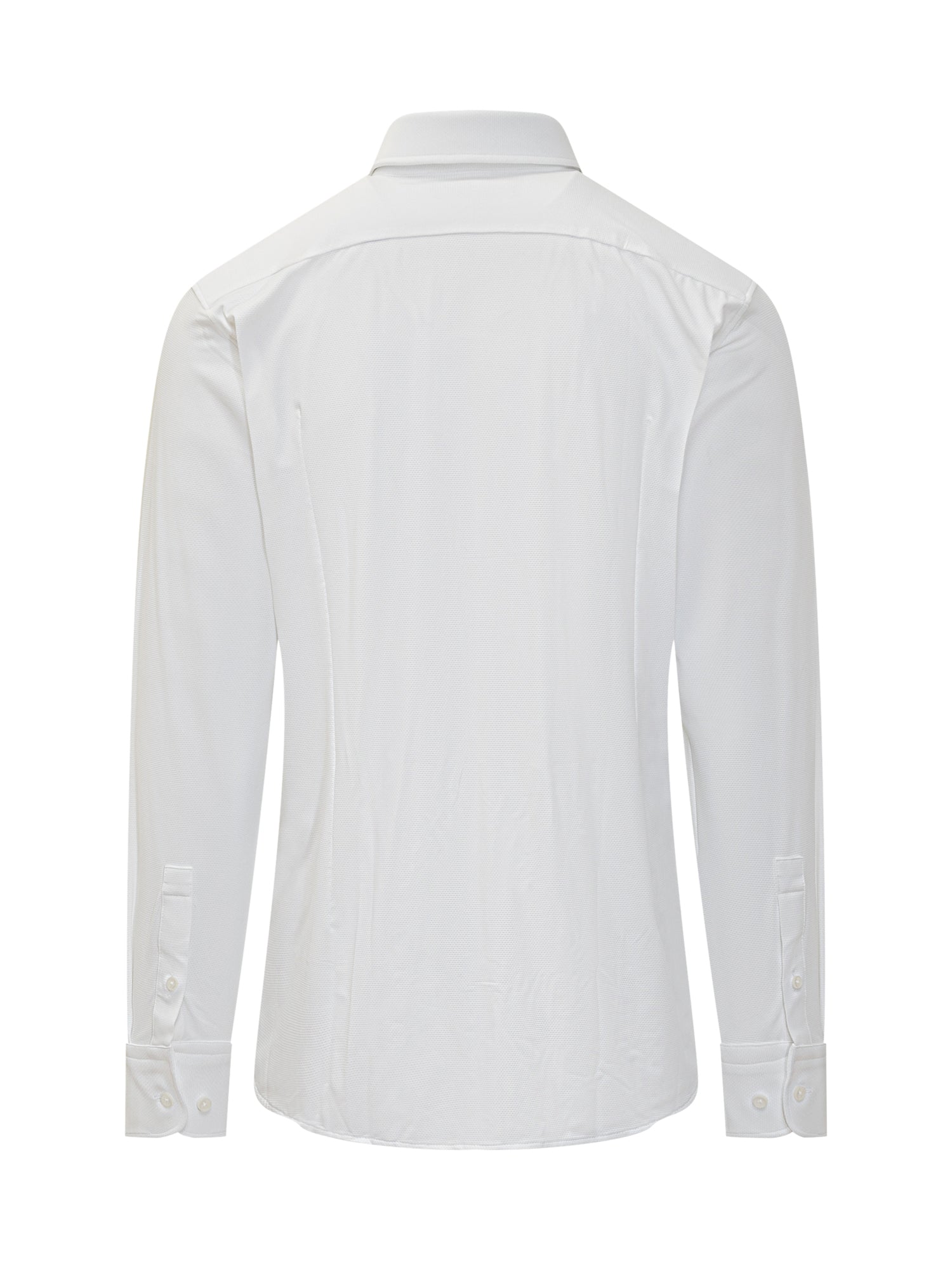 Camicia Boss in cotone bianco stretch. Linea slim fit con colletto classico, chiusura a bottoni e polsini regolabili.