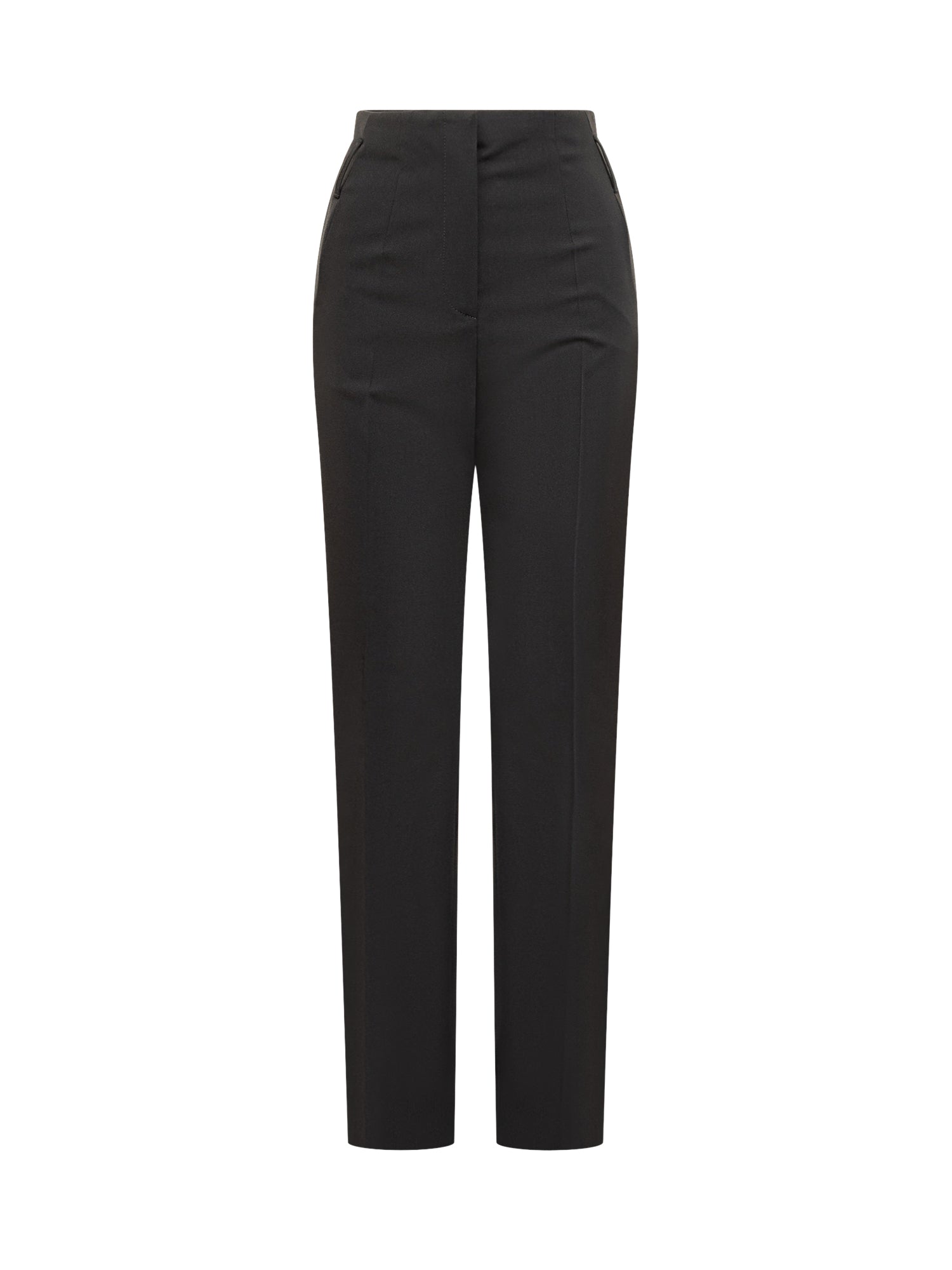 Pantaloni Boss dal taglio dritto con vita alta, chiusura con bottone e zip nascosta.