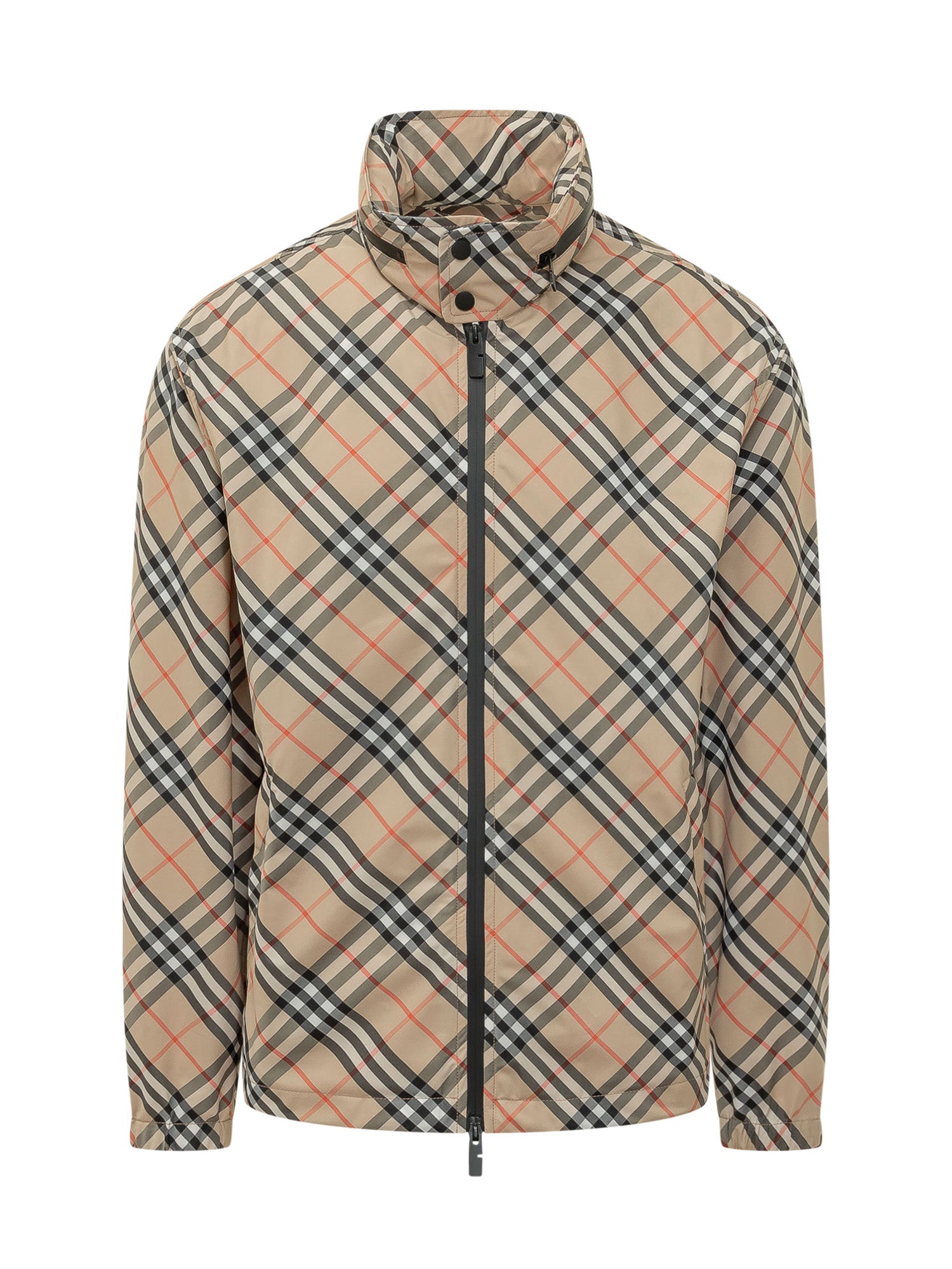 Giacca leggera con iconico motivo a quadri, collo alto e chiusura frontale con zip a doppio cursore. Vestibilità regolare e struttura funzionale.