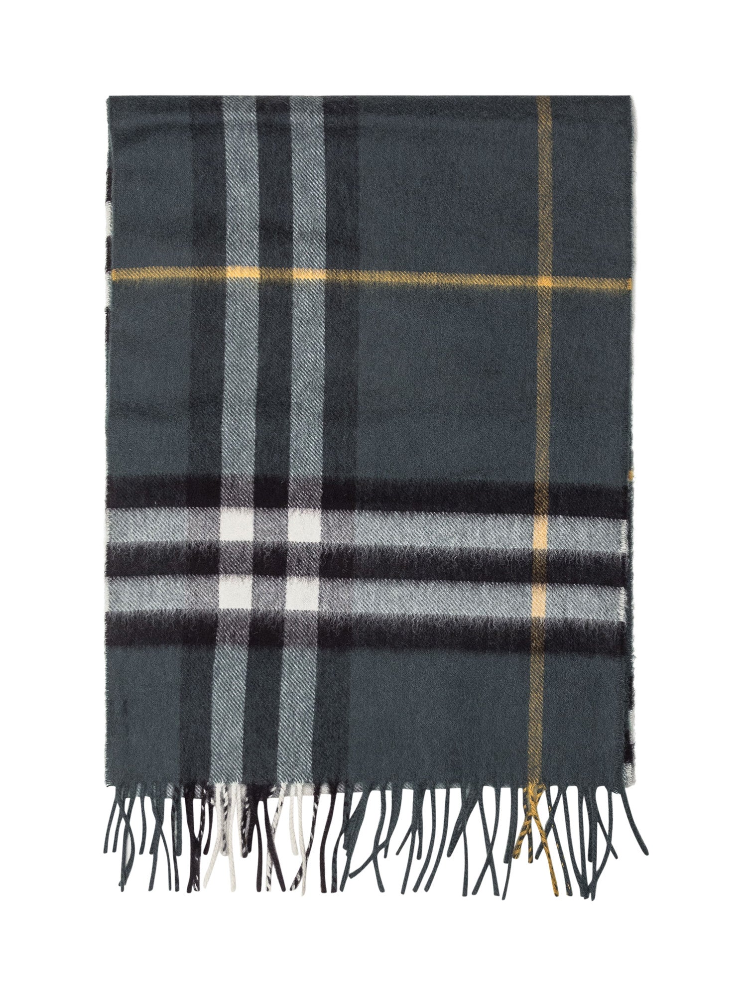 Sciarpa Burberry in morbido misto lana con motivo check nei toni del blu, giallo e bianco.
