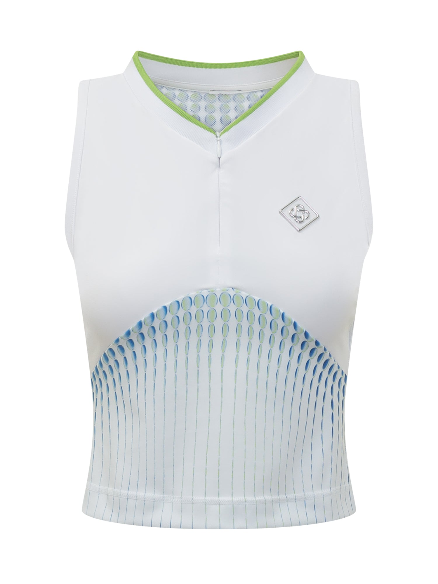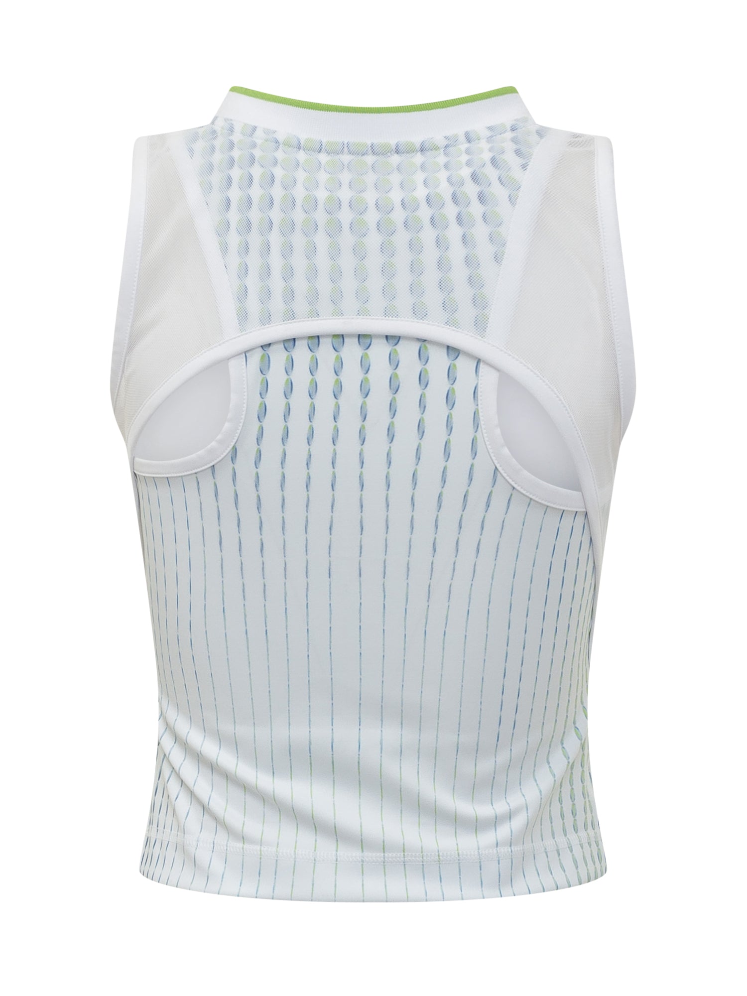 Top racer da tennis dal design sportivo e funzionale, realizzato in tessuto tecnico traspirante. La struttura ergonomica garantisce libertà di movimento.