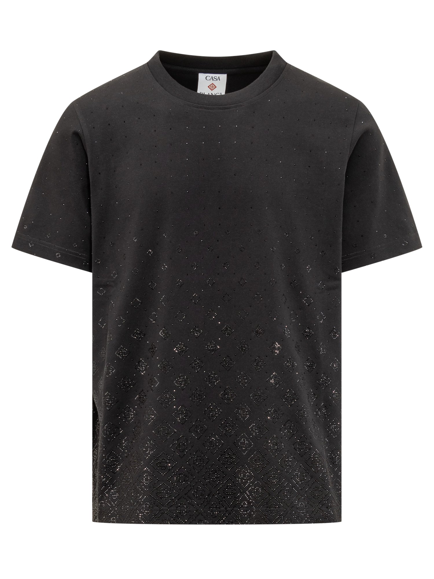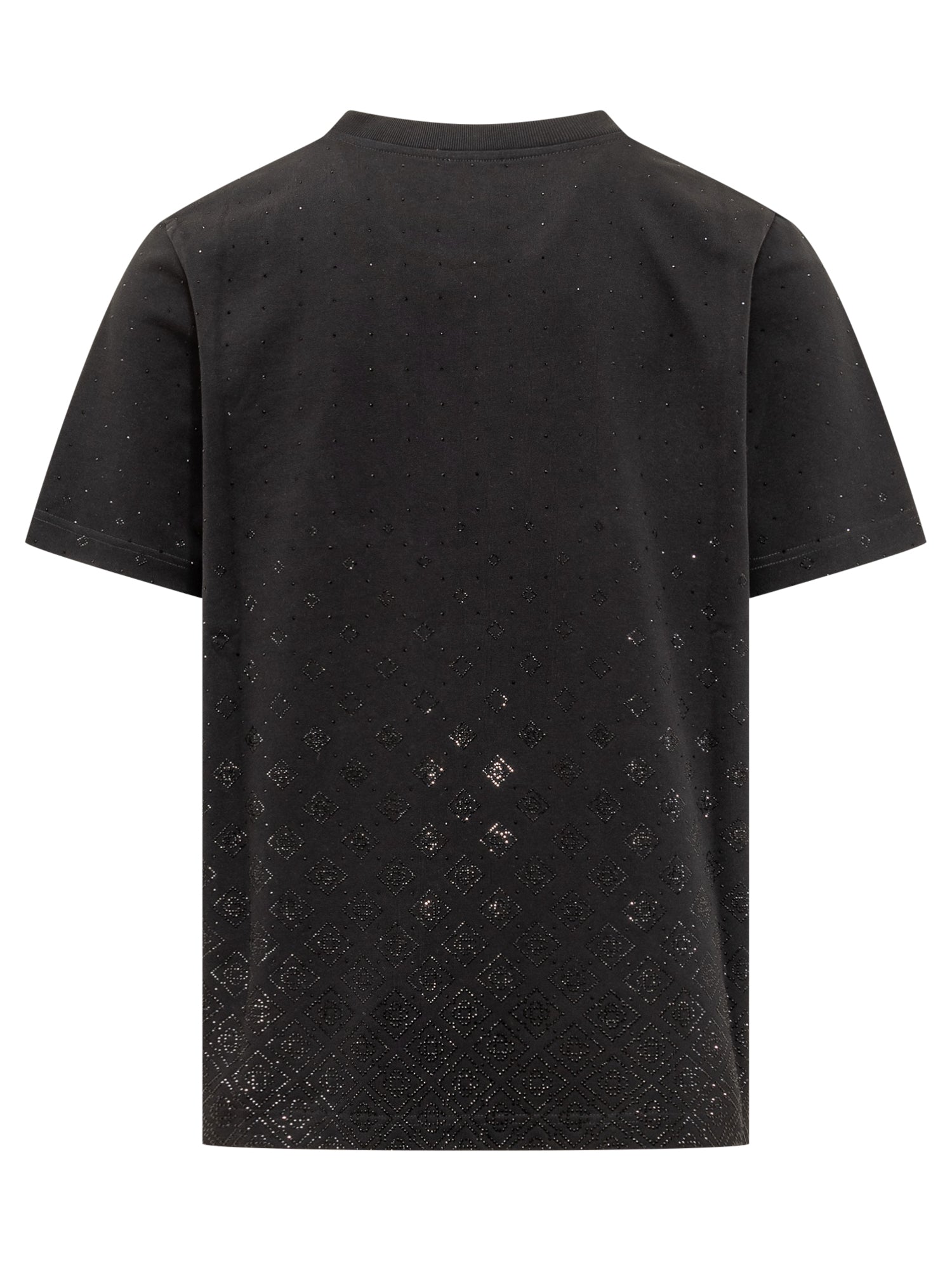 T-shirt in cotone con motivo monogramma arricchito da micro-cristalli che creano un effetto brillante e sofisticato. Linea regular e finitura lucida ideale per look casual di carattere.