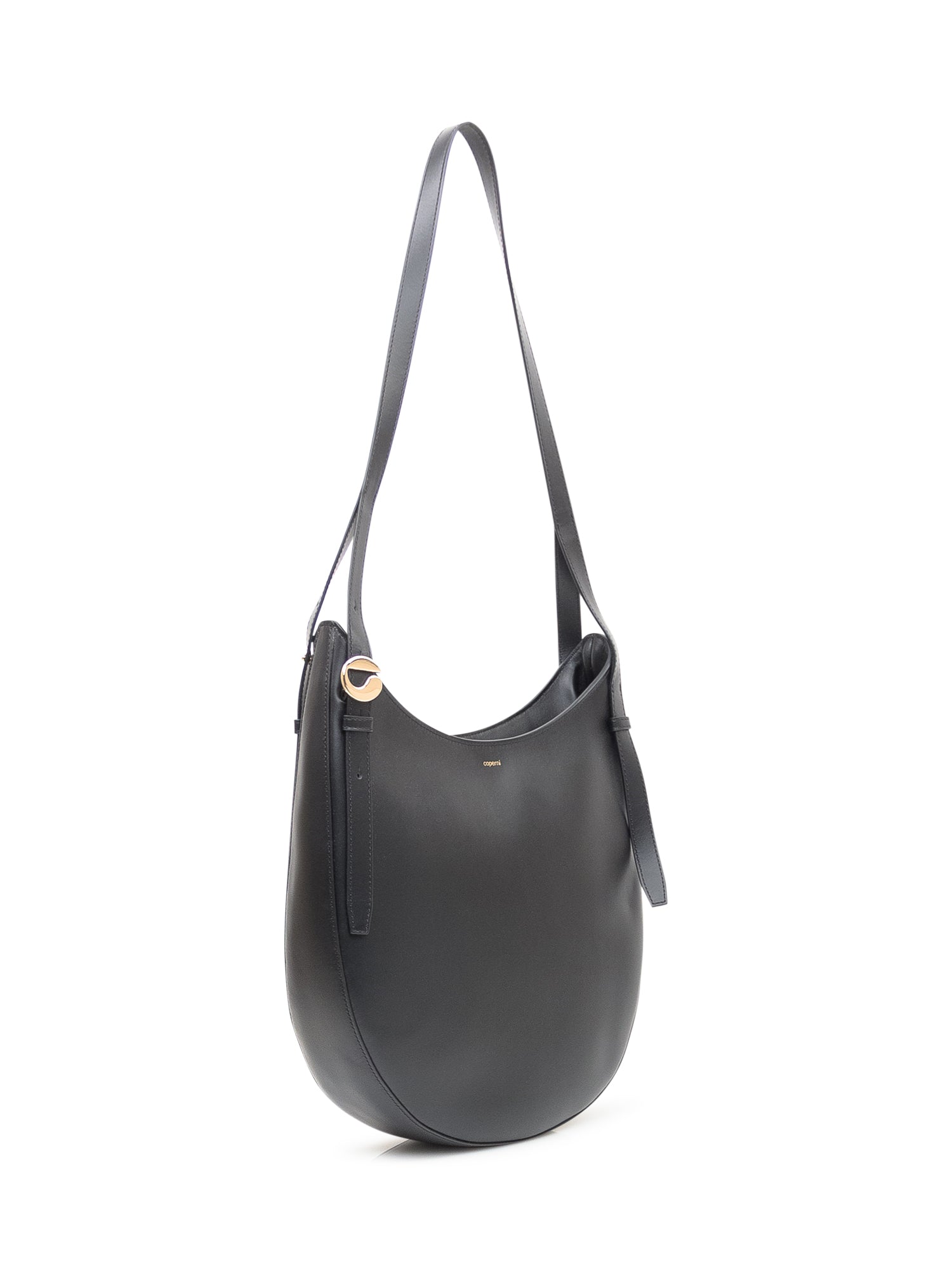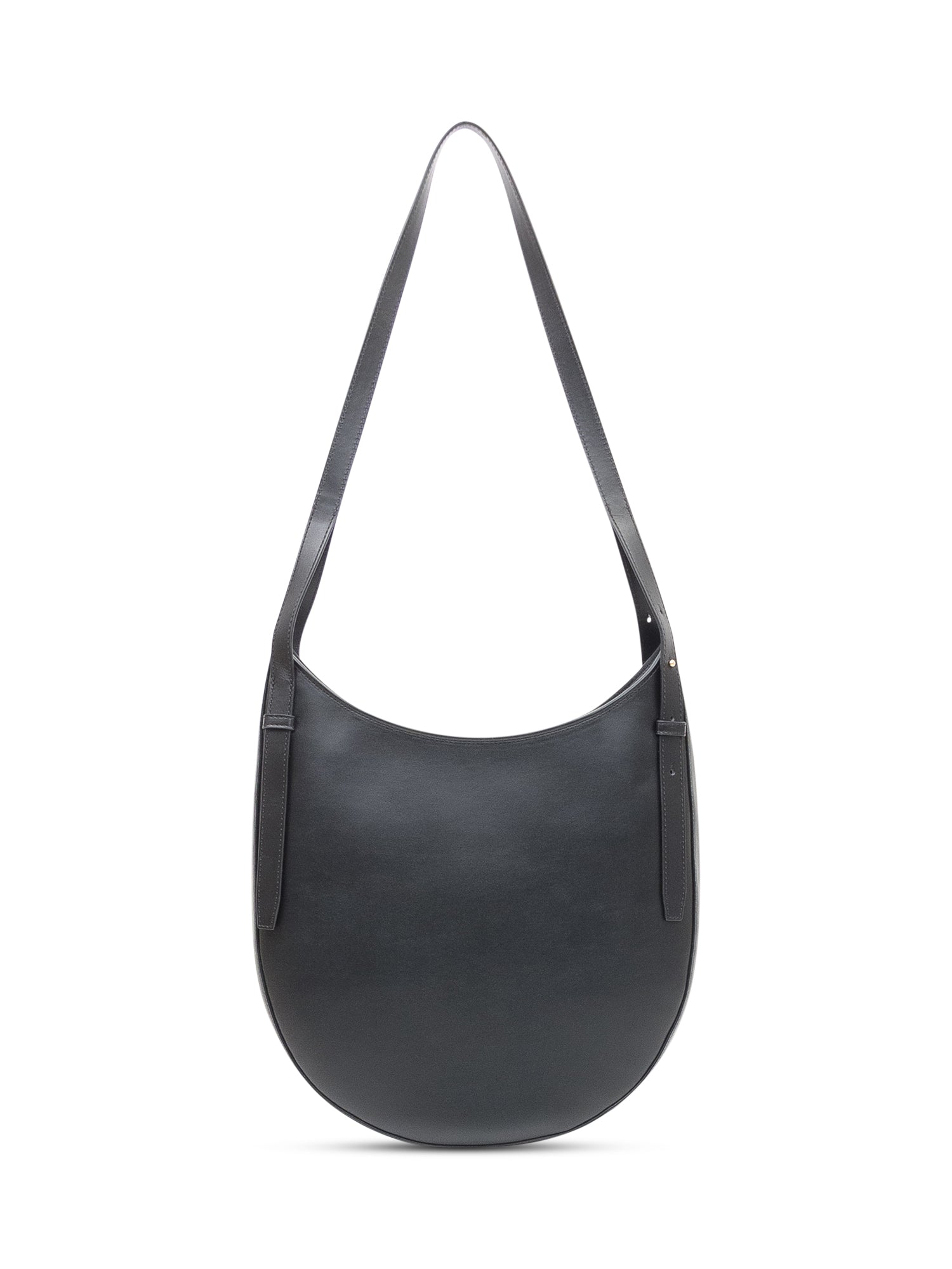 Borsa hobo dalla linea essenziale realizzata in pelle liscia, con tracolla regolabile e dettaglio a cintura con hardware metallico.Dimensioni: 34x37x9