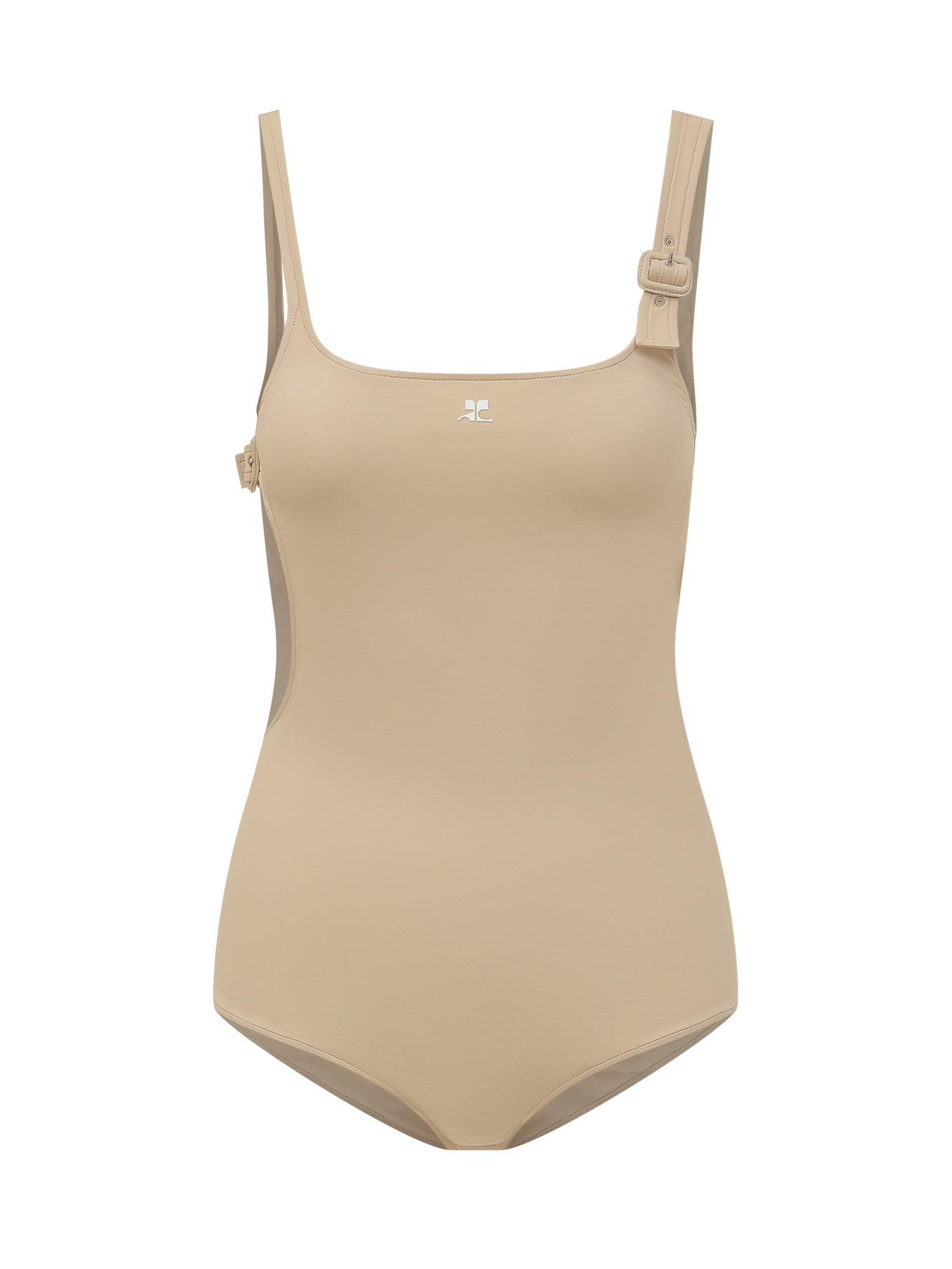 Costume intero dal design essenziale con scollo arrotondato e spalline sottili. Vestibilità aderente che valorizza la silhouette. Dettaglio cut-out decorativo e finiture pulite per un look moderno e minimale.