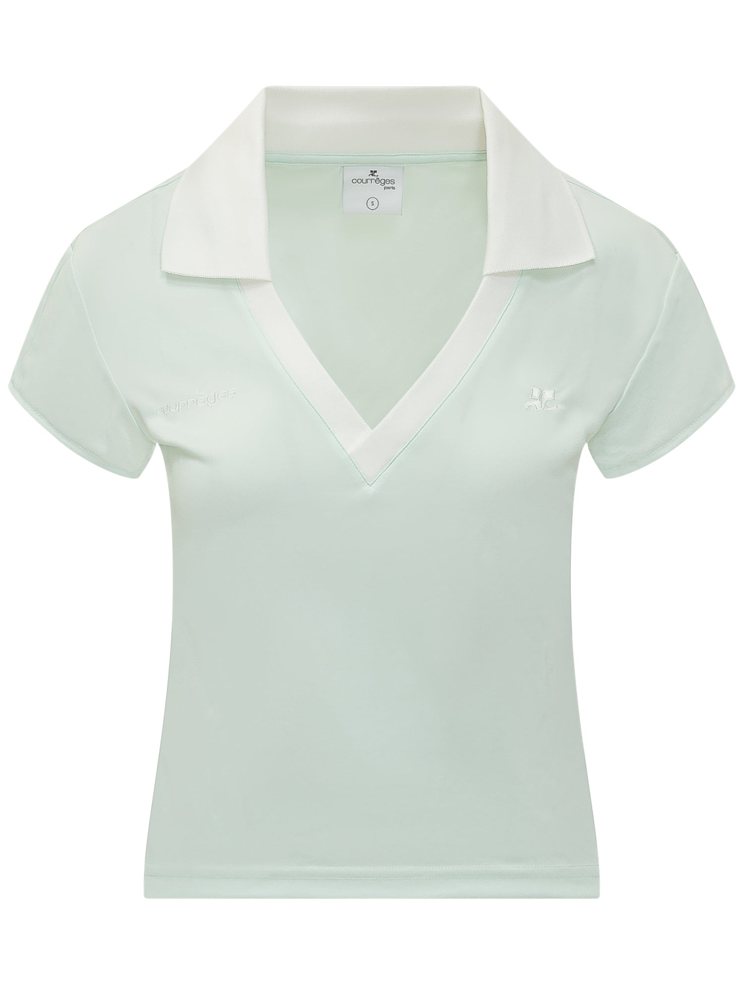 Polo sportiva cropped con scollo a V e colletto a contrasto. Vestibilità aderente che valorizza la silhouette. Maniche corte e struttura essenziale.