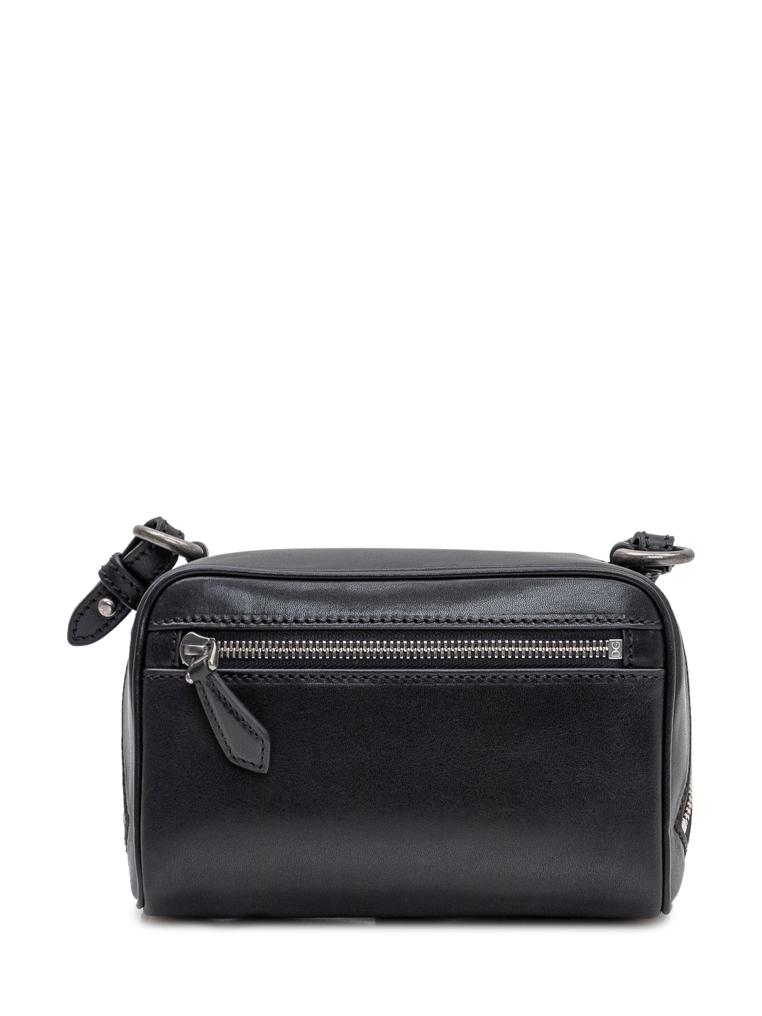 Borsa a mano compatta in pelle con silhouette strutturata e finiture metalliche. Dotata di zip doppia, tracolla regolabile e charm decorativo.Dimensioni: 19x12x8