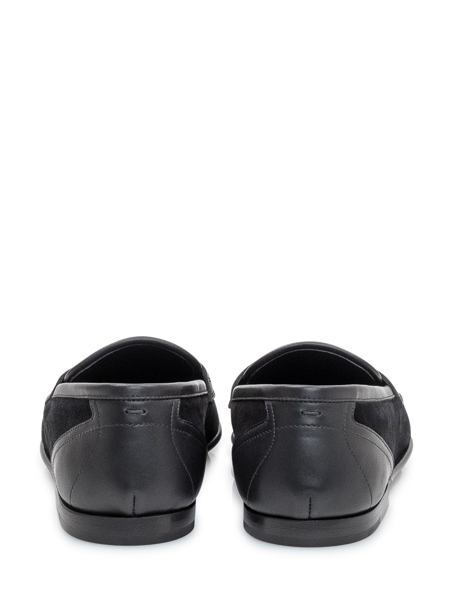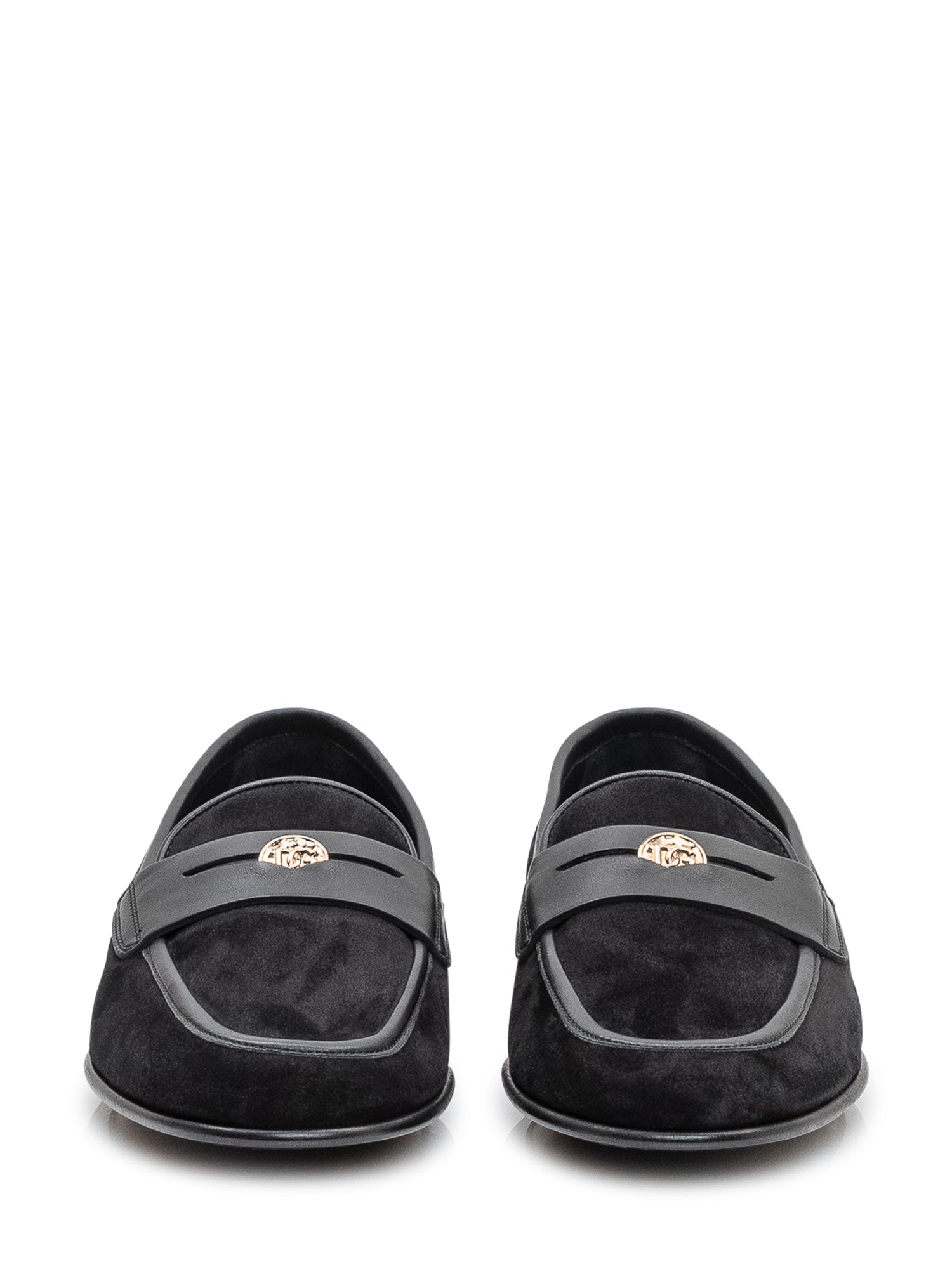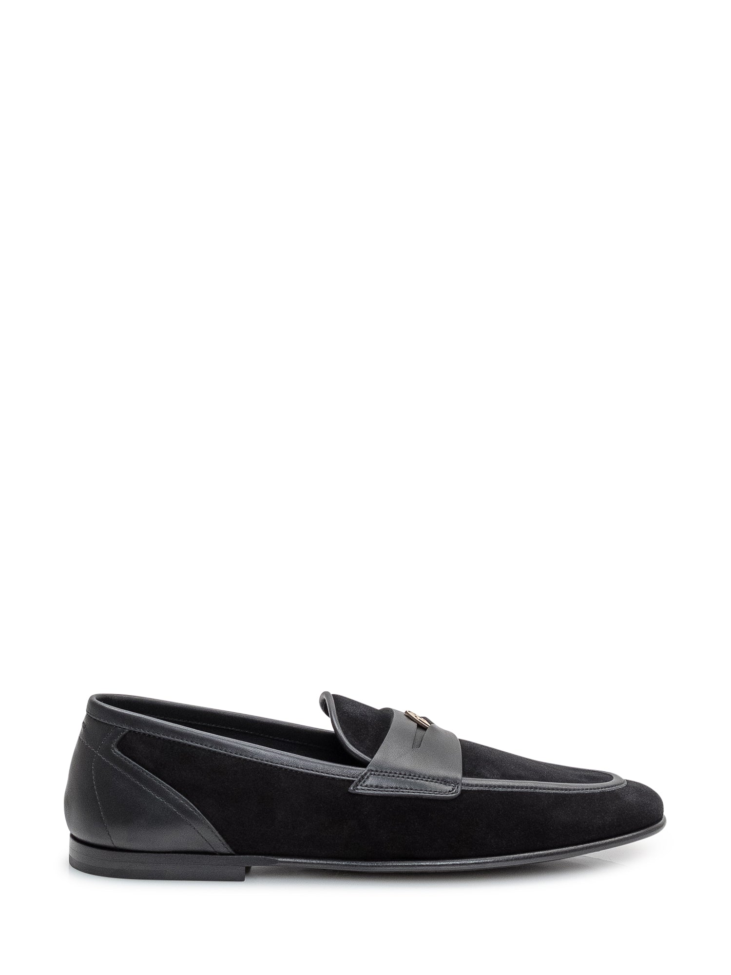 Mocassino raffinato in pelle scamosciata con dettagli in pelle liscia e morsetto frontale.