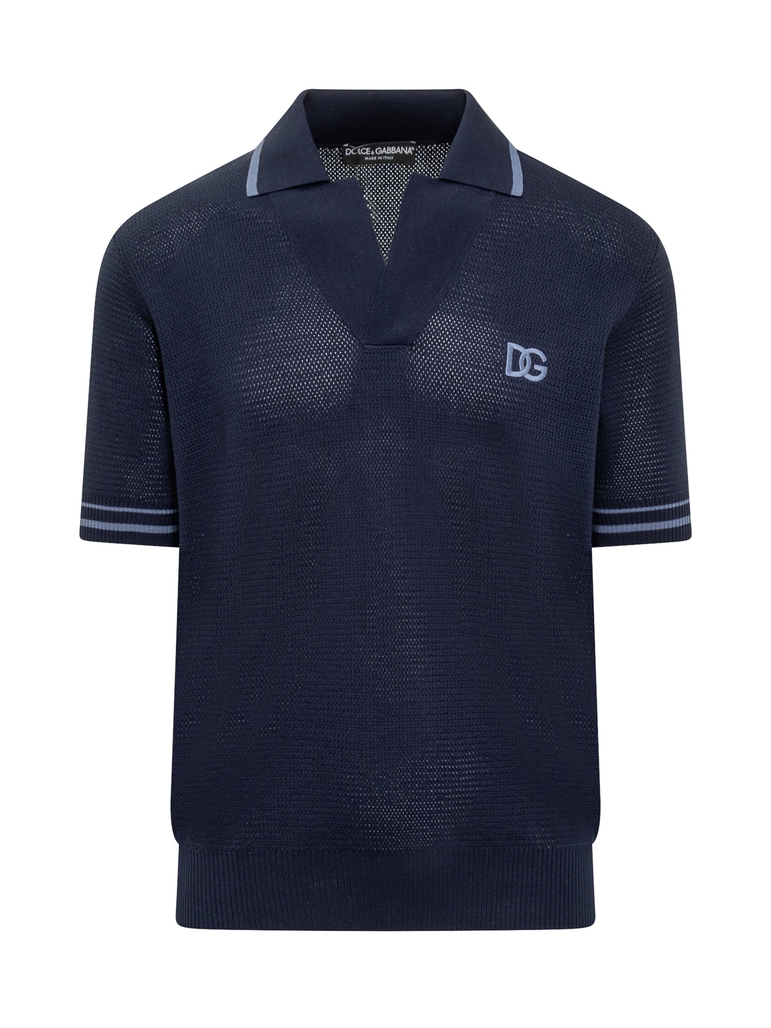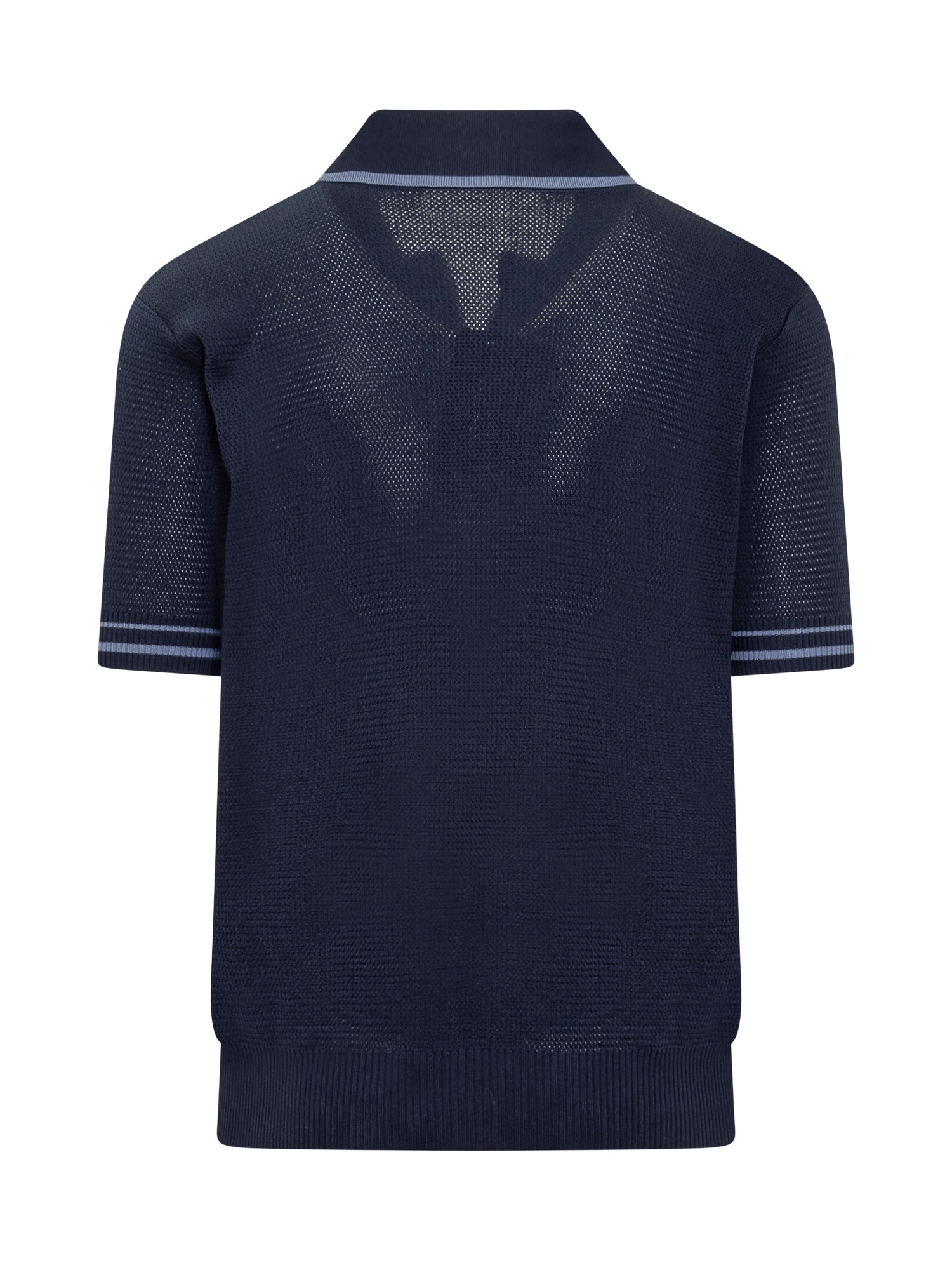 Polo a maniche corte. Colletto classico. Chiusura con bottoni. Lavorazione a maglia traforata. Logo applicato sul davanti.