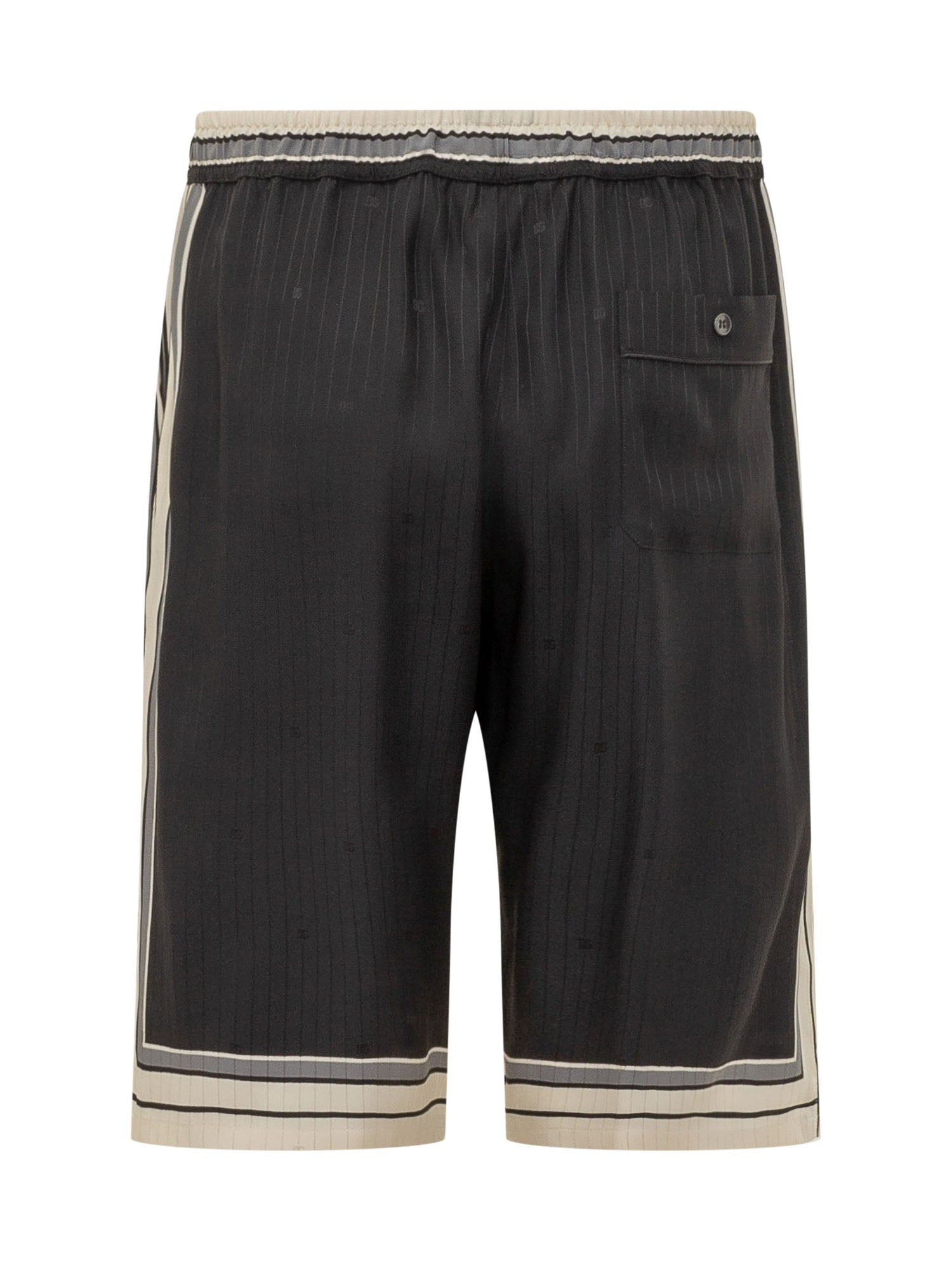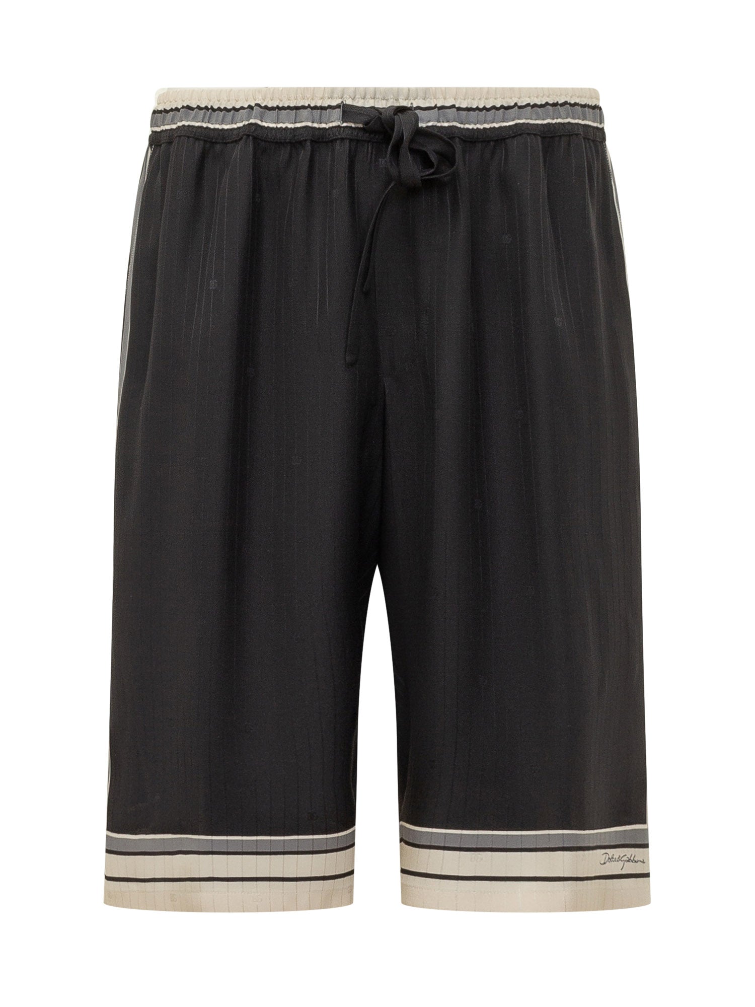 Shorts dal taglio rilassato con vita elasticizzata e coulisse regolabile. Tessuto leggero con motivo a righe sottili e finiture a contrasto sul fondo.
