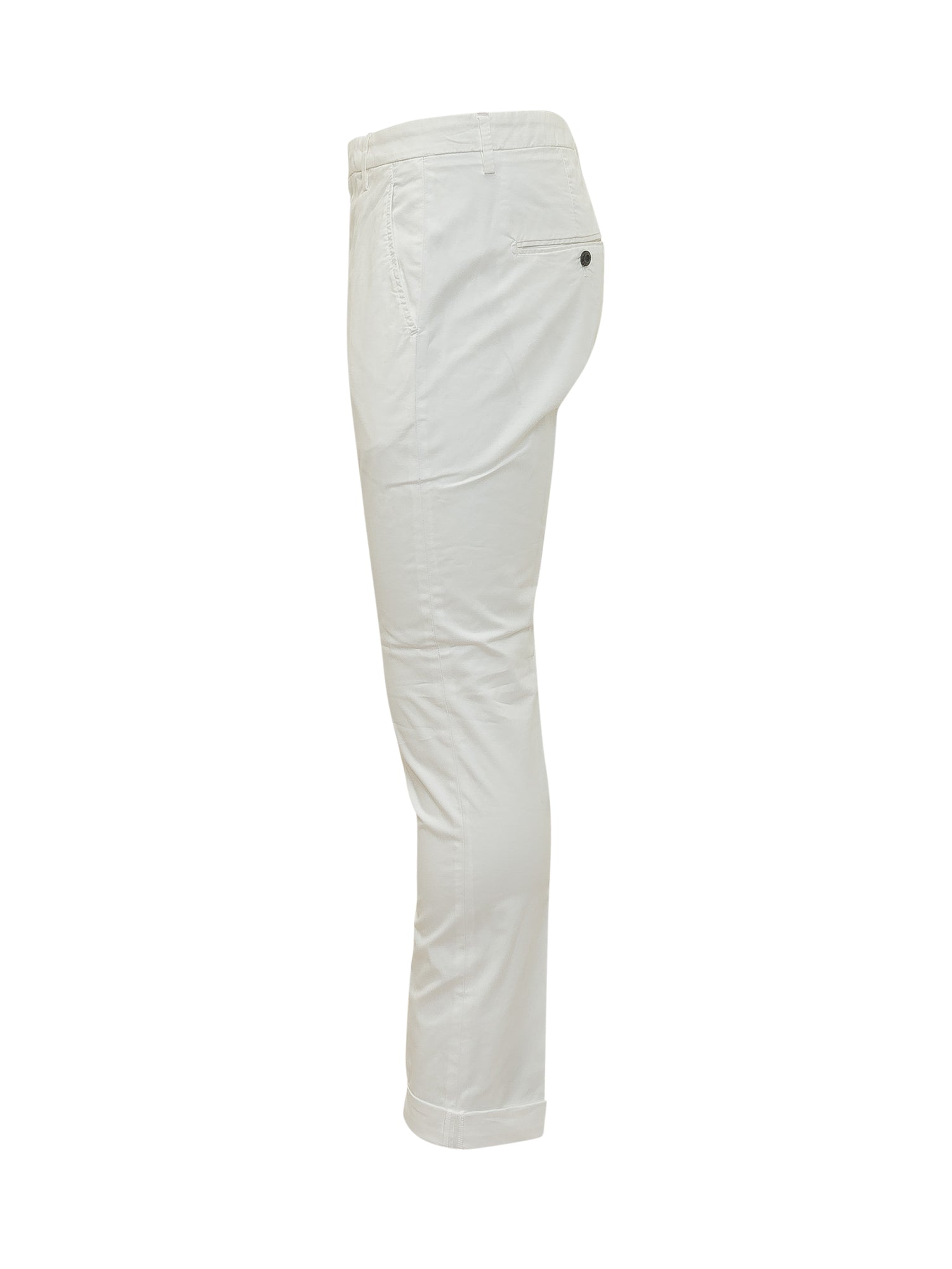 Pantalone Gaubert dalla linea slim con piega stirata e fondo risvoltato. Realizzato in tessuto leggero con vita regolare, passanti e tasche laterali.