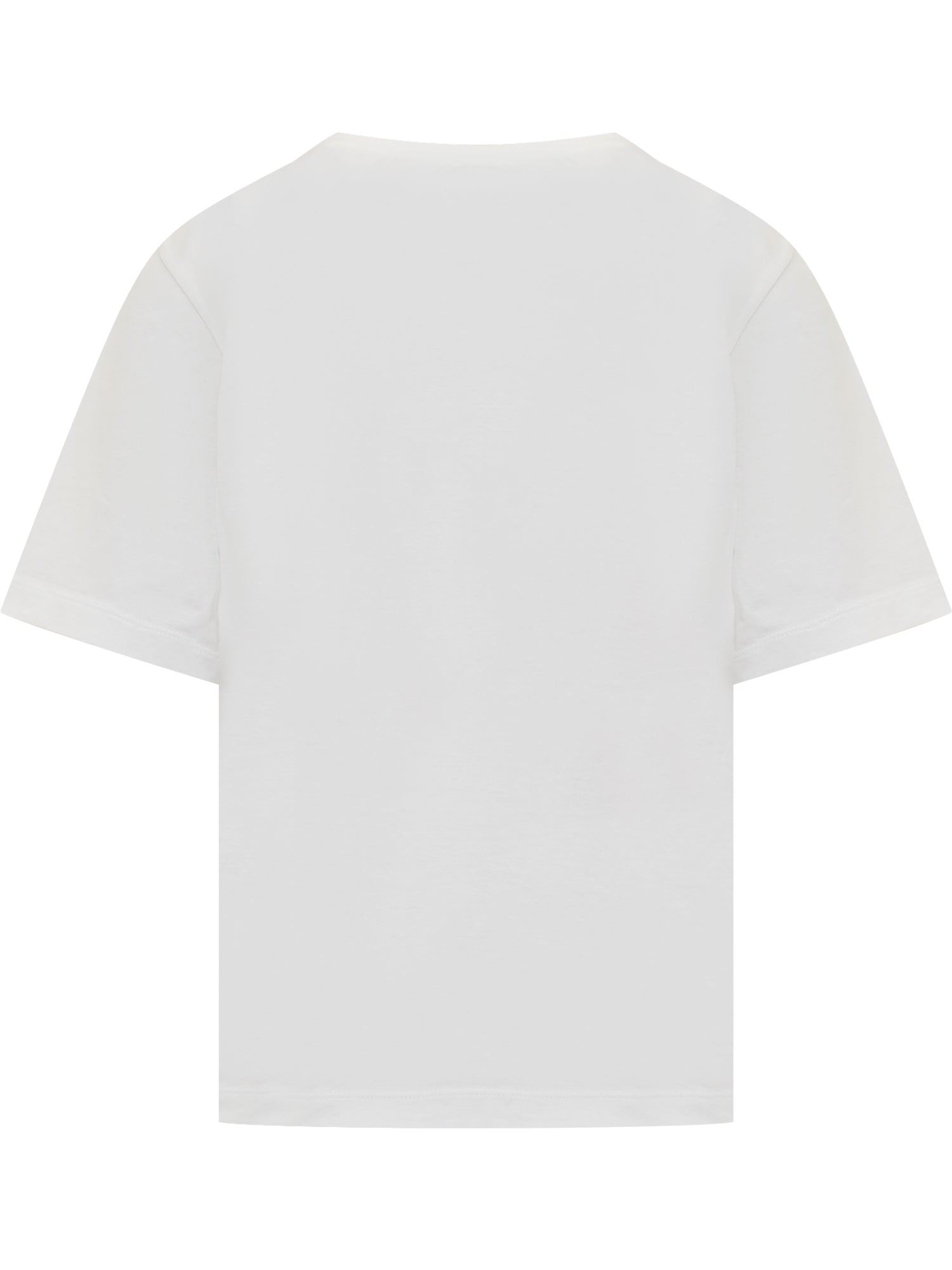 T-shirt bianca. Girocollo. Maniche corte. Scritta sul fronte.