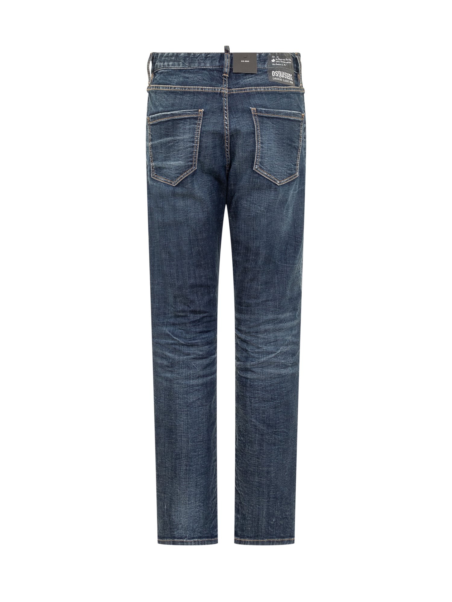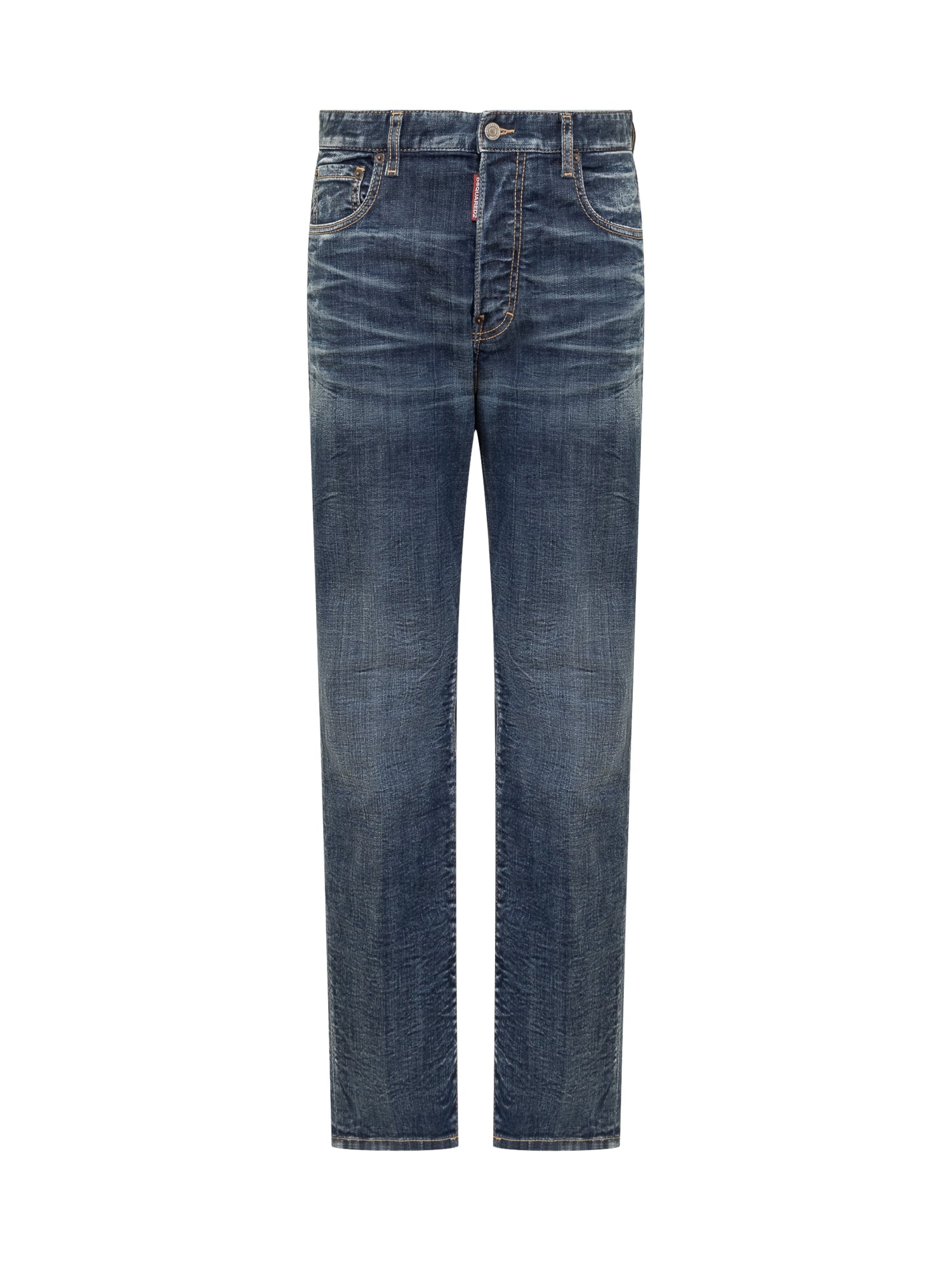 Jeans blu. Cinque tasche. Chiusura con bottoni. Effetto usato. Passanti per cintura.