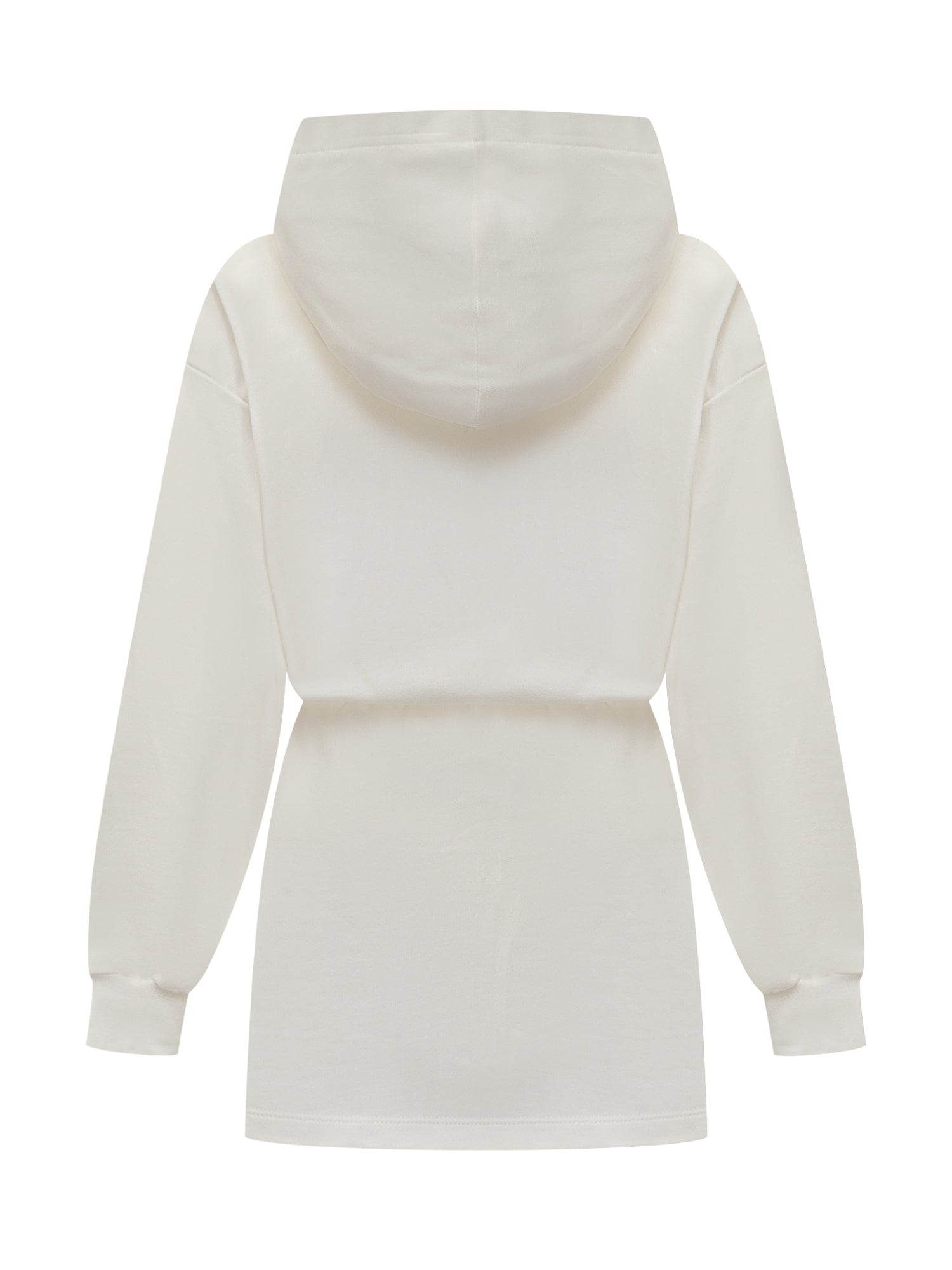 Abito midi con cappuccio. Orli a costine. Vita elasticizzata. Gonna midi. Logo sul davanti.
