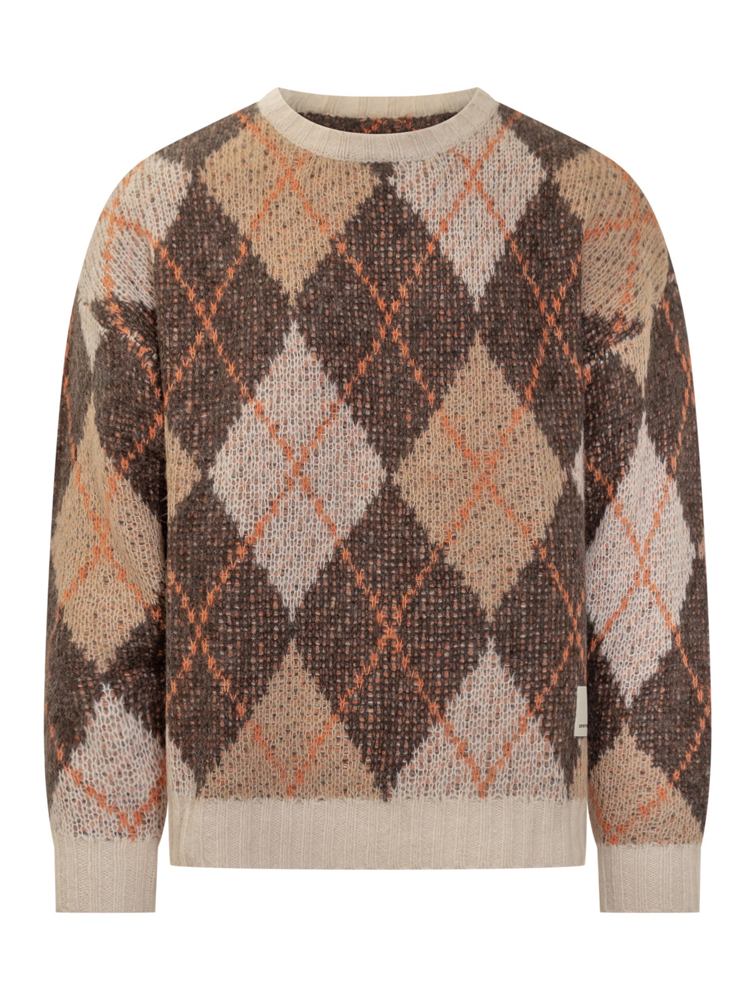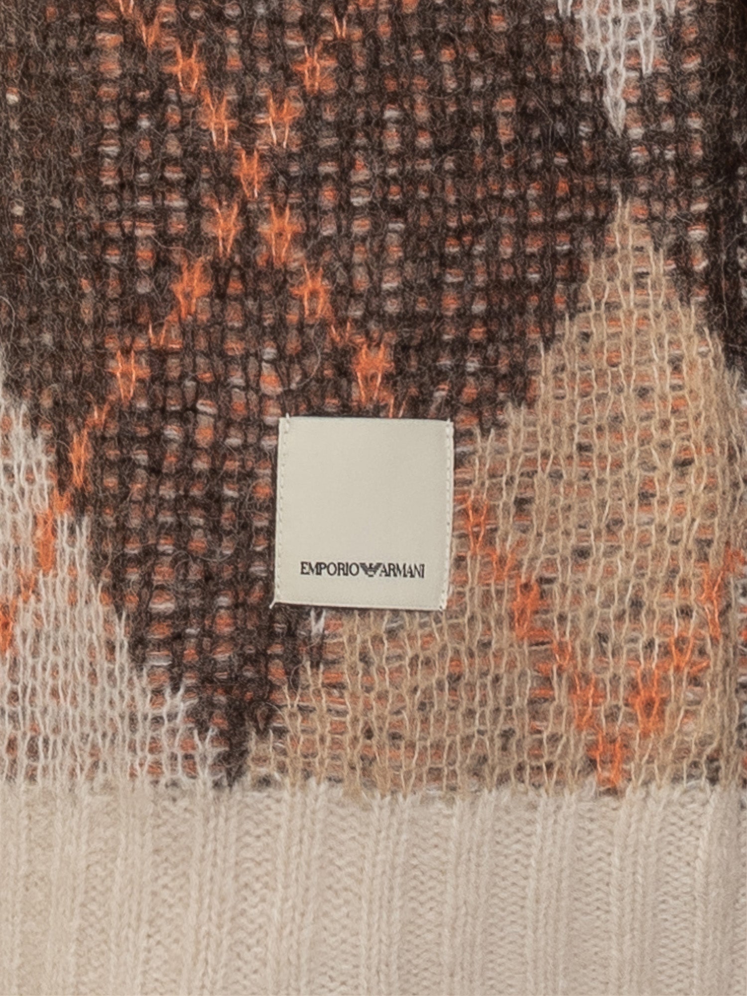 Maglione Emporio Armani con motivo argyle nei toni caldi del beige e marrone.