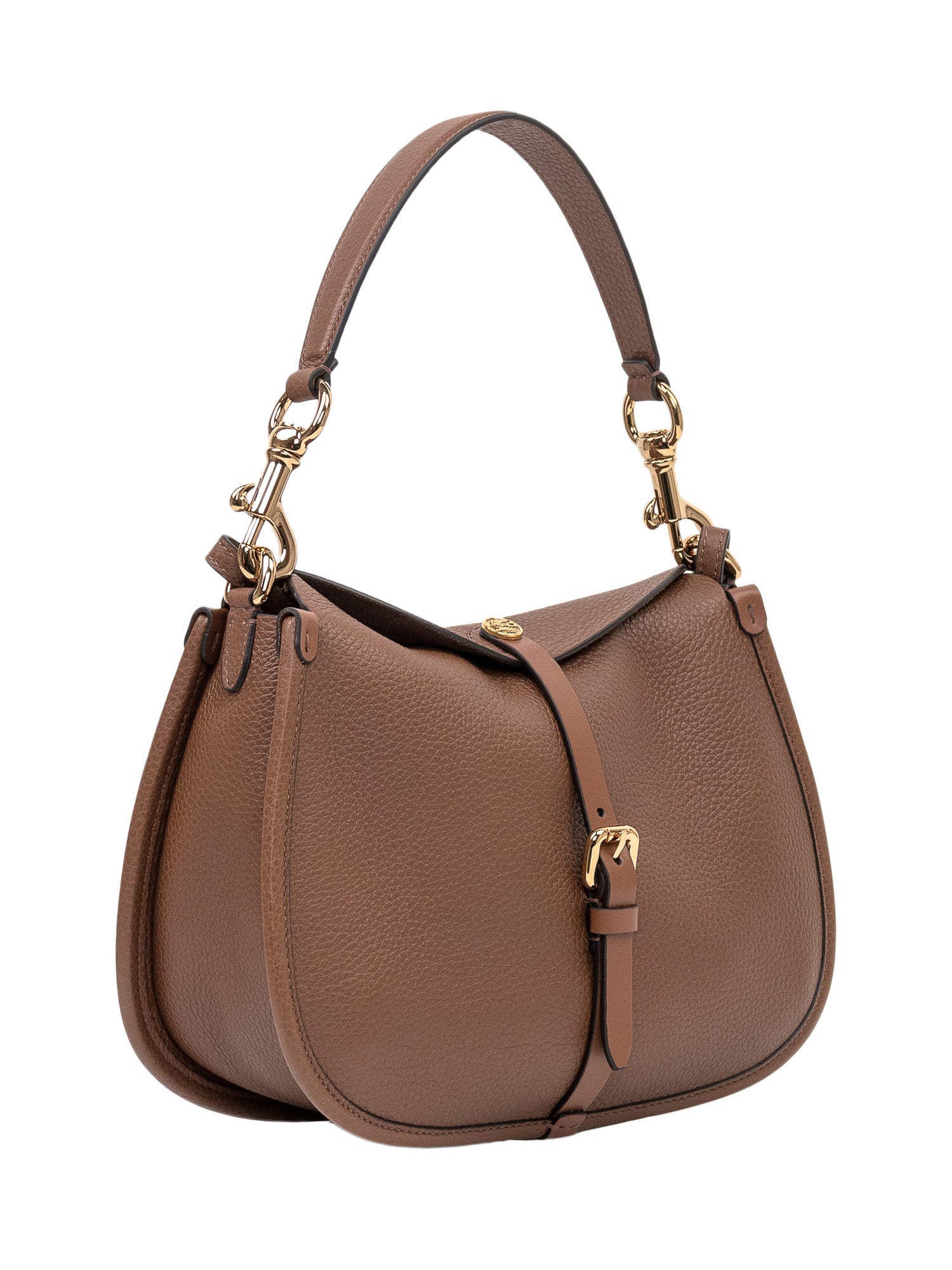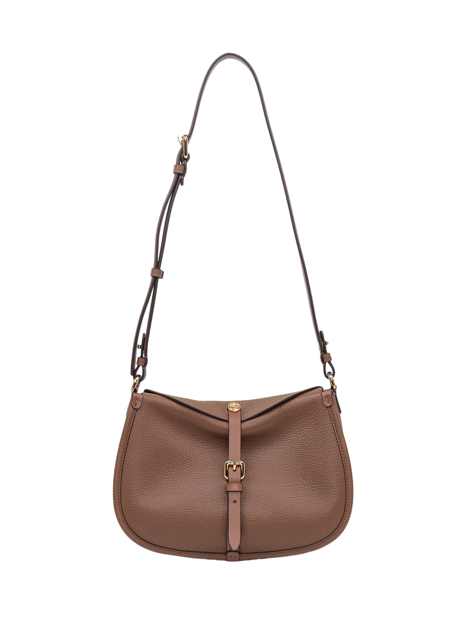 Borsa crossbody medium in pelle martellata con silhouette strutturata, patta con cinturino e fibbia, manico rimovibile e tracolla regolabile. Interno spazioso con tasche organizzate.