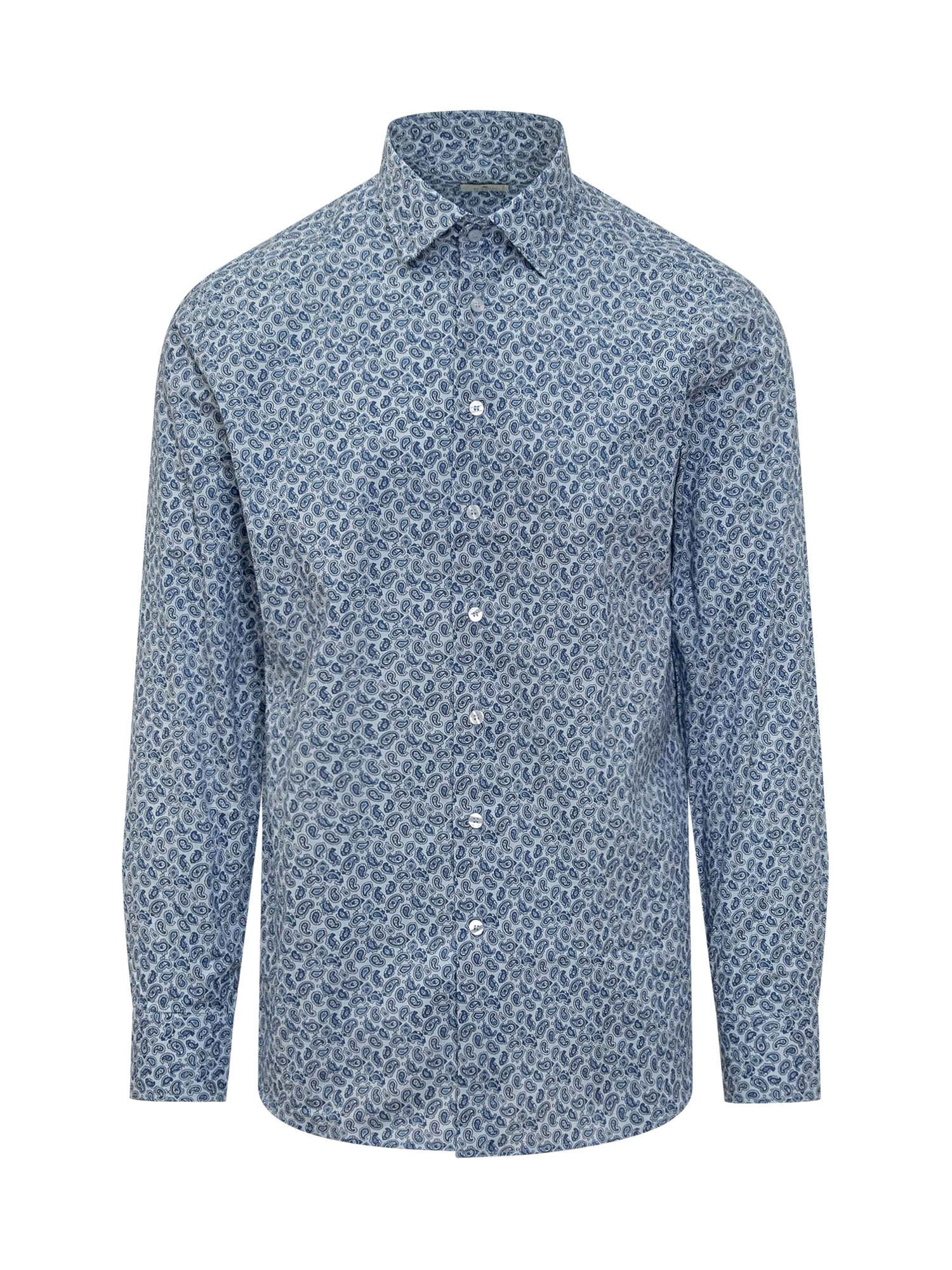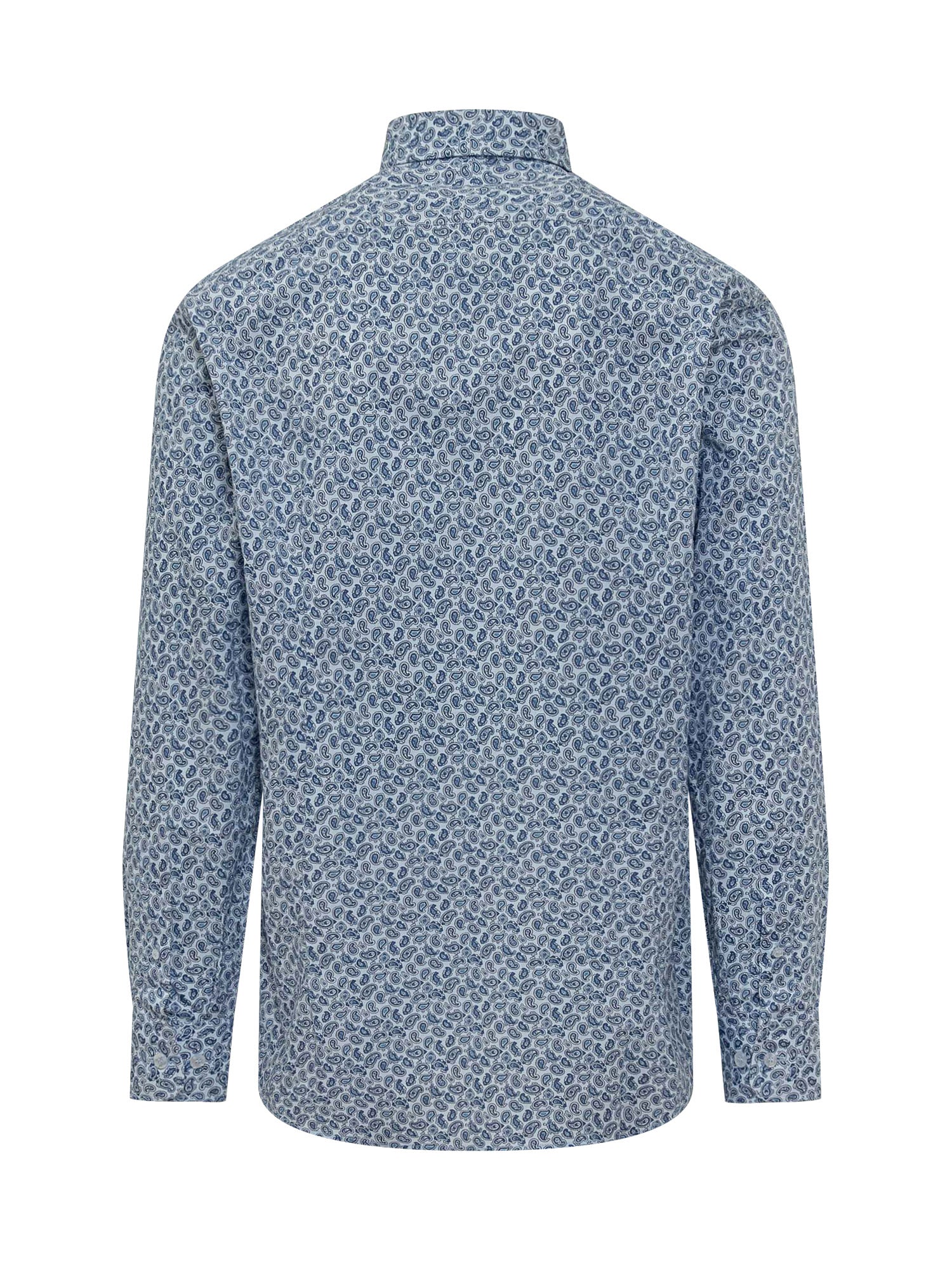 Camicia a maniche lunghe con micro pattern paisley, caratterizzata da linea essenziale e tessuto leggero.