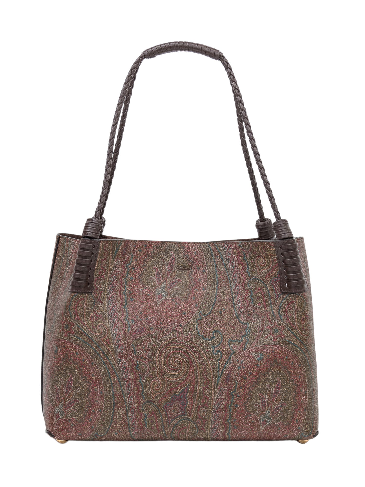 Borsa shopping dal design strutturato con motivo paisley e manici intrecciati. Capiente e raffinata, offre uno stile distintivo e versatile per l uso quotidiano. Interni funzionali e logo frontale applicato per un tocco iconico.