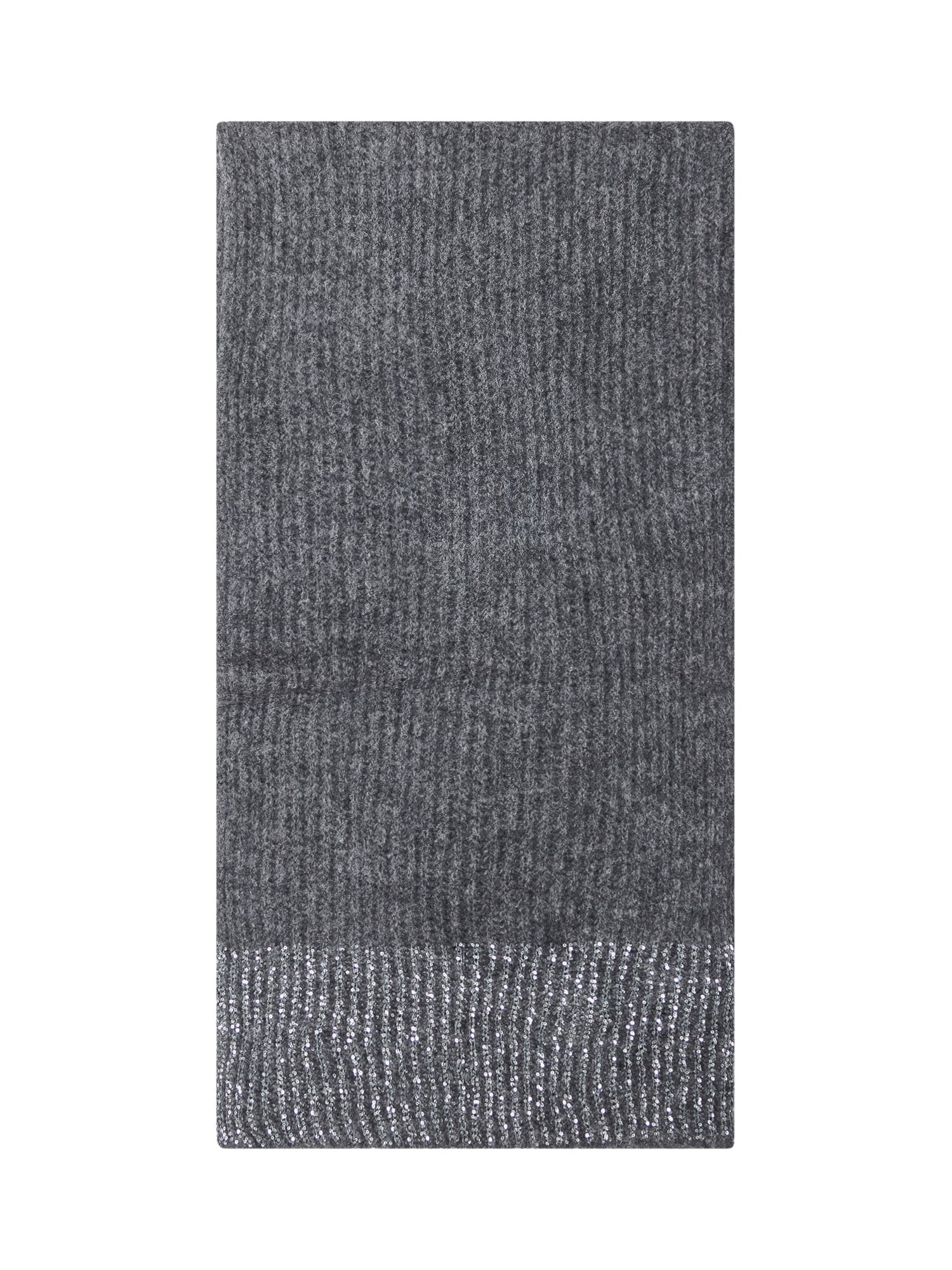 Sciarpa Exterior in morbida lana grigia, arricchita da bordo in lurex argento per un tocco luminoso e sofisticato.