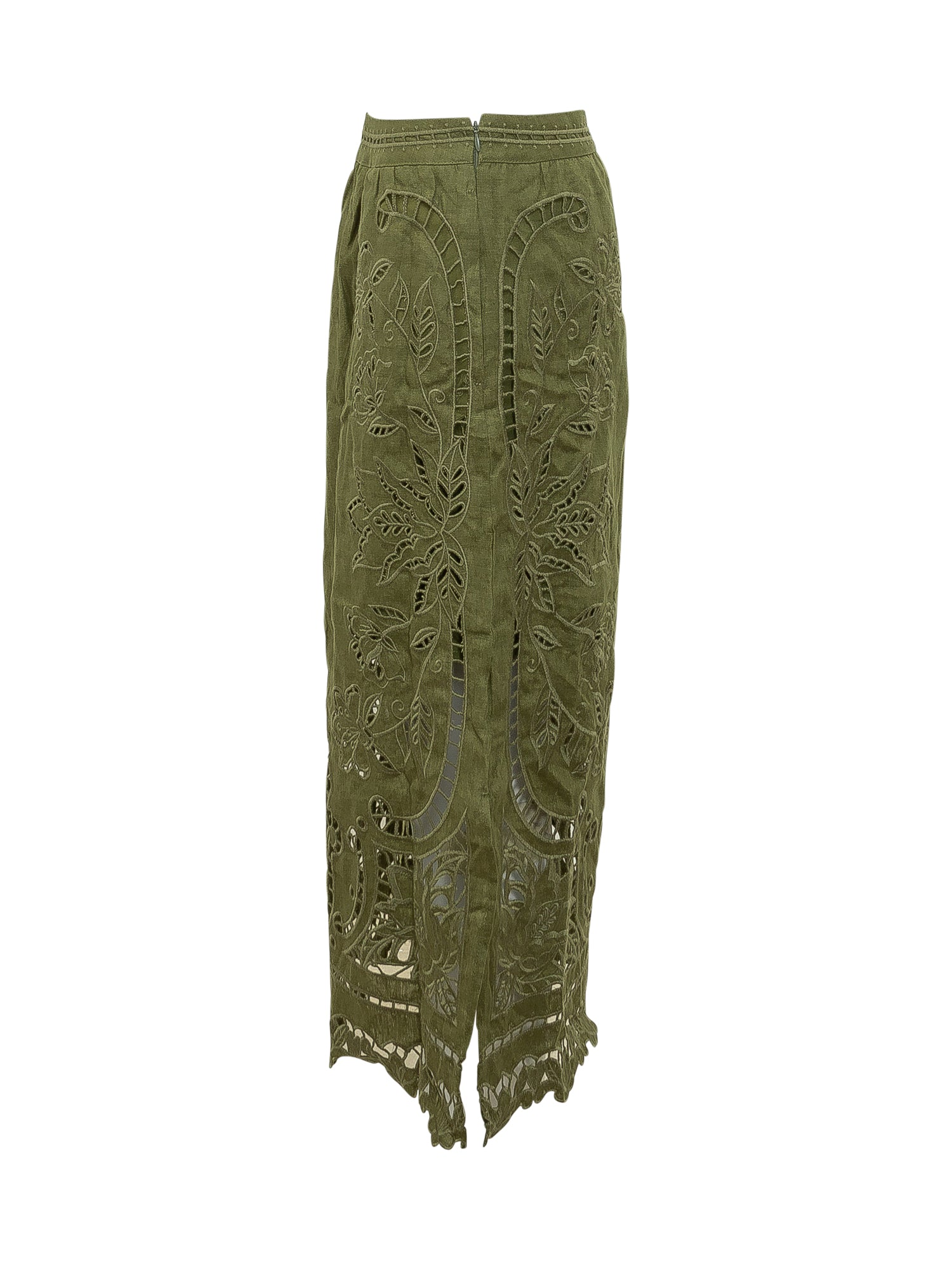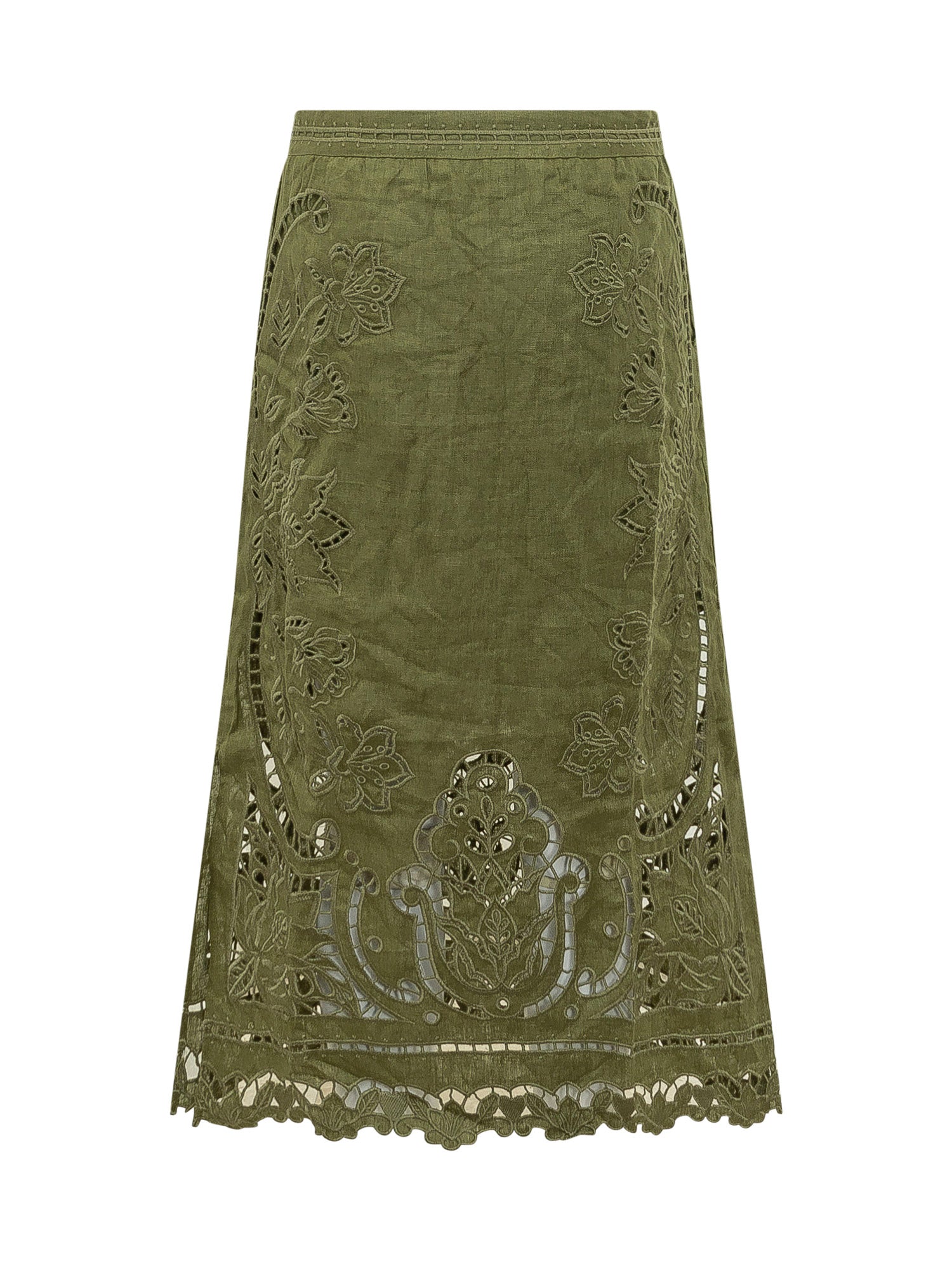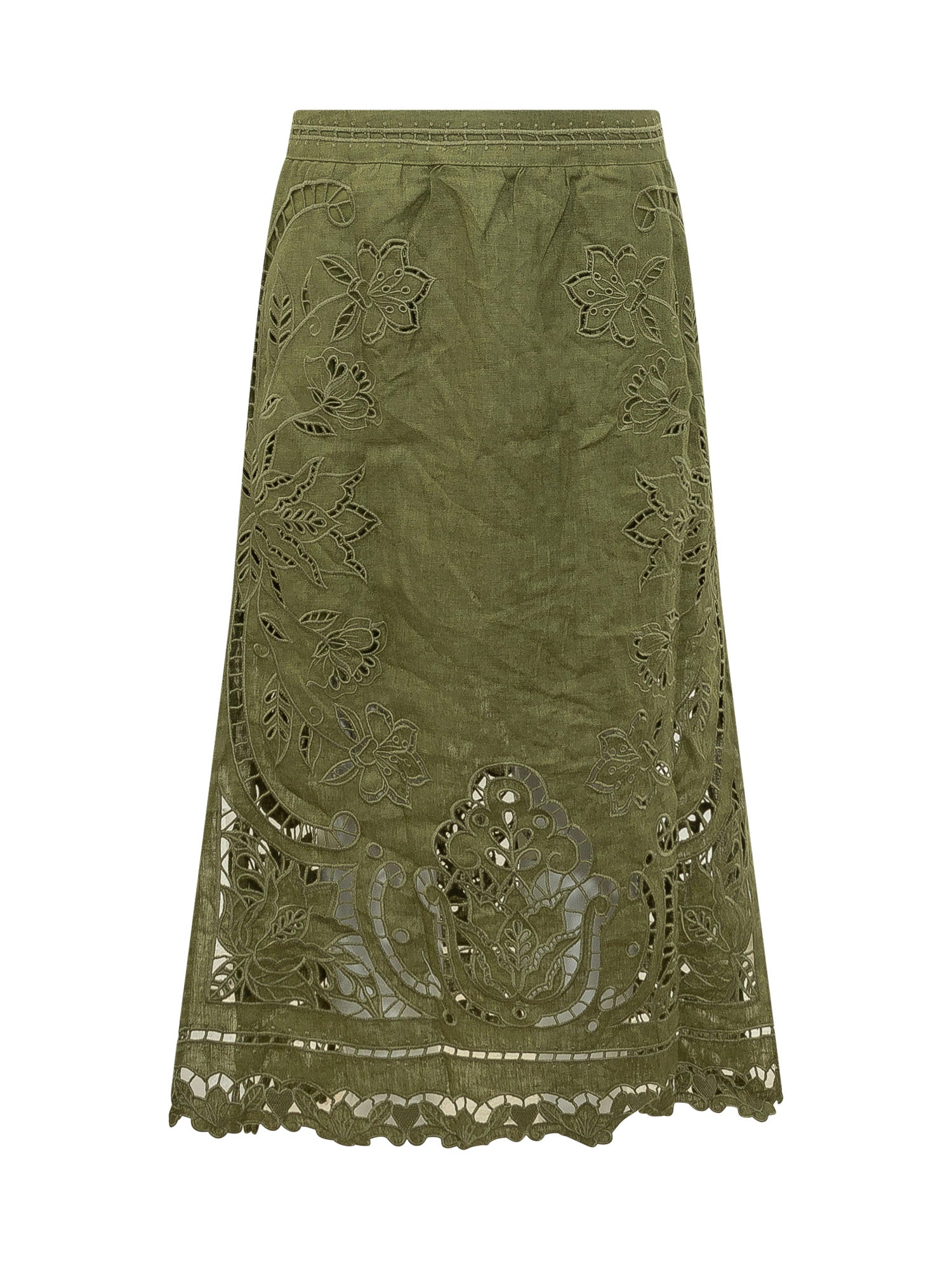 Gonna midi in tessuto leggero con lavorazione ricamo Richelieu e dettagli traforati. Linea elegante e femminile.