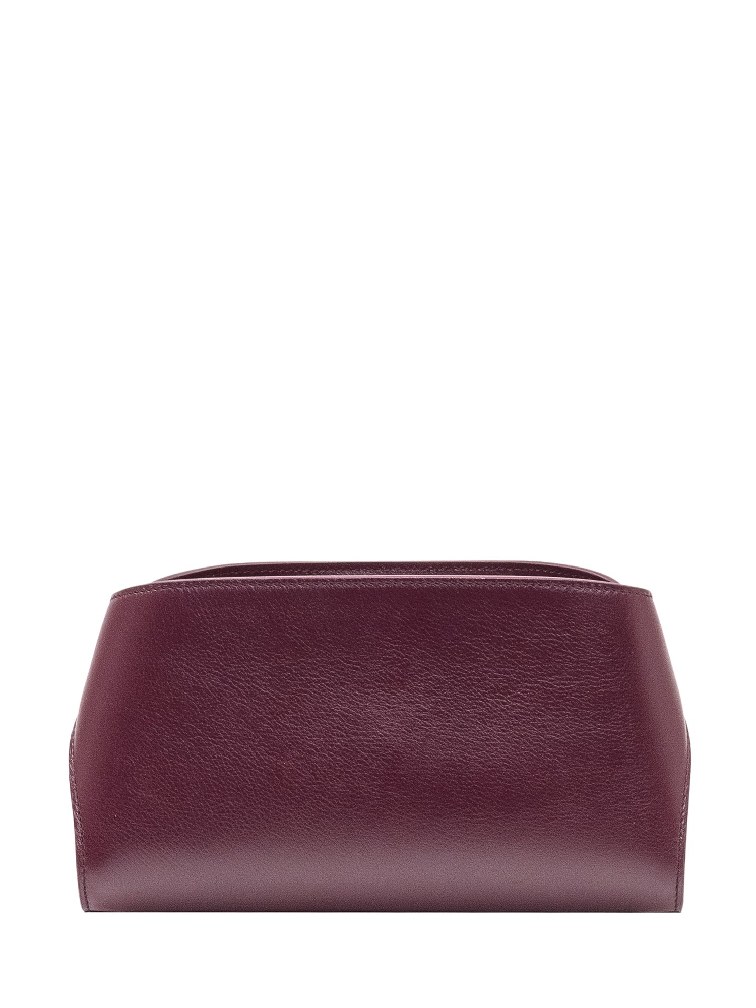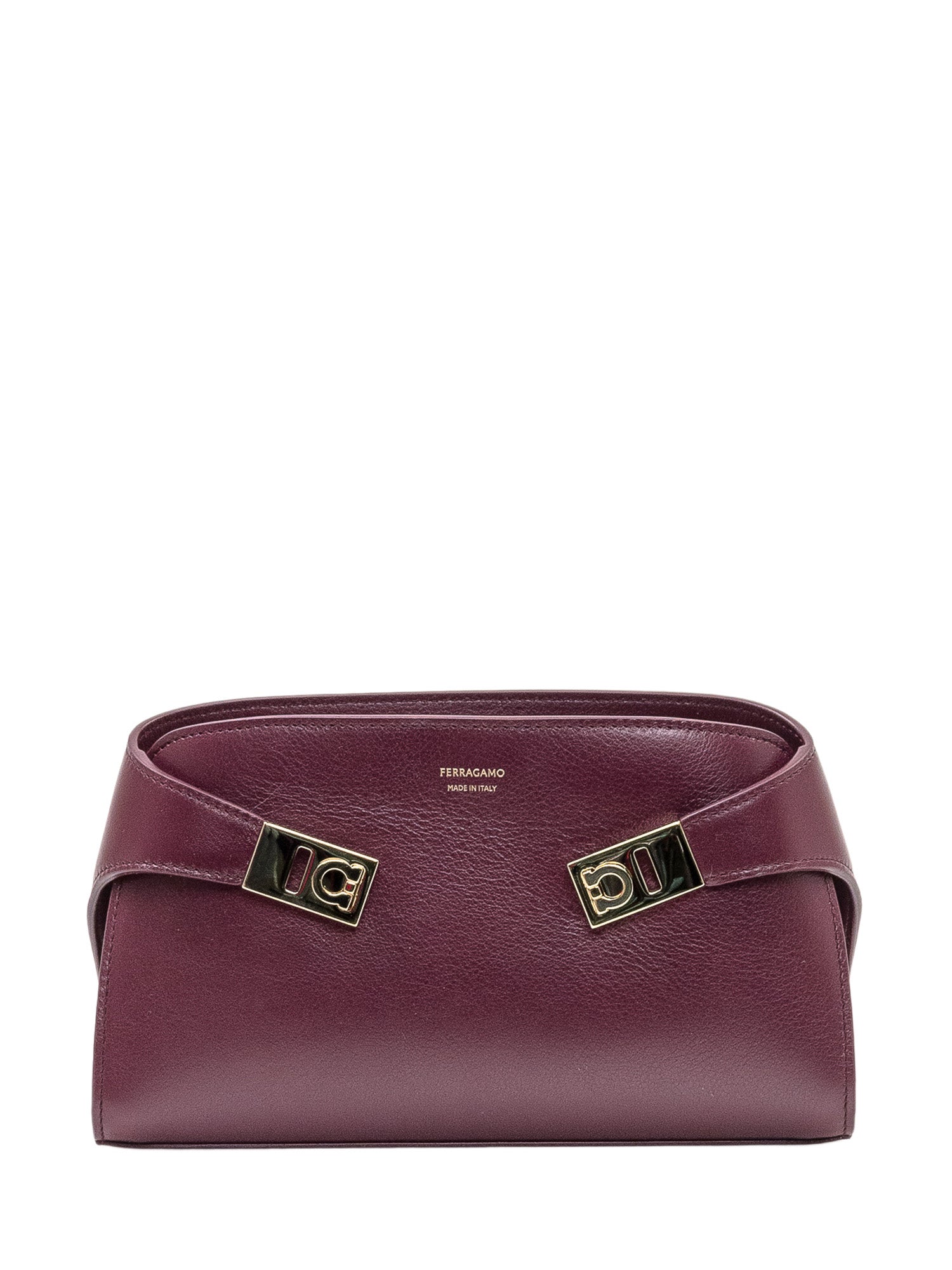 Borsa a spalla in pelle dalla silhouette strutturata con doppi dettagli metallici frontali e tracolla regolabile.