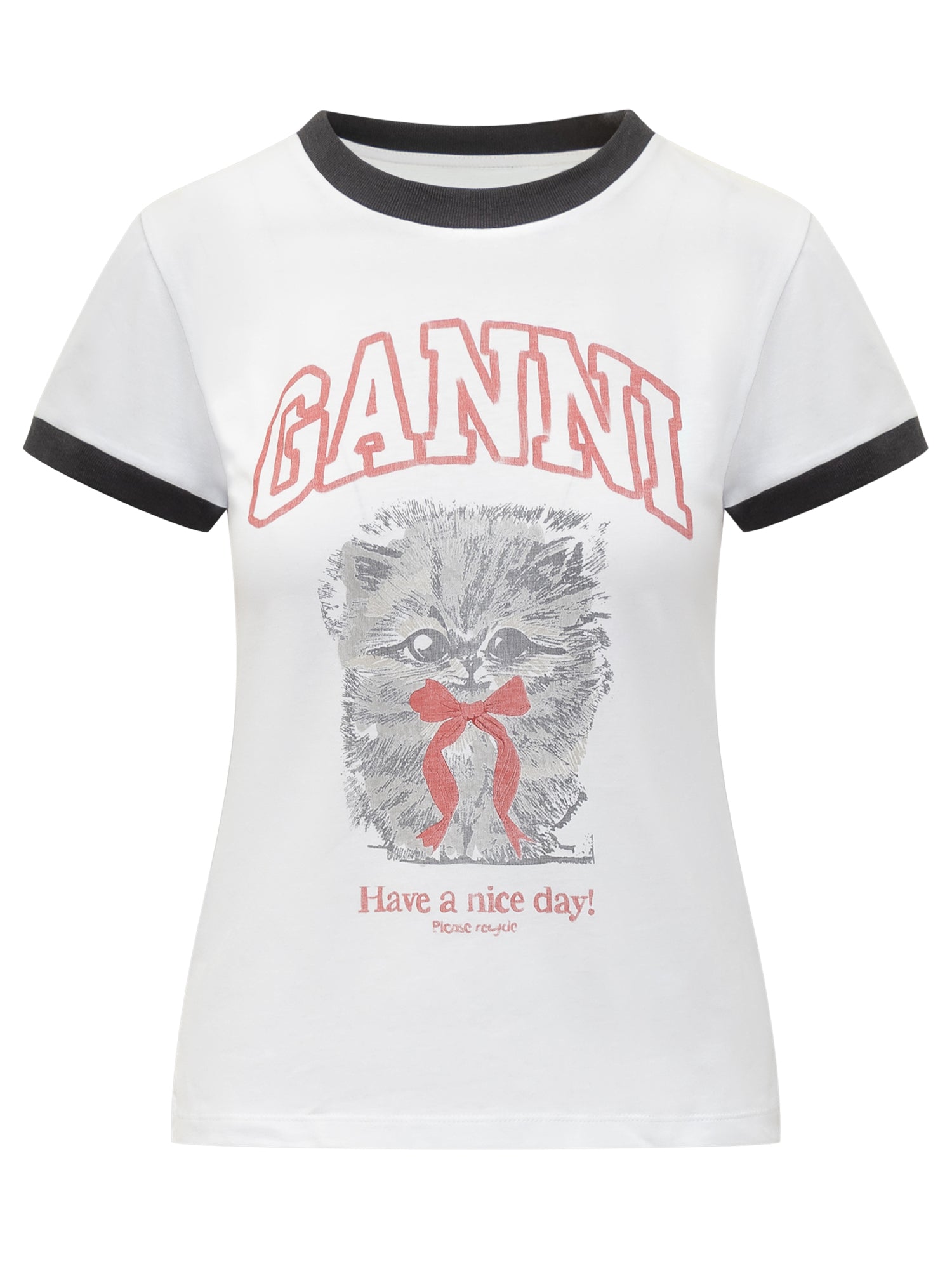 T-shirt slim con stampa grafica kitty e dettagli a contrasto. Realizzata in jersey morbido, offre una vestibilità aderente ideale per look casual dal tocco playful.