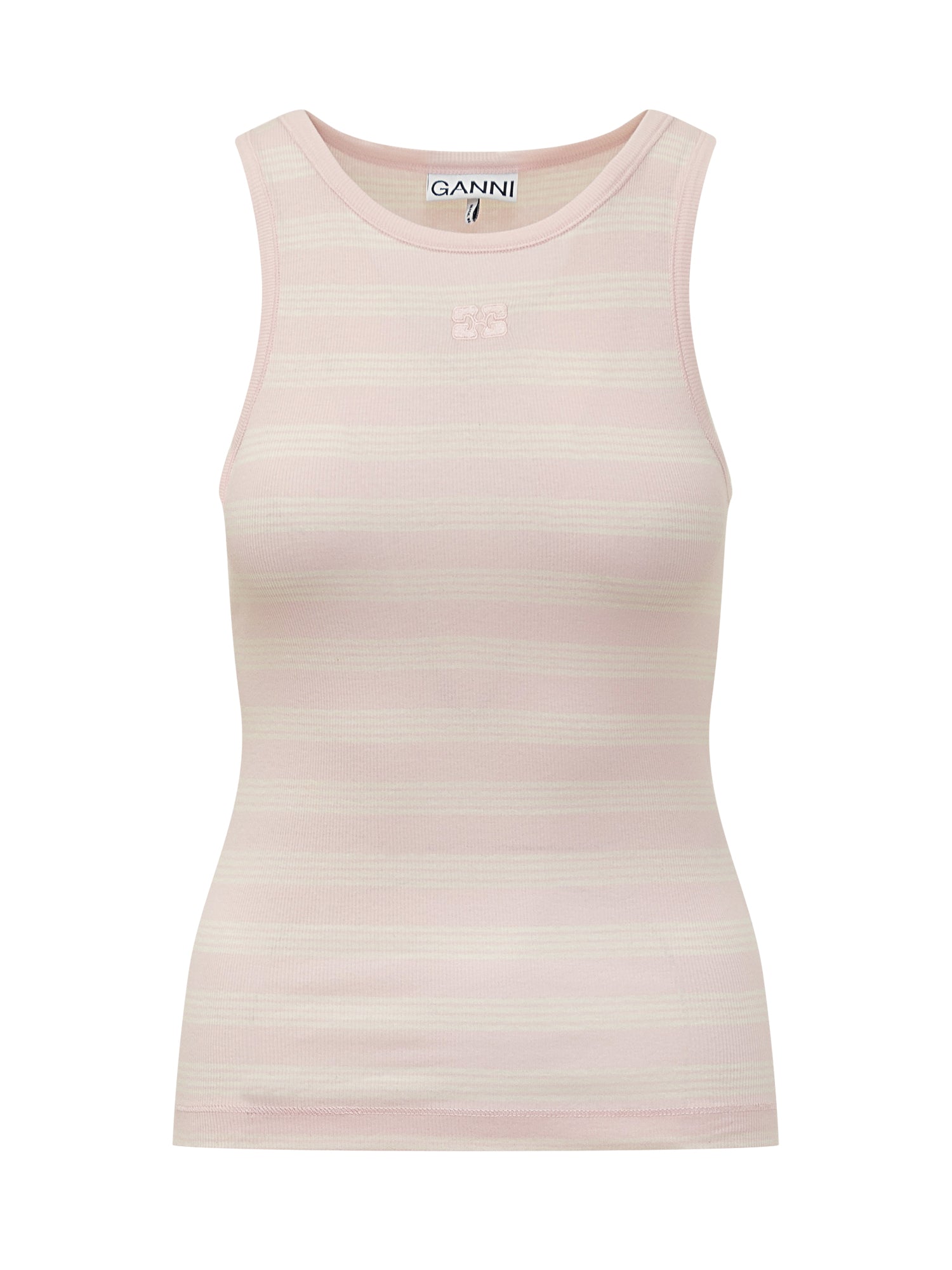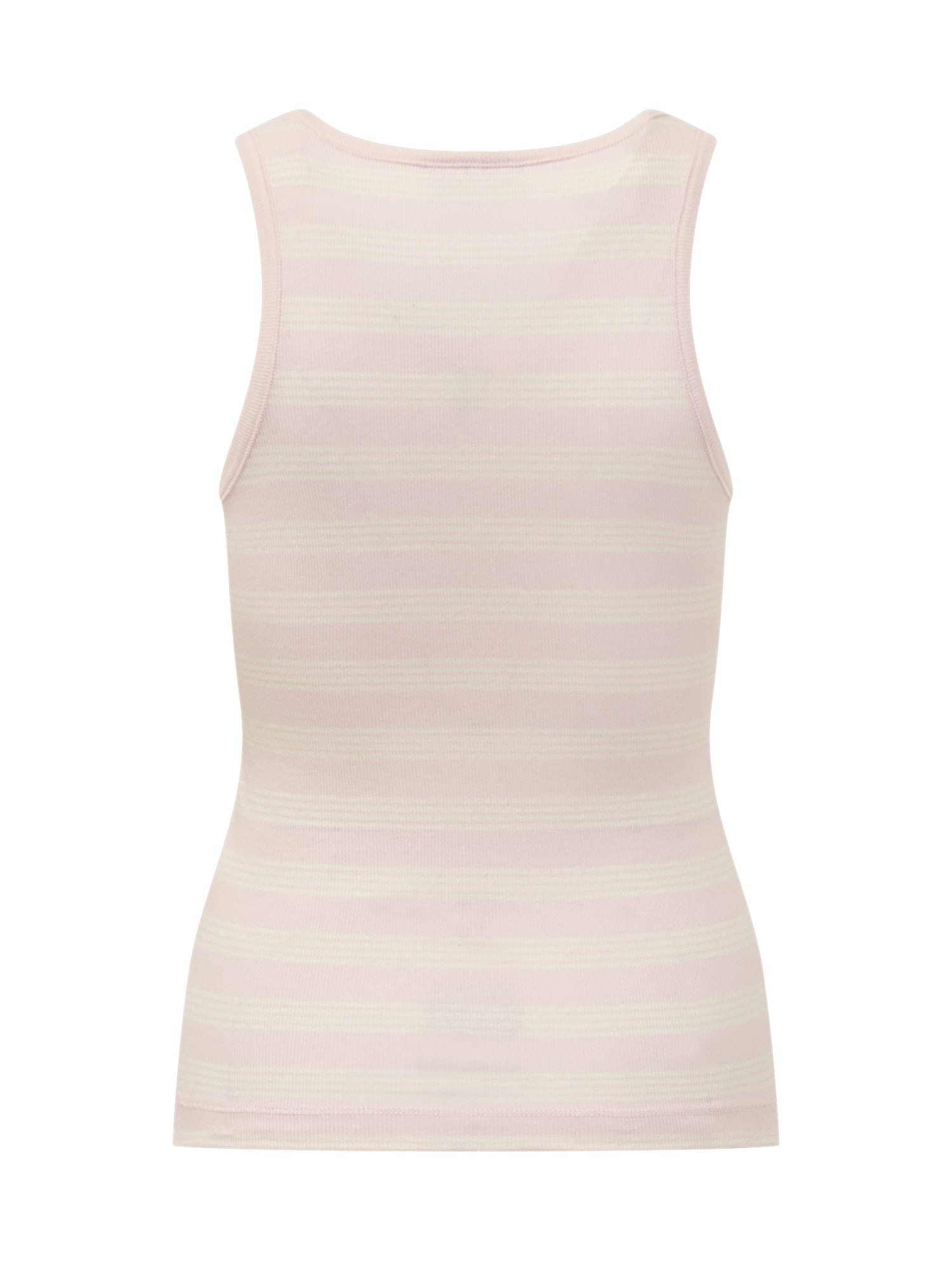Canotta in cotone morbido a coste sottili, con motivo a righe delicate e silhouette aderente. Leggera e confortevole.