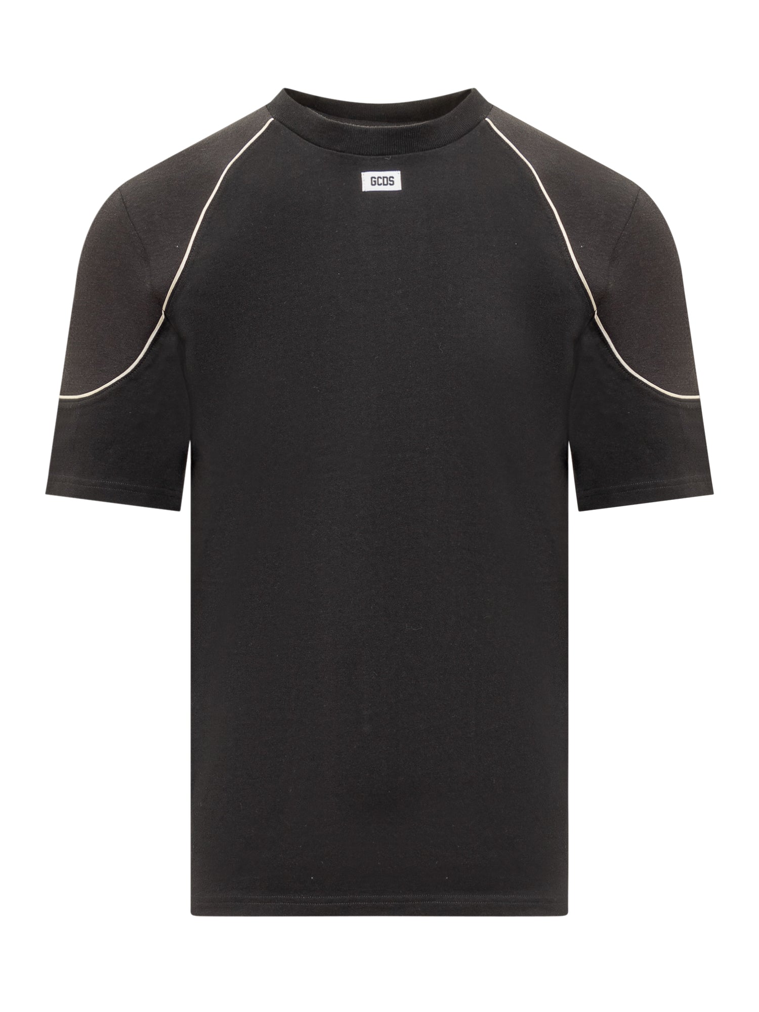 T-shirt a maniche corte. Girocollo. Orli a costine. Logo stampato sul davanti. Dettaglio sulle spalle e maniche a contrasto.