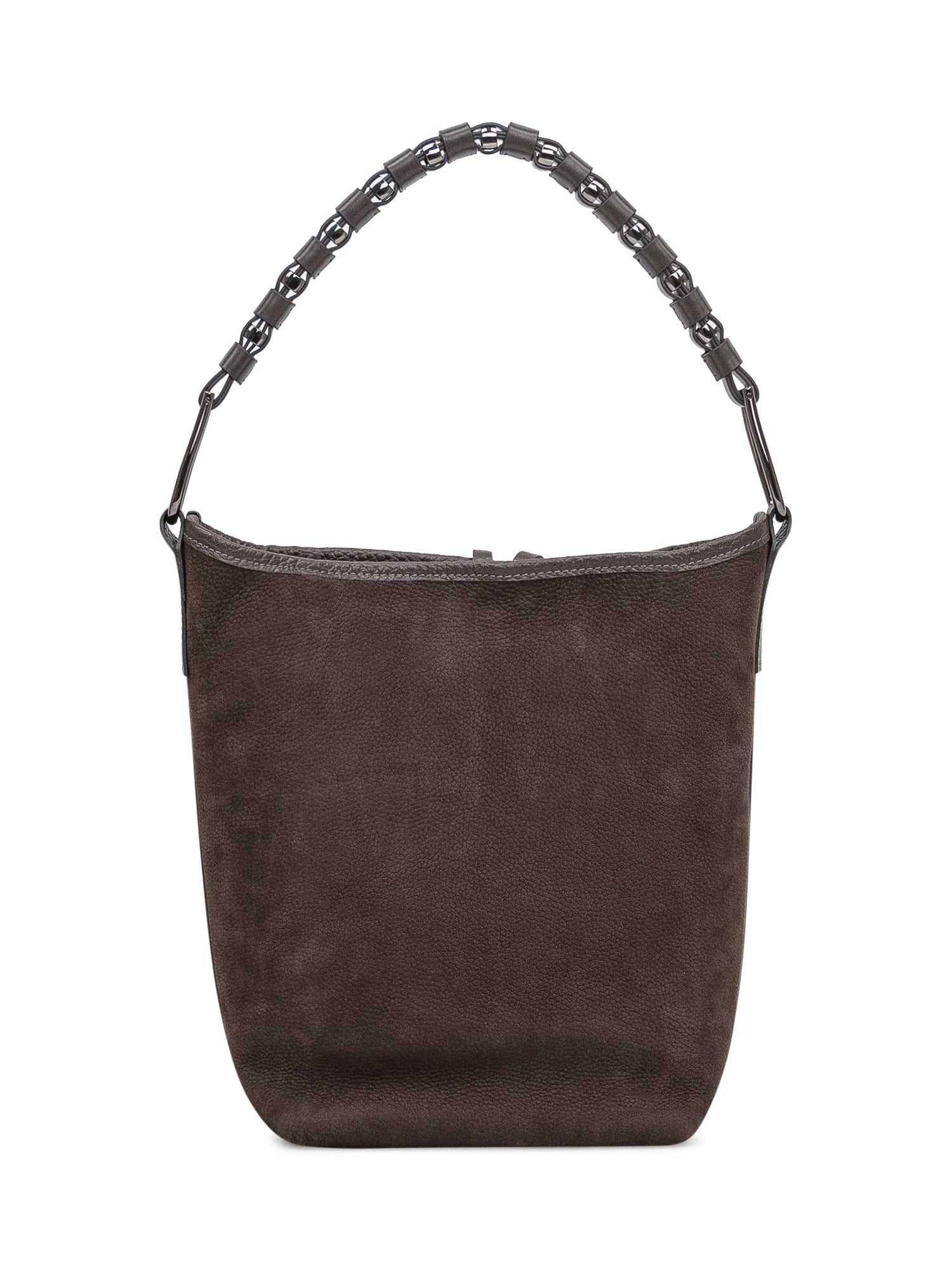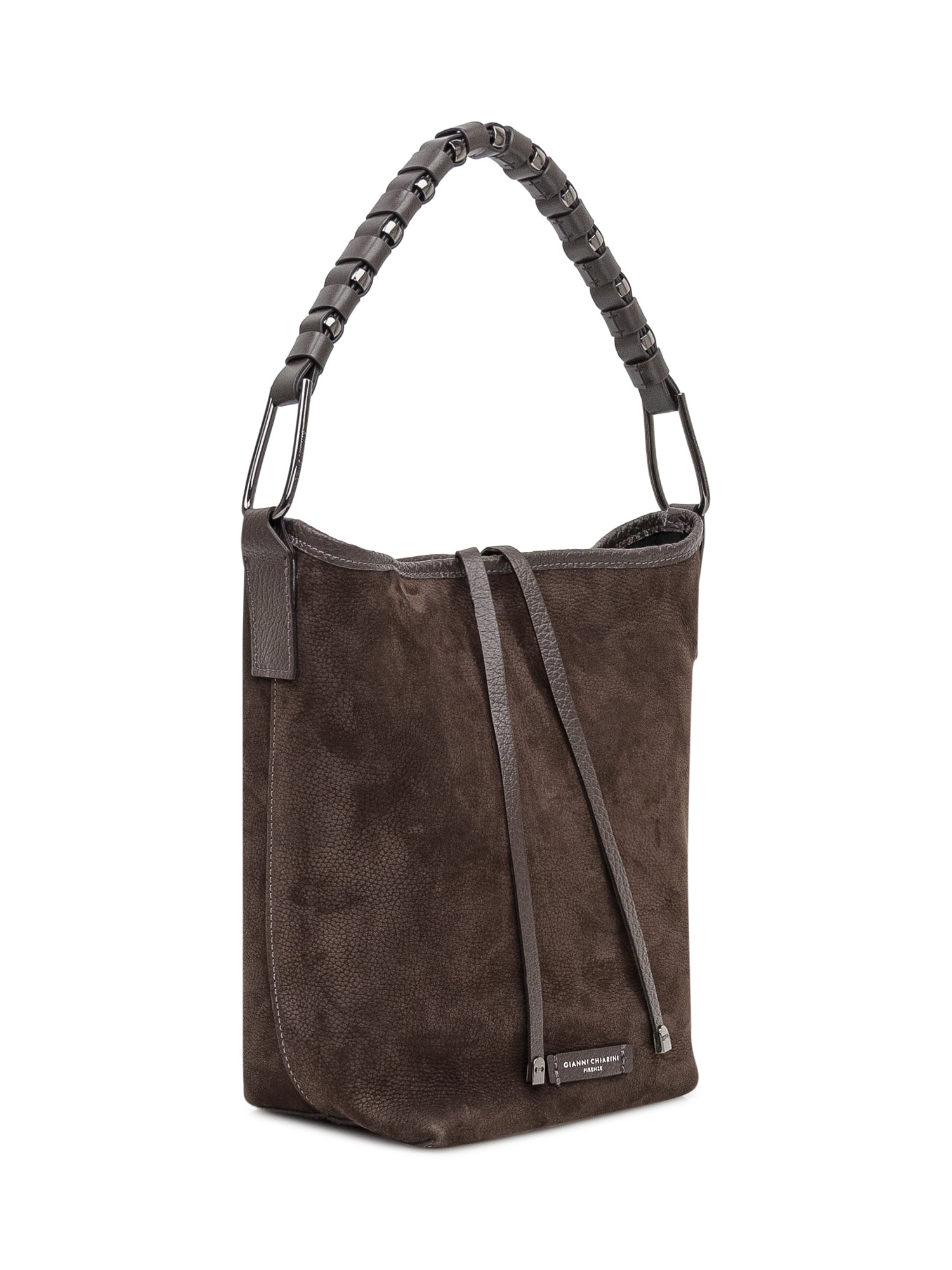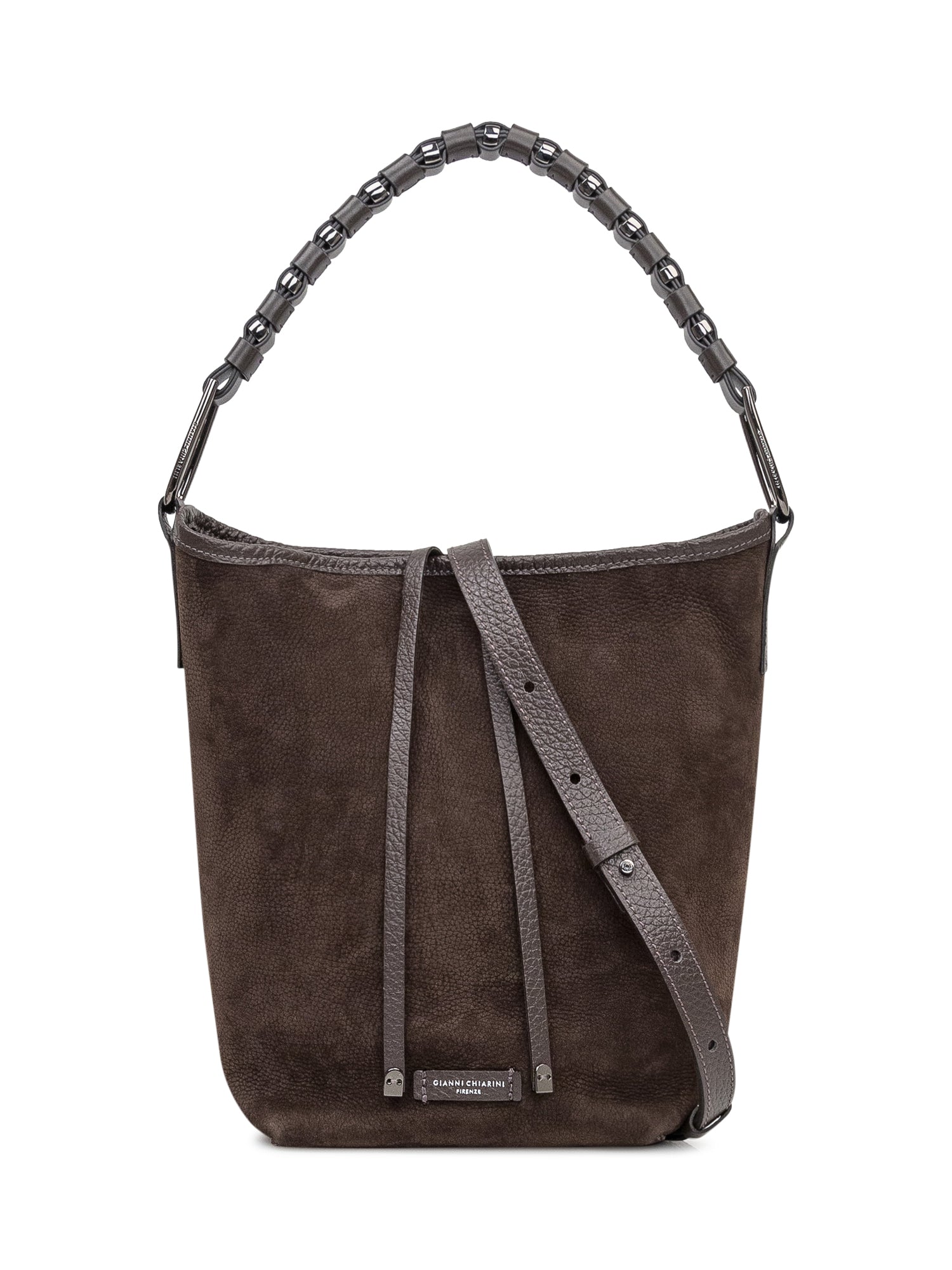 Borsa hobo Gianni Chiarini in pelle scamosciata marrone con manico decorato e dettagli in pelle liscia.