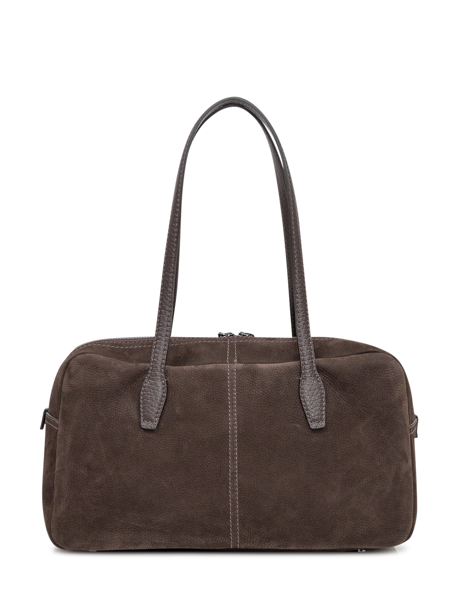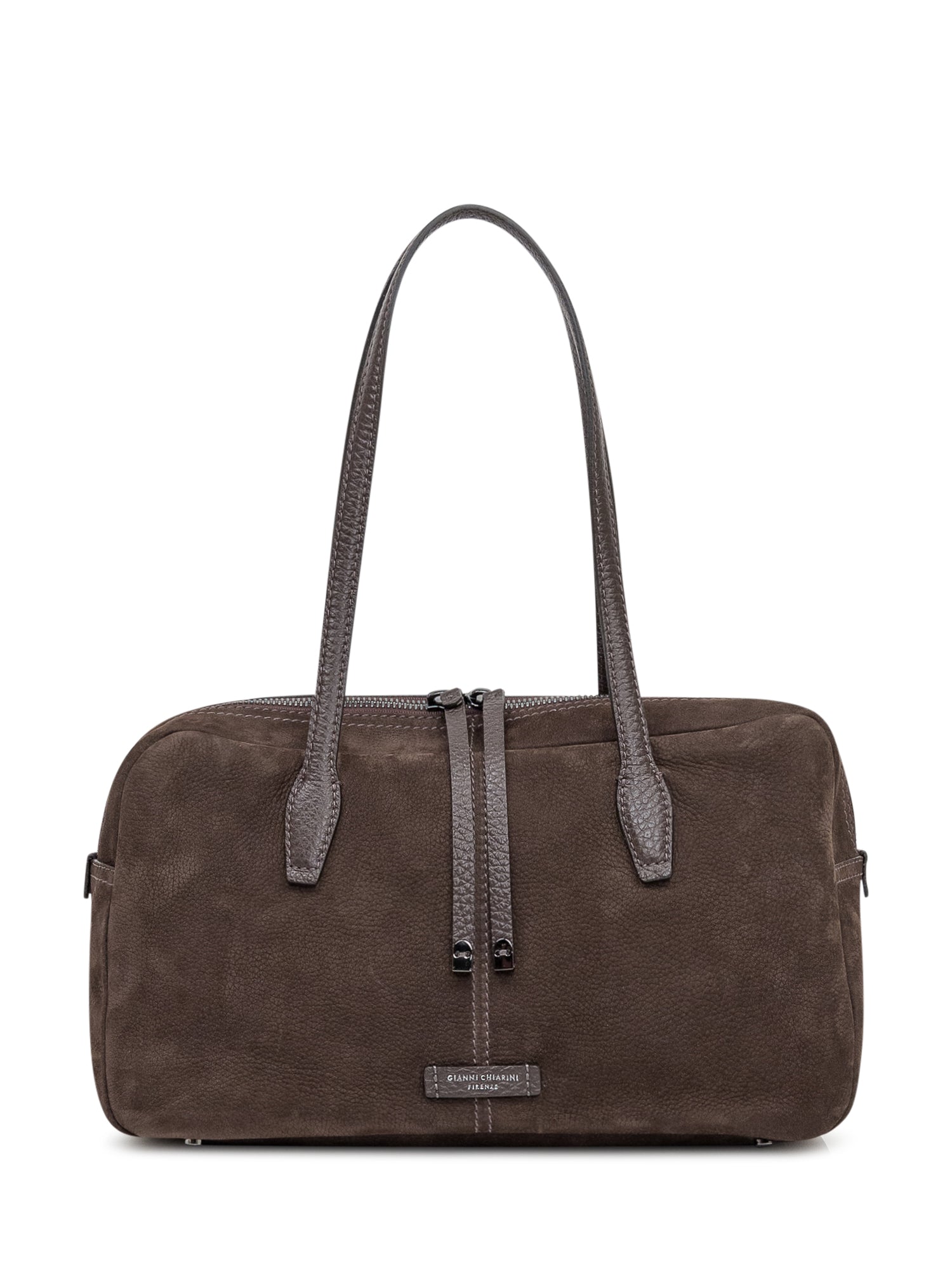 Borsa Gianni Chiarini in pelle scamosciata marrone con doppi manici e chiusura a zip.