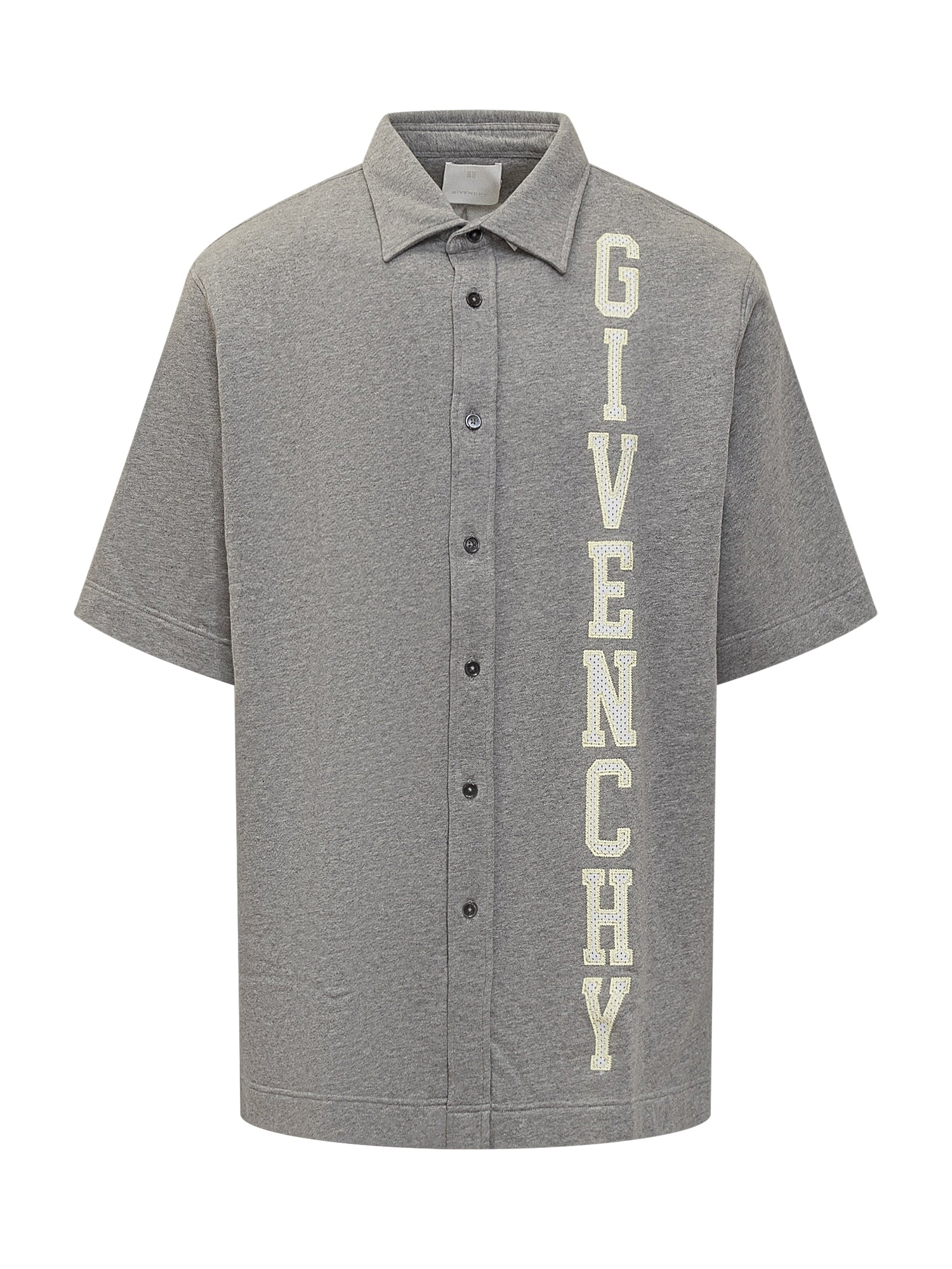 Camicia a maniche corte in cotone. Colletto a punta. Chiusura con bottoni. Logo con effetto traforato sul davanti.