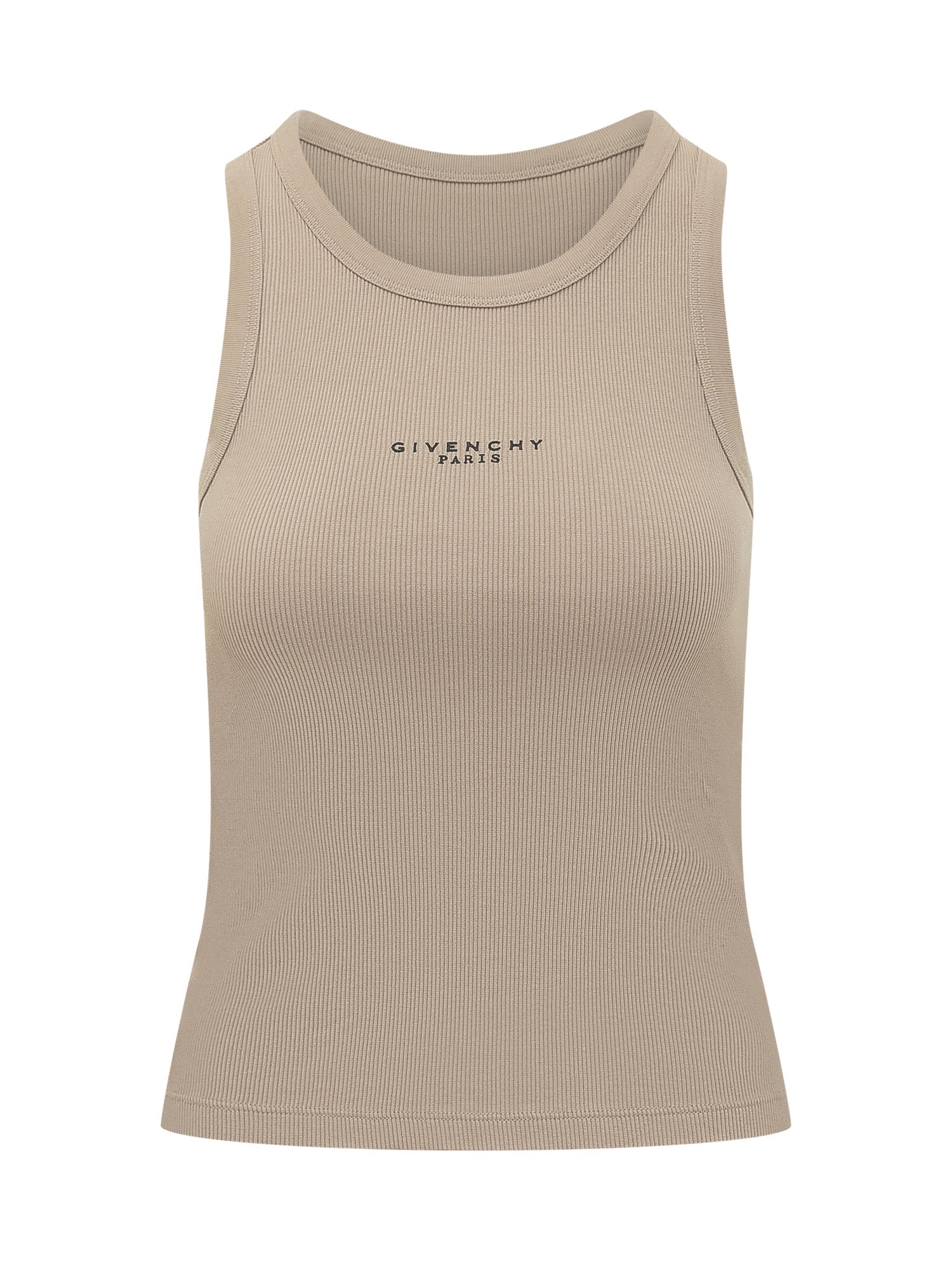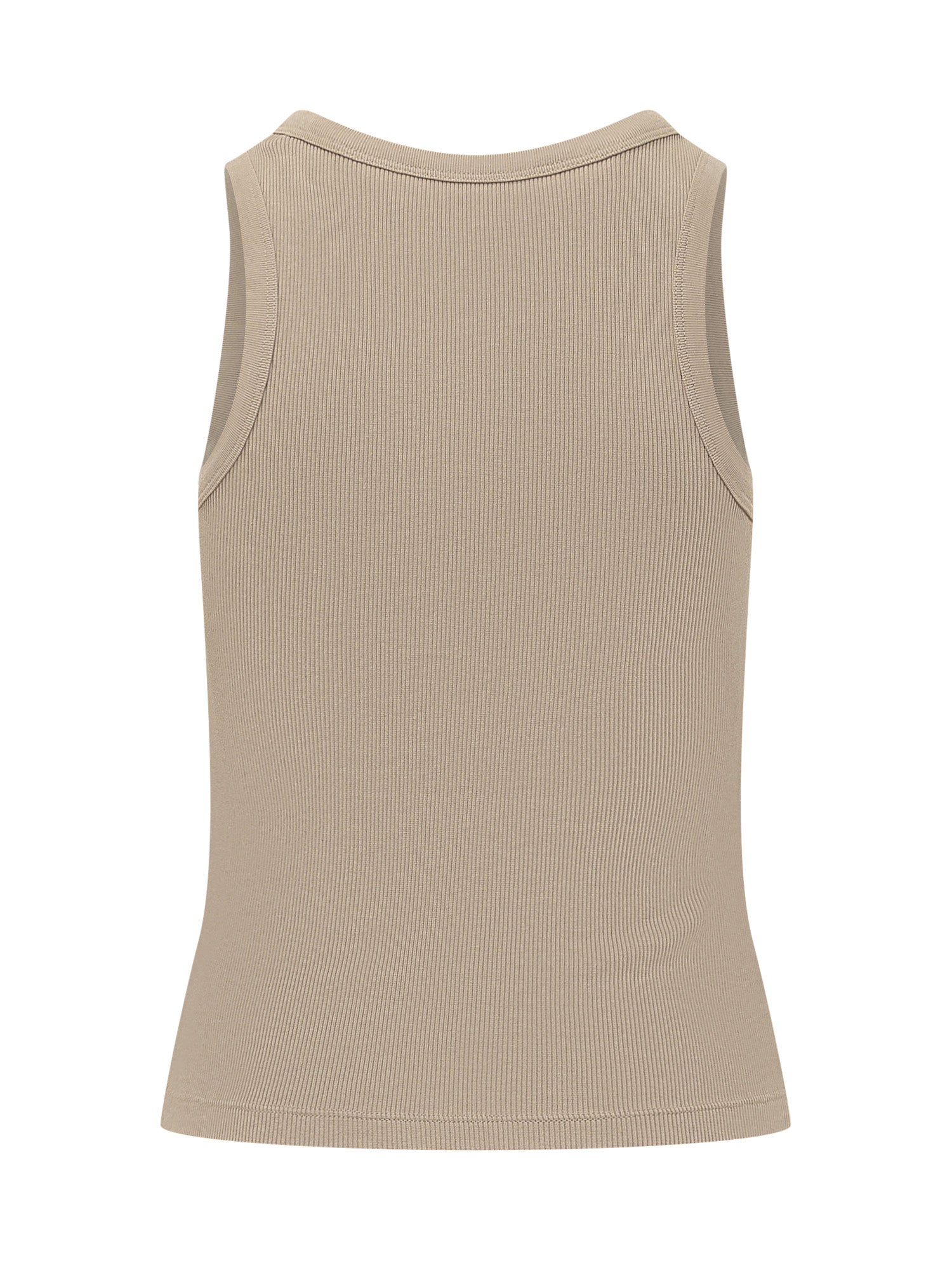Top senza maniche in maglia a costine con scollo rotondo. Design essenziale e vestibilità aderente che valorizza la silhouette. Ideale da indossare da solo o come base per look stratificati.