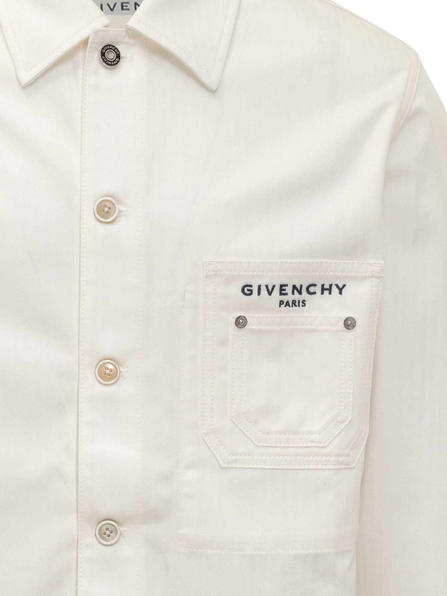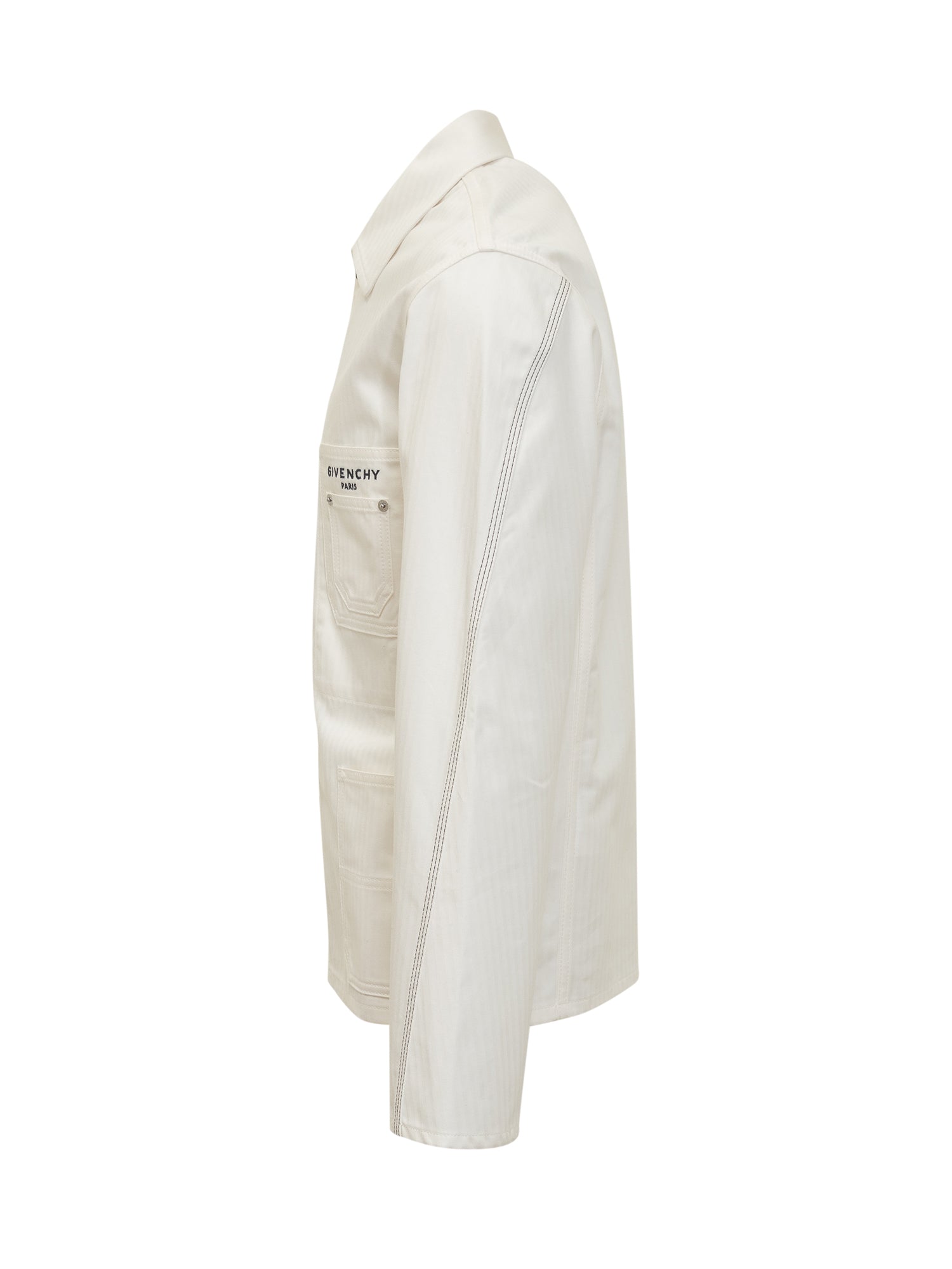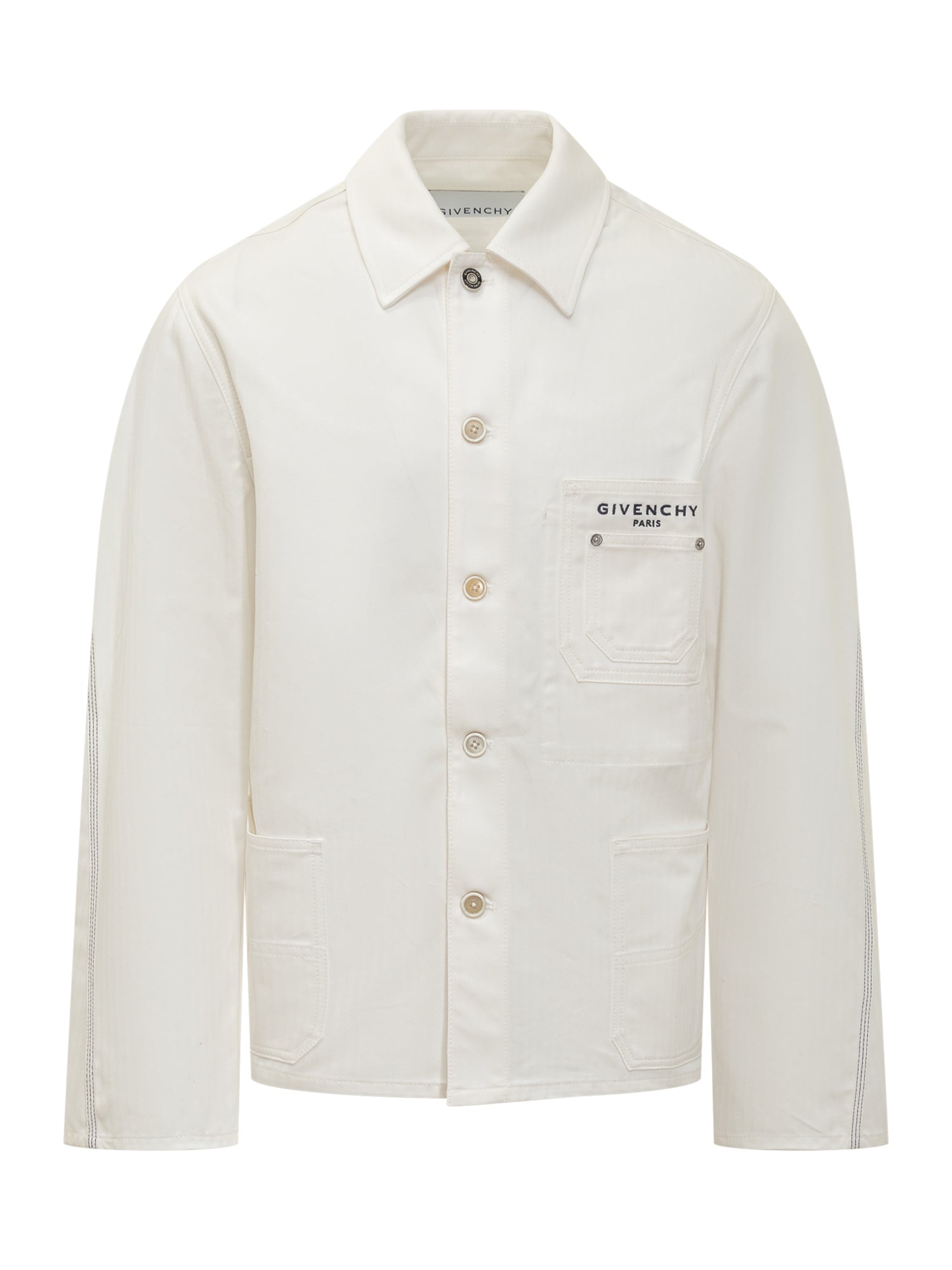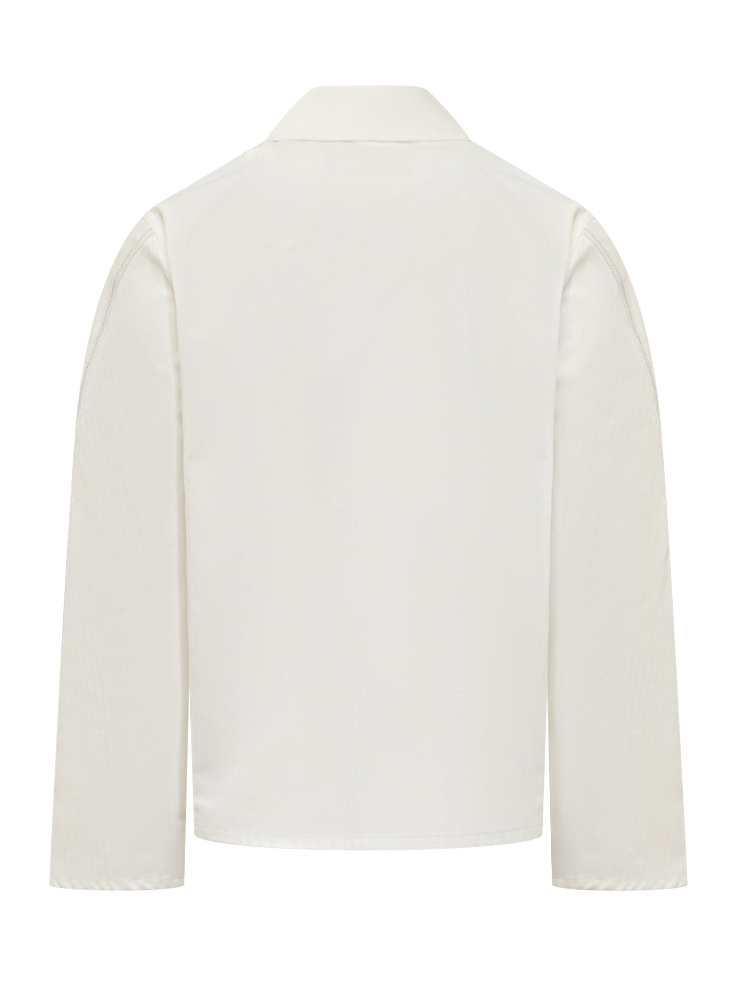 Giacca leggera stile workwear con colletto classico, tasche applicate e ricamo minimale sul petto. Linee pulite e vestibilità confortevole.