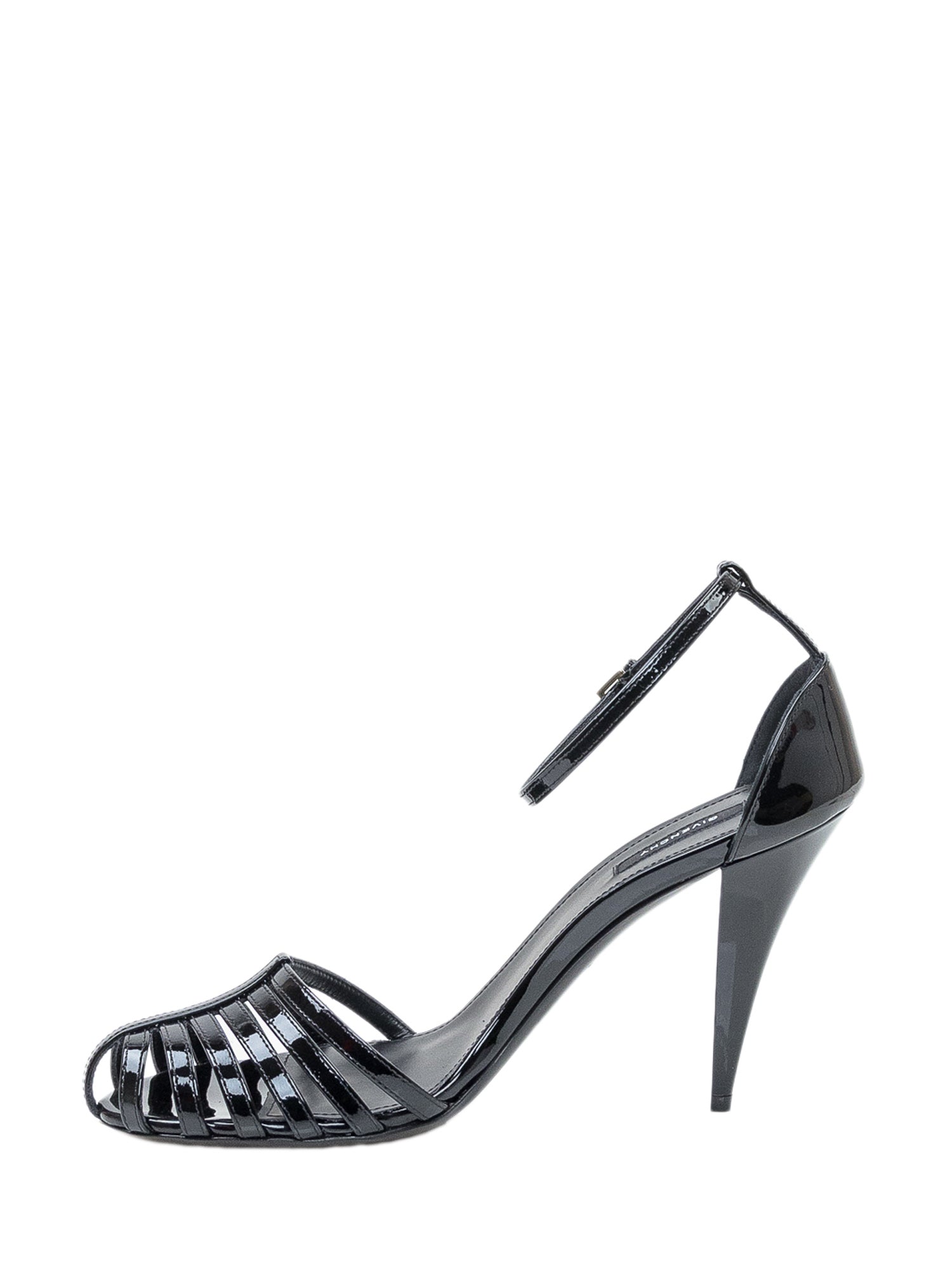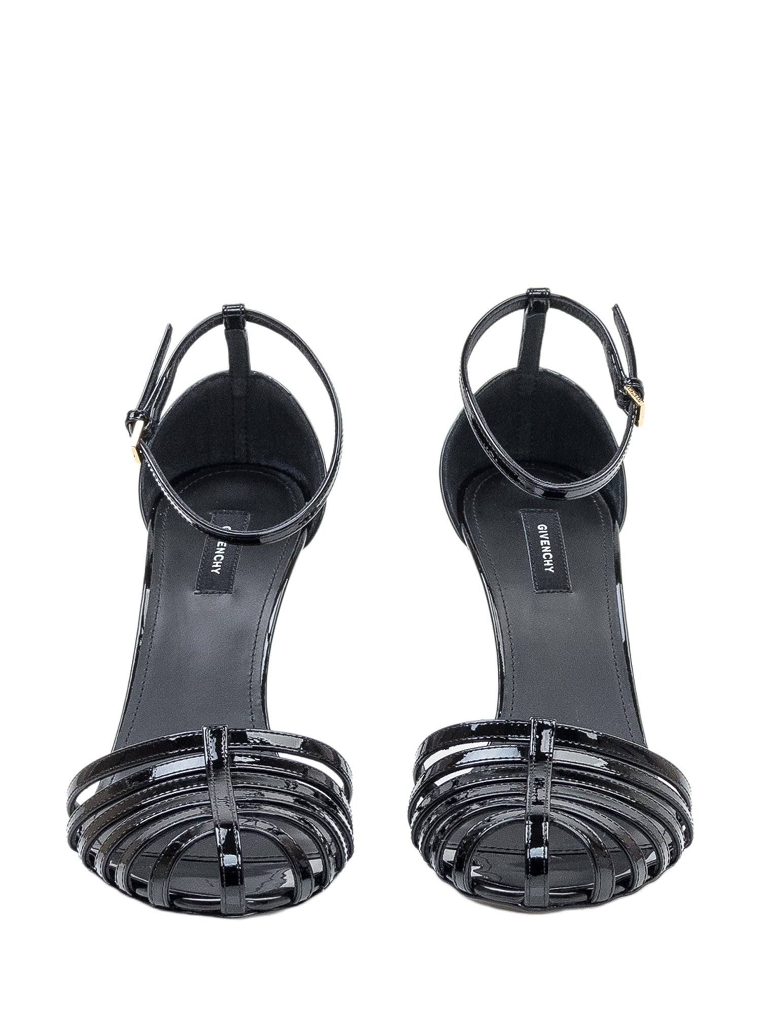 Sandalo elegante con listini intrecciati sul davanti e cinturino alla caviglia regolabile.Altezza tacco: 10 cm