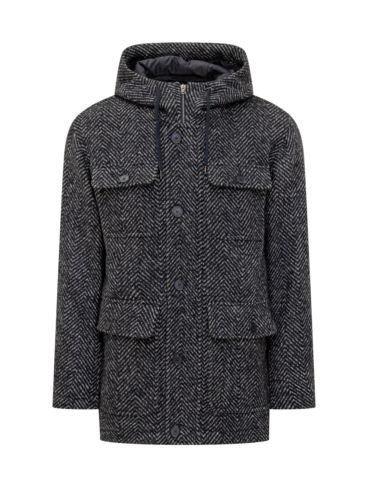 Esterno: 60% lana, 21% poliestere, 11% acrilica, 7% poliammide, 1% altre fibre Fodera: 100% poliestere