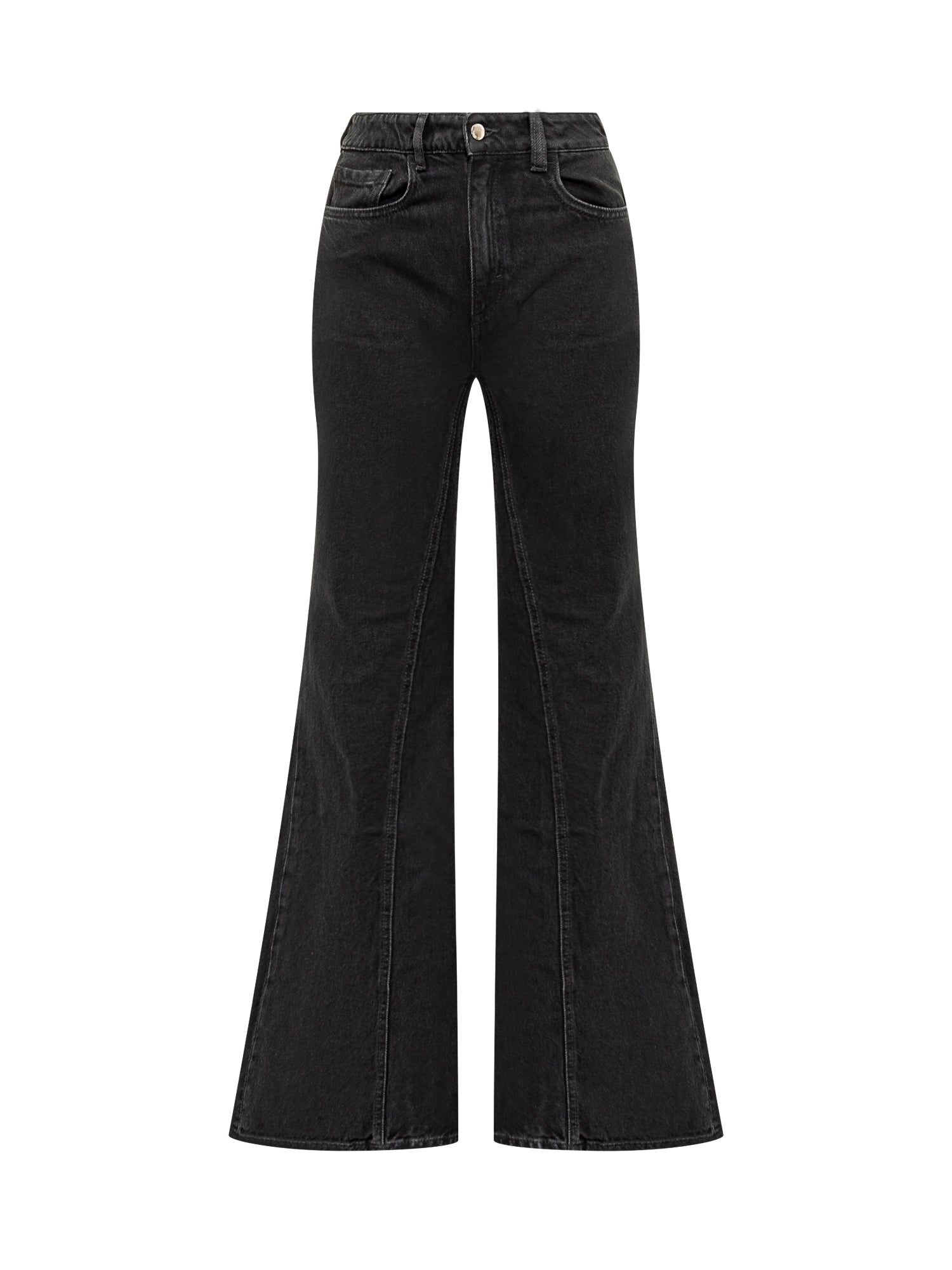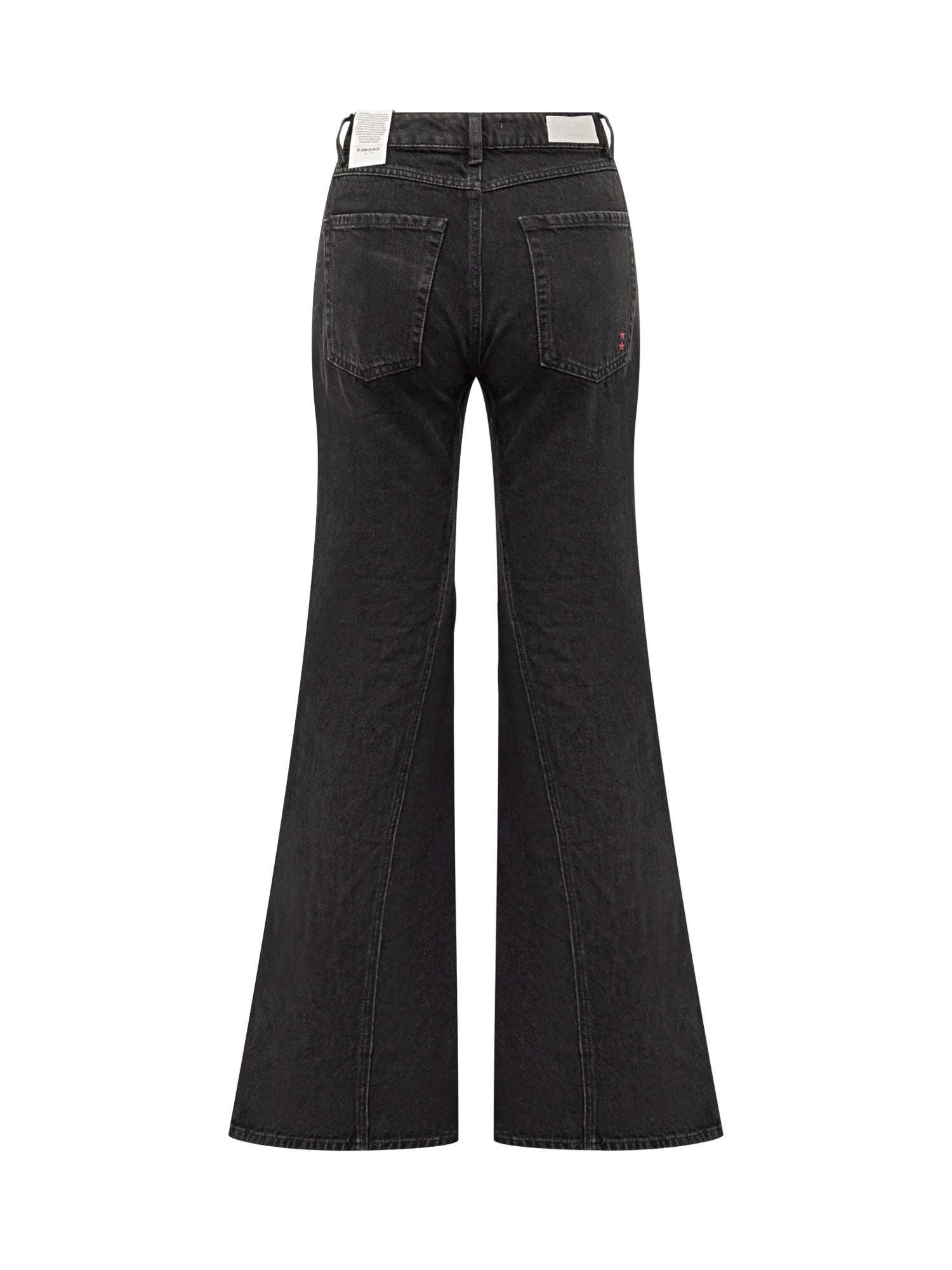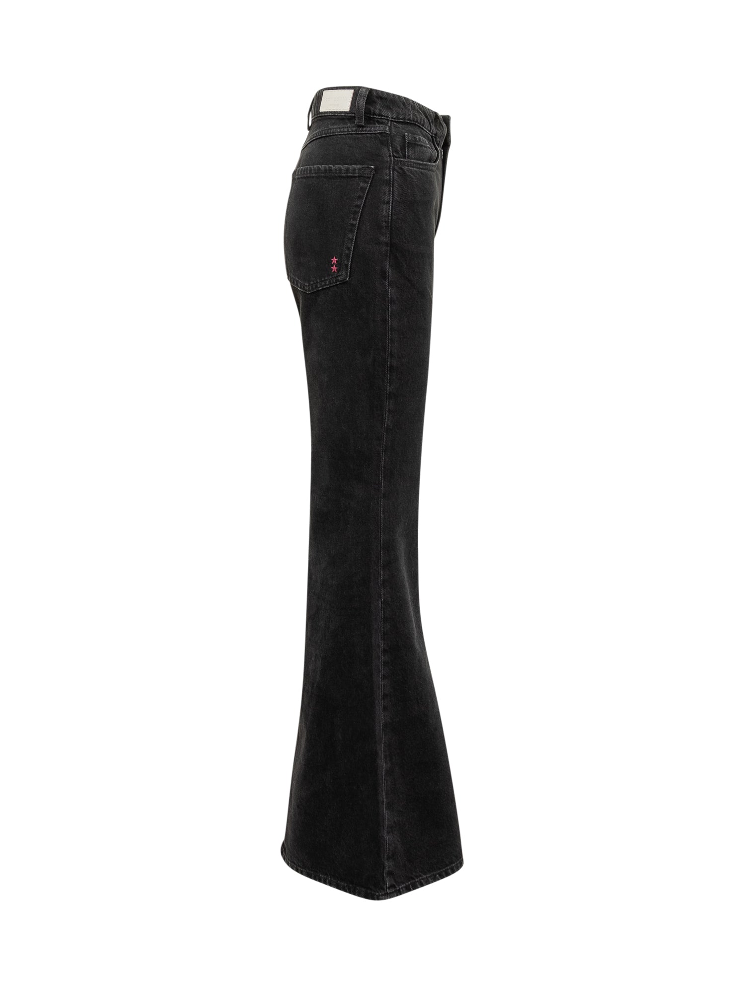 Jeans Icon Denim Stella Zampa in denim nero con vita alta e gamba svasata. Linea dal fascino rétro e fit slanciato che valorizza la silhouette.