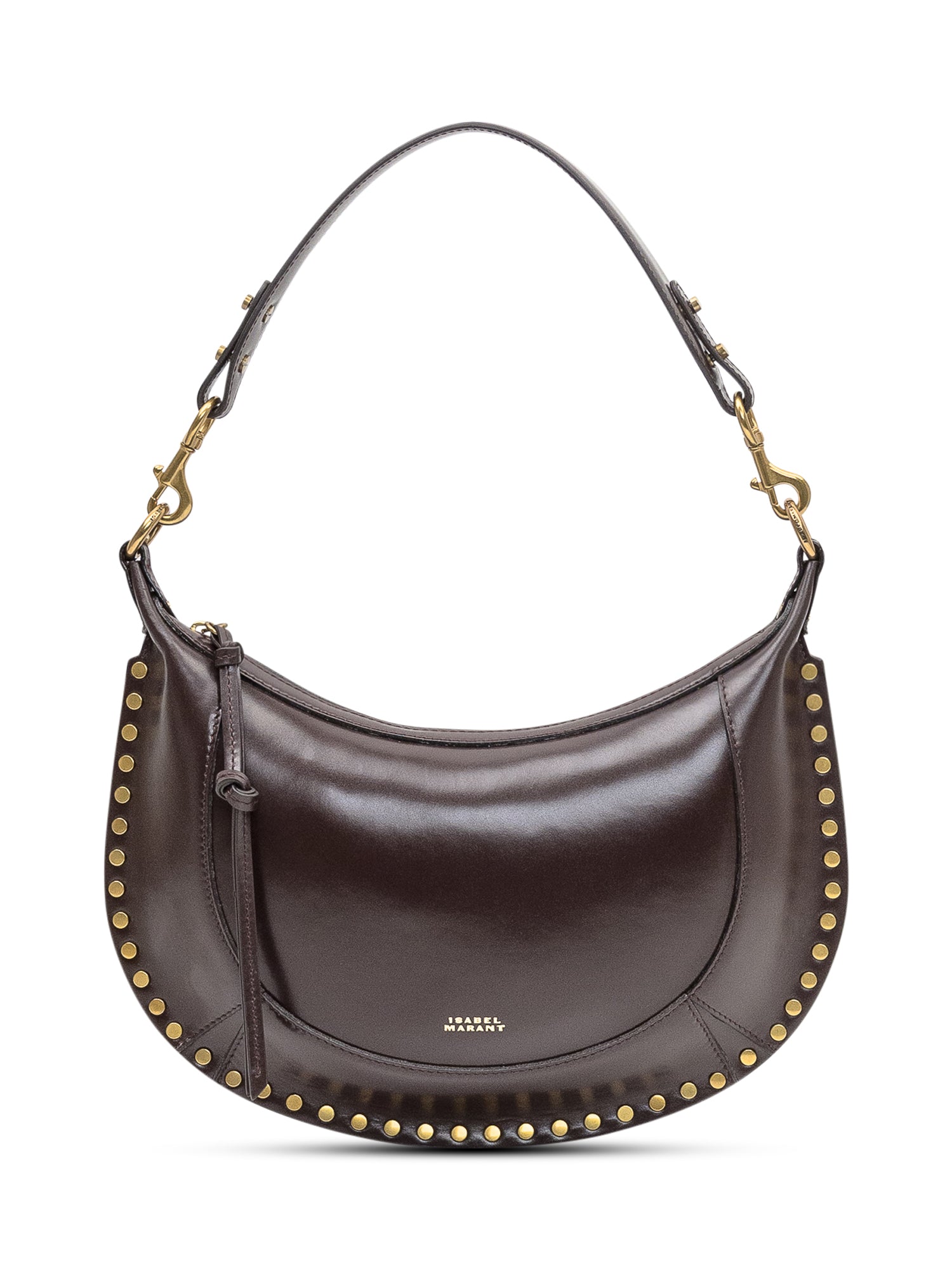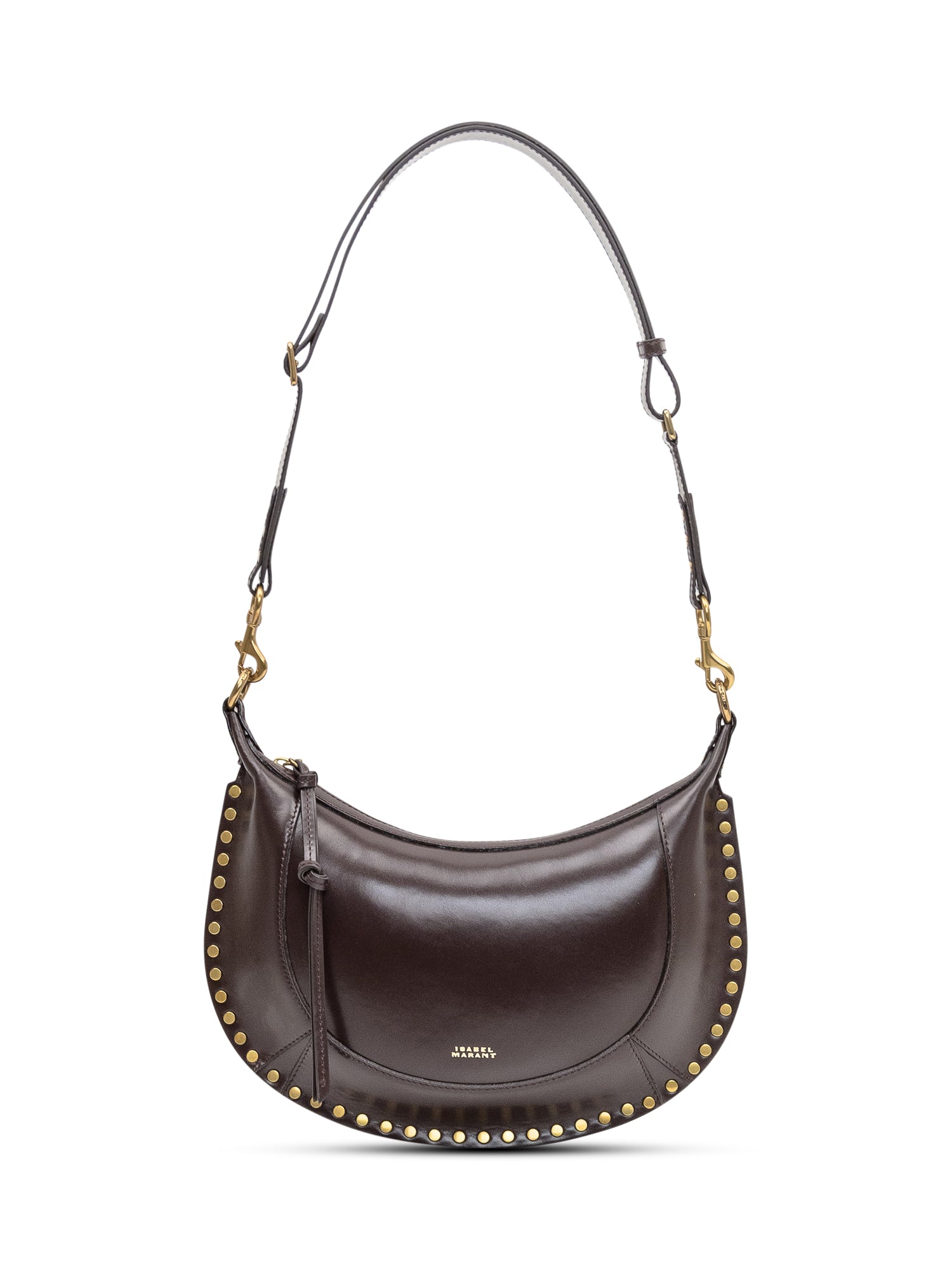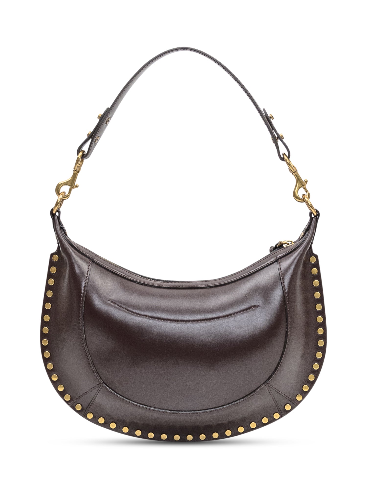 Borsa a spalla dal design a mezzaluna con dettagli metallici e profilo borchiato.Dimensioni: 34x20x5