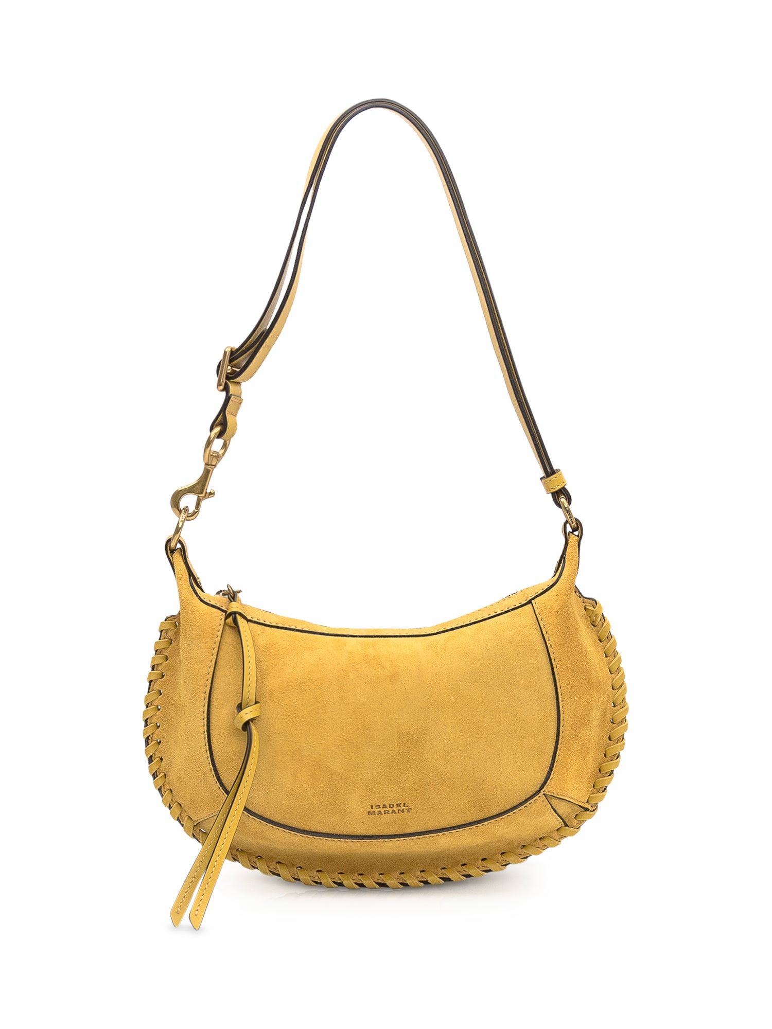 Borsa a spalla in suede con silhouette a mezzaluna, dettagli intrecciati lungo i bordi e tracolla regolabile.Dimensioni: 30x17x10