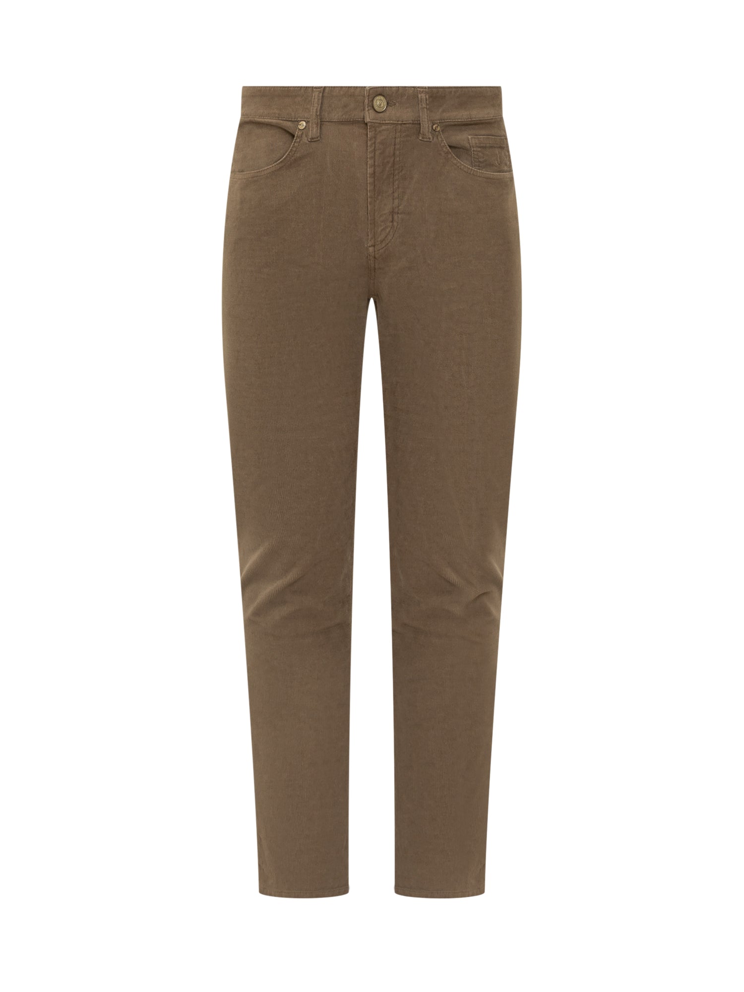 Pantaloni Jeckerson in velluto liscio marrone, dal taglio slim e cinque tasche. Chiusura con bottone e zip.