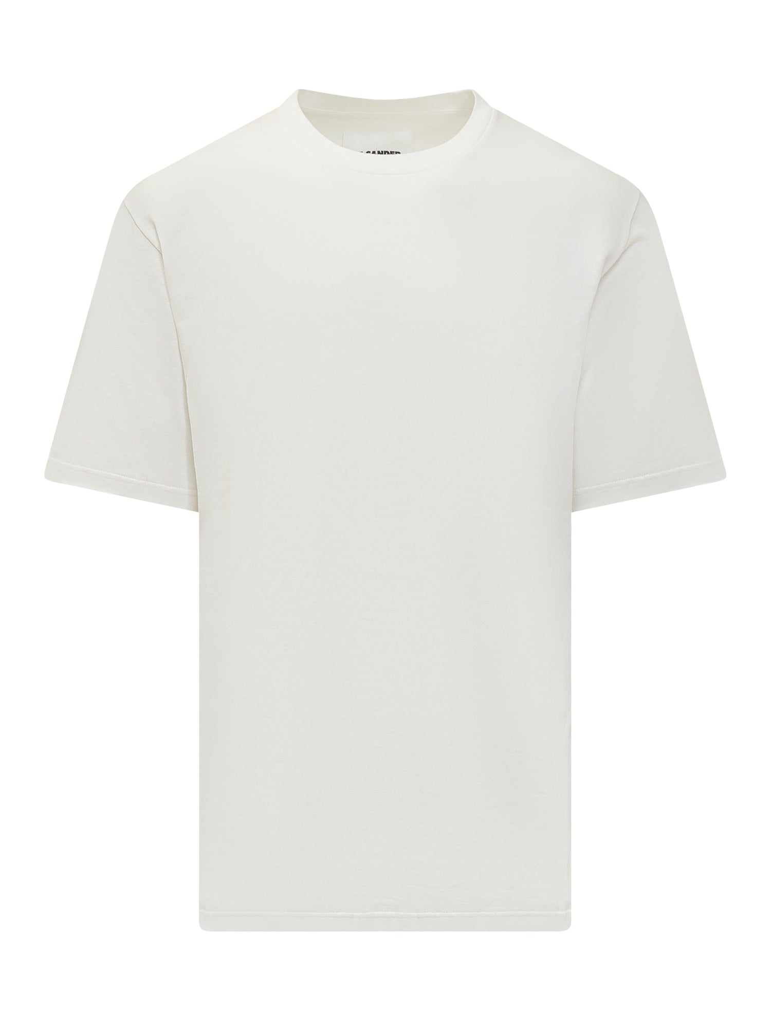T-shirt bianca in cotone. Girocollo. Stampa logo sul retro.