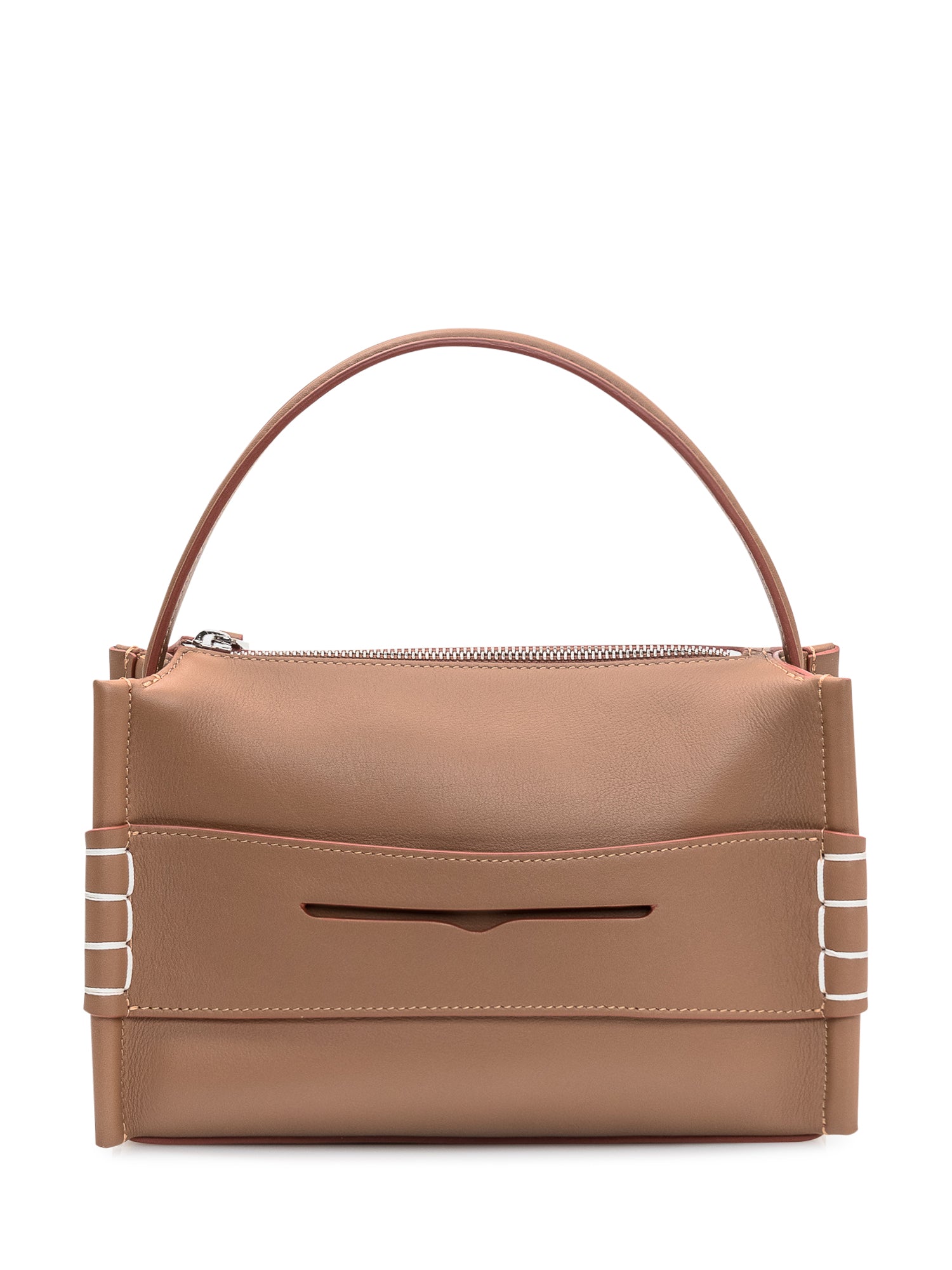 Borsa a mano compatta dal design essenziale, realizzata in pelle liscia con manico superiore e chiusura con zip.Dimensioni: 22x15x8