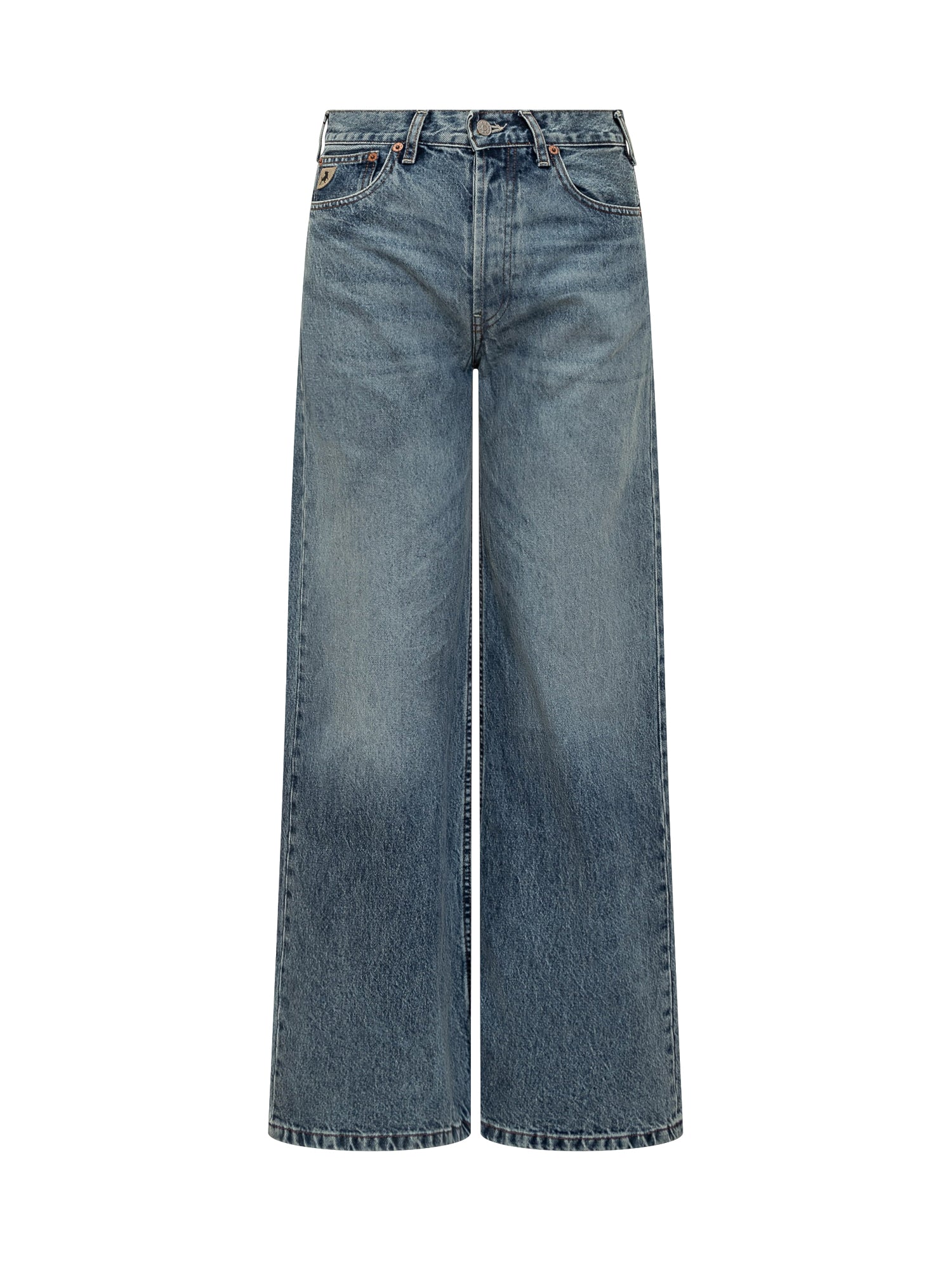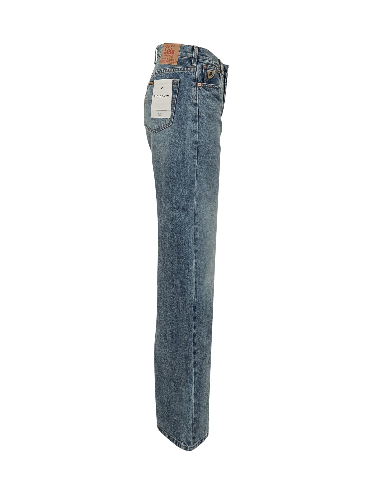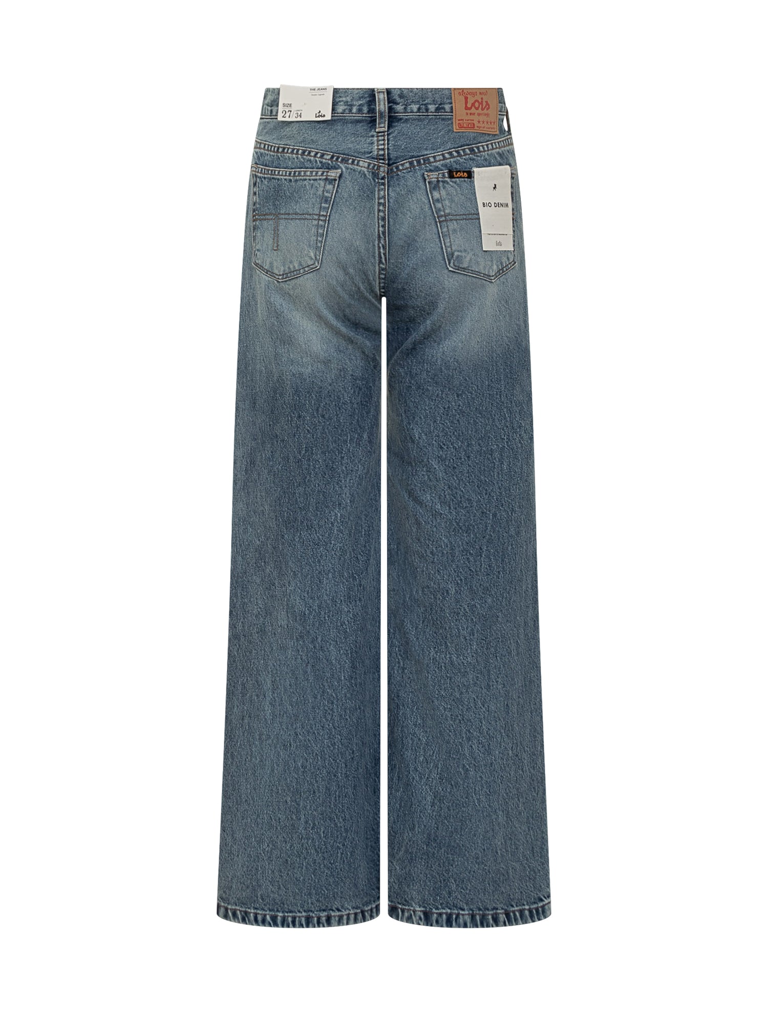 Jeans Lois in denim blu a gamba larga con vita regolare e lavaggio effetto vintage.