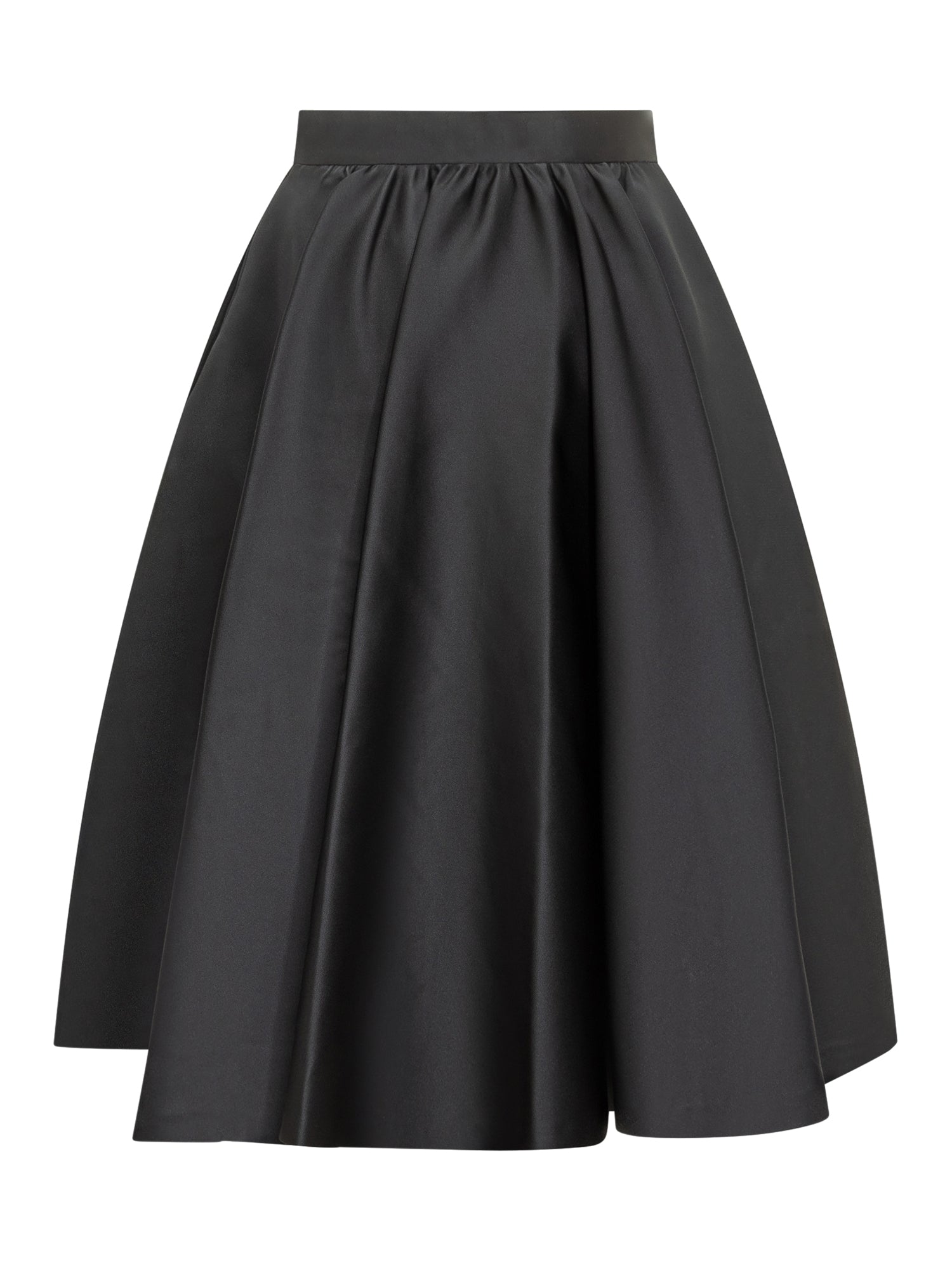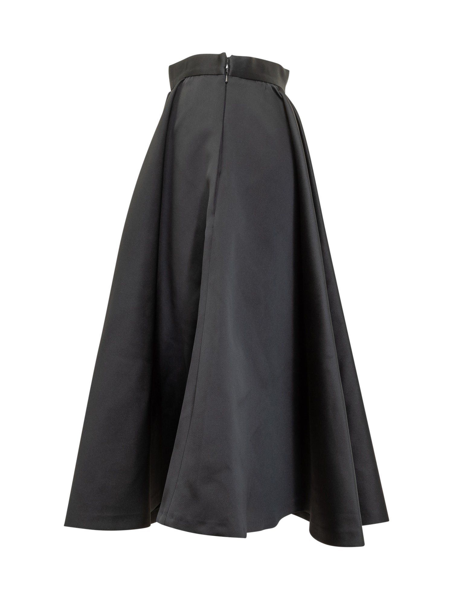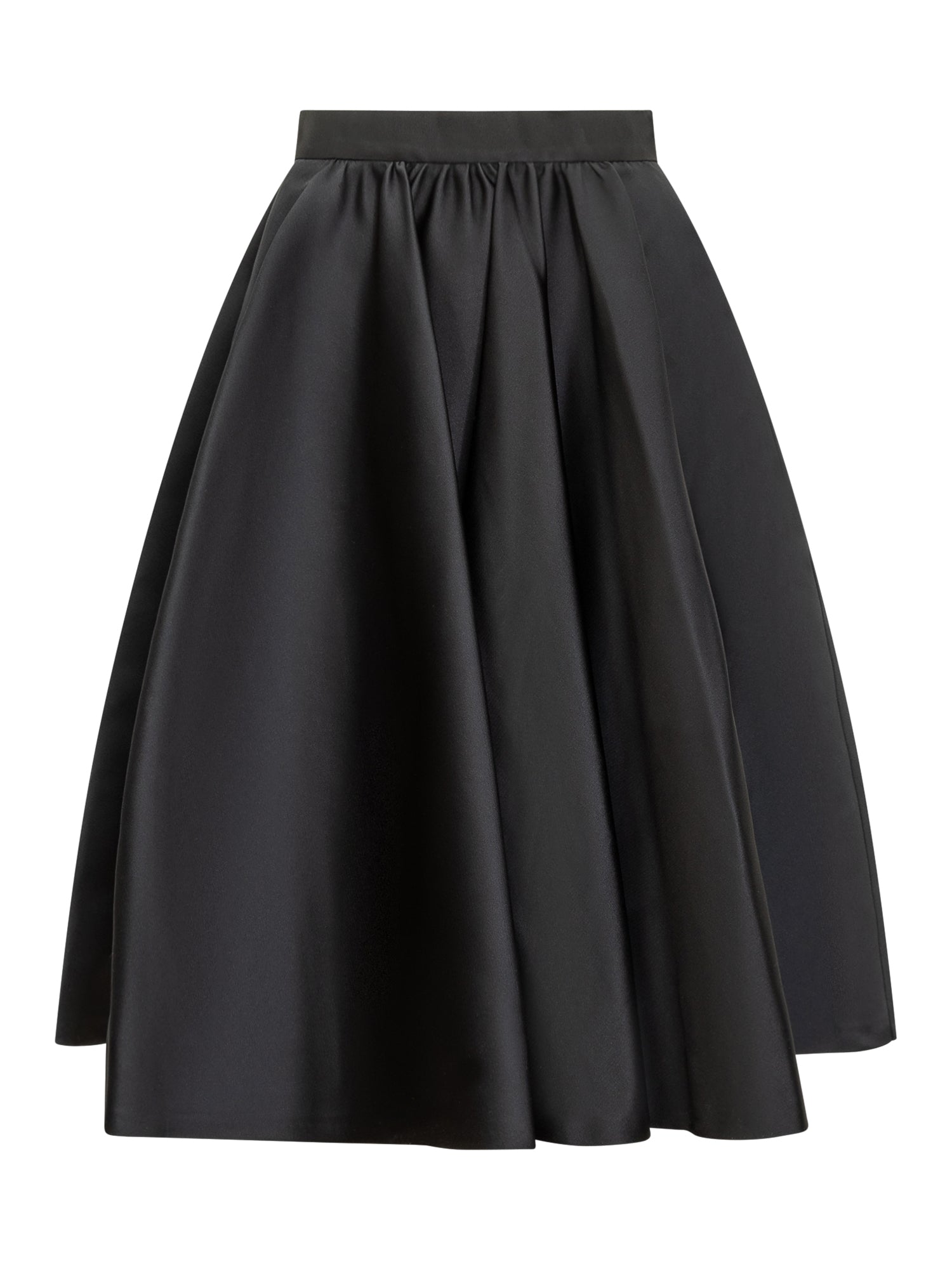 Gonna midi Max Mara Elegante Studio in raso nero lucente. Modello ampio con vita alta e pieghe morbide che creano volume e movimento.
