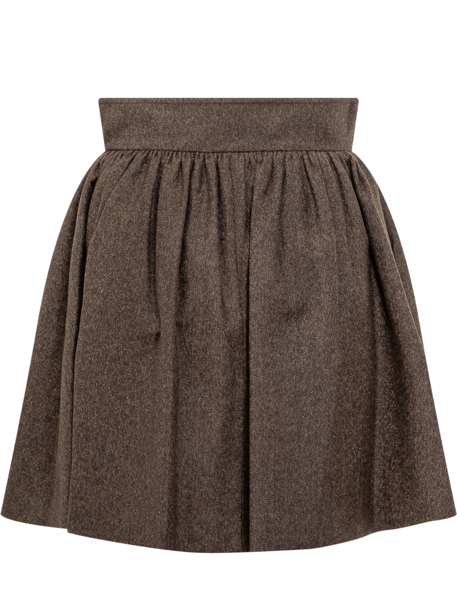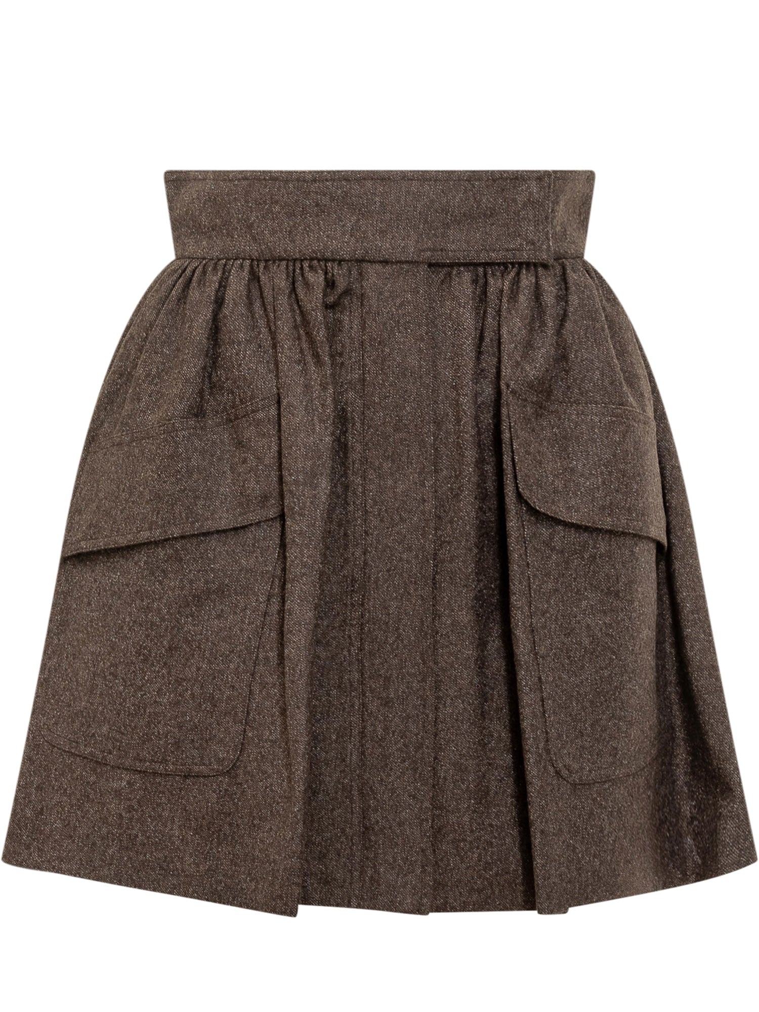 Gonna corta Max Mara in lana marrone con vita alta e grandi tasche applicate.