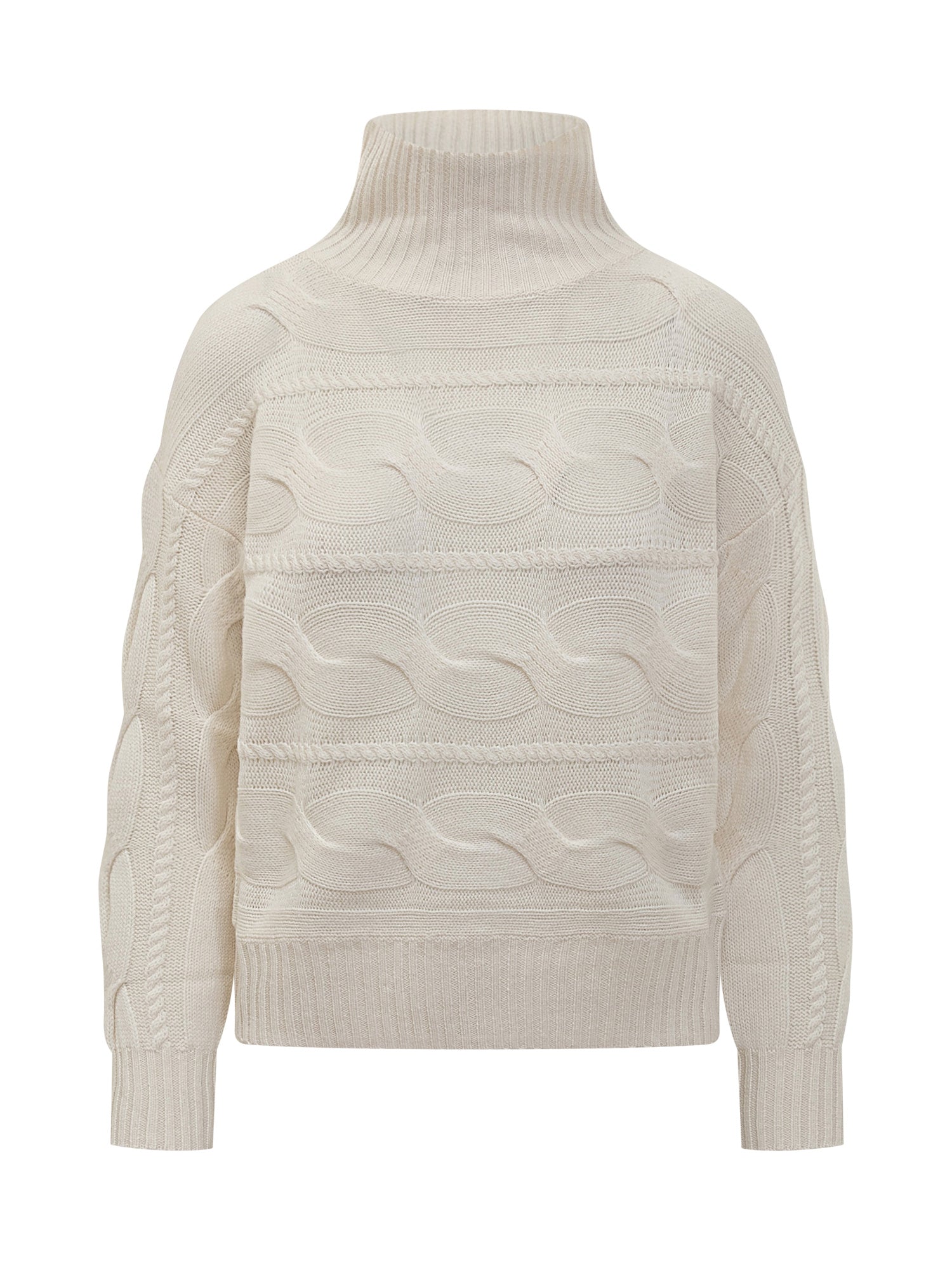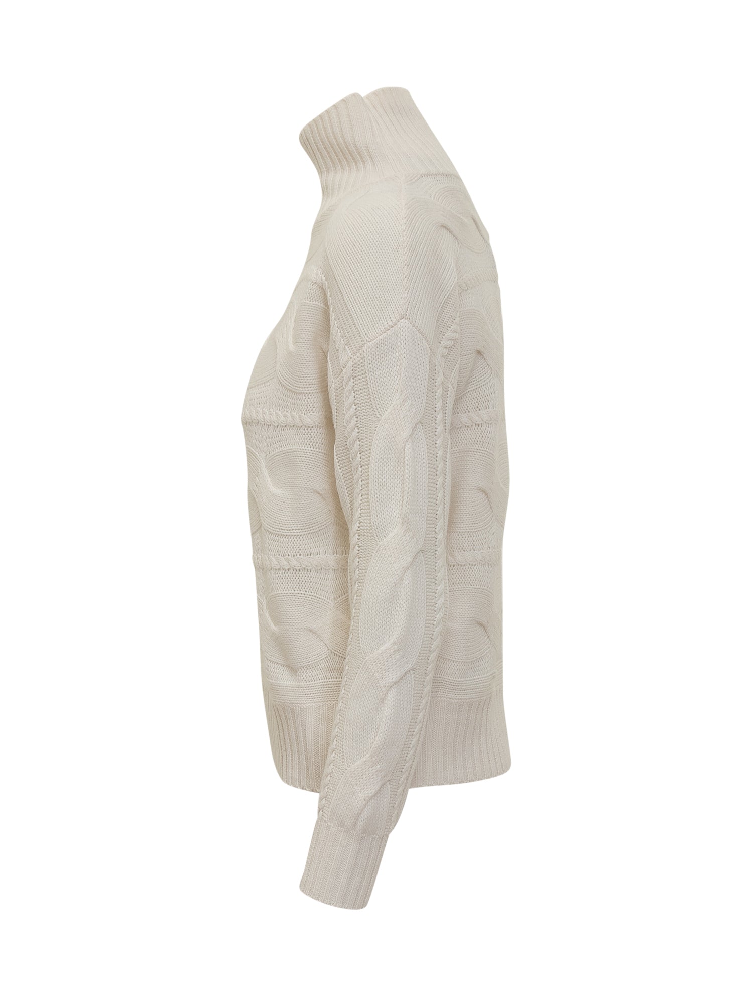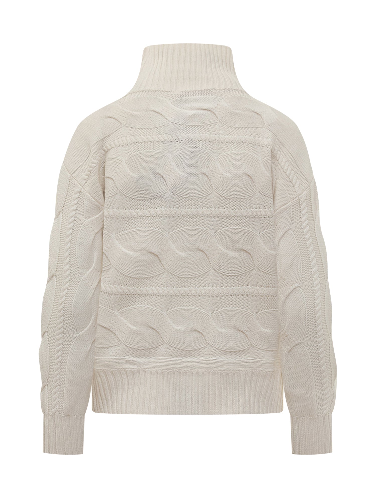 Dolcevita Max Mara Studio in lana color avorio con lavorazione a trecce. Modello a collo alto, maniche lunghe e fit morbido con bordi a costine.