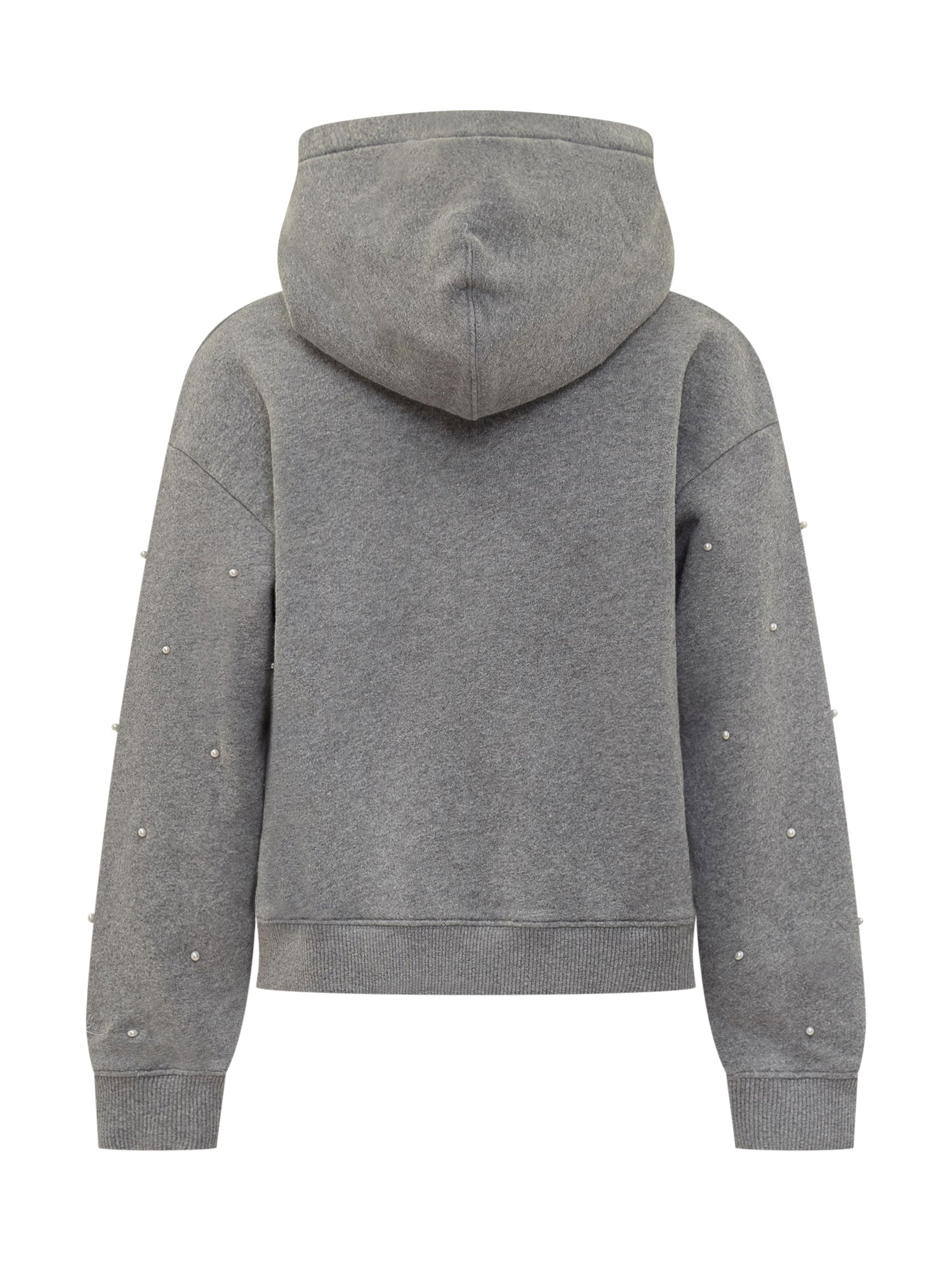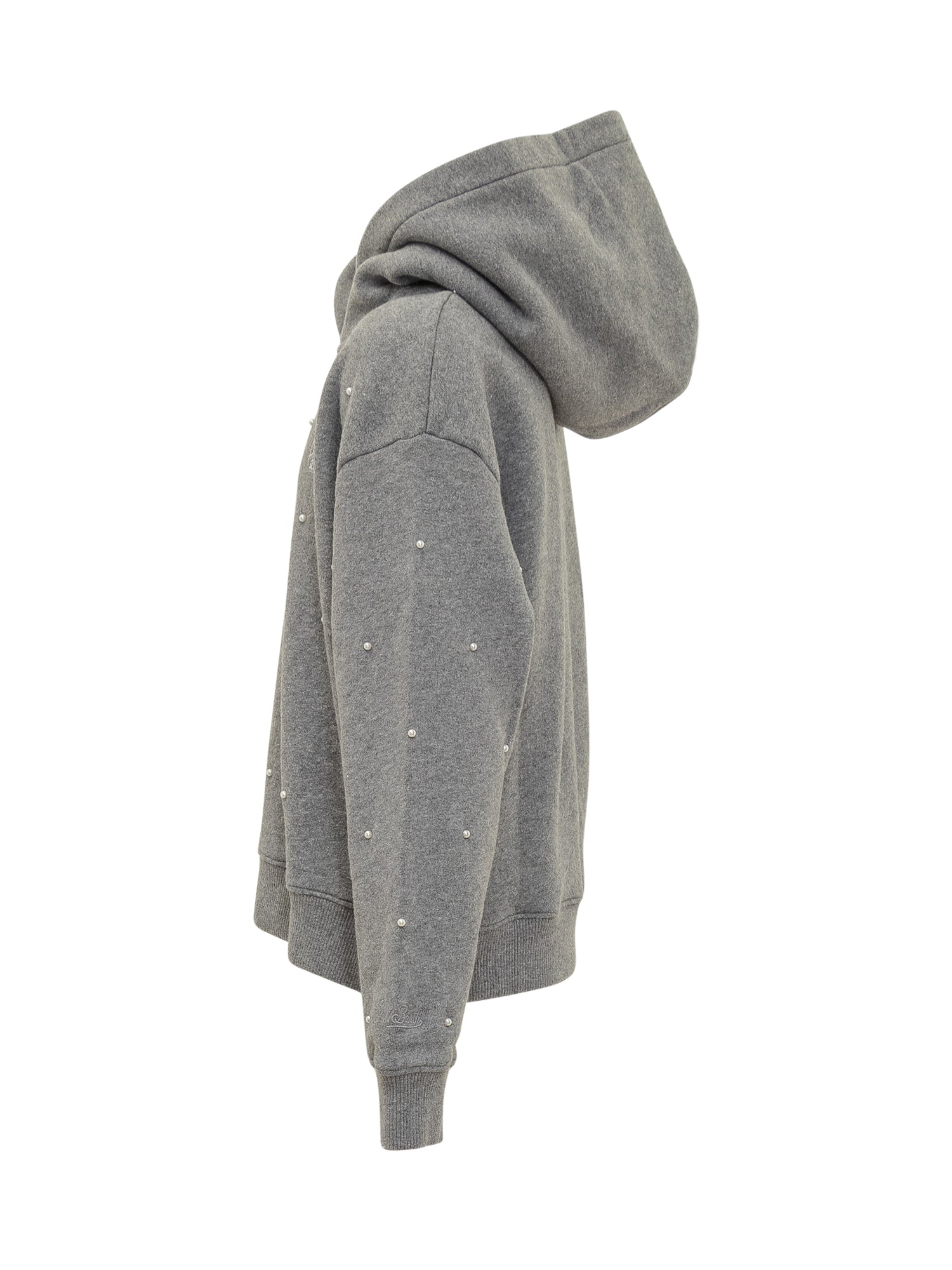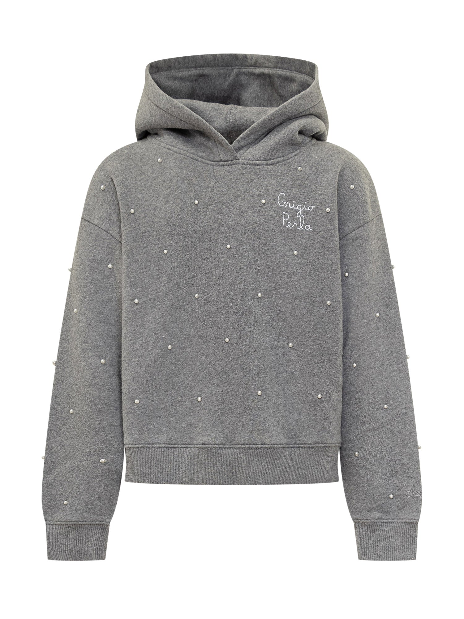 Felpa MC2 Saint Barth grigia con cappuccio e dettagli di piccole perle applicate.