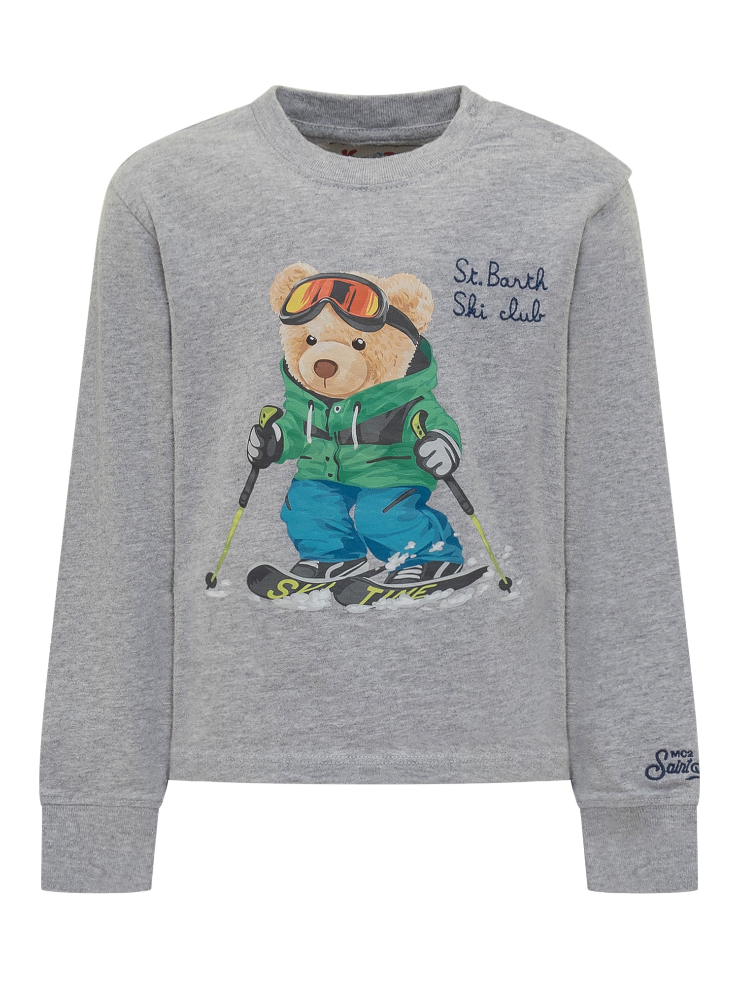Felpa MC2 Saint Barth grigia con stampa di orsetto sciatore e ricamo St. Barth Ski Club.