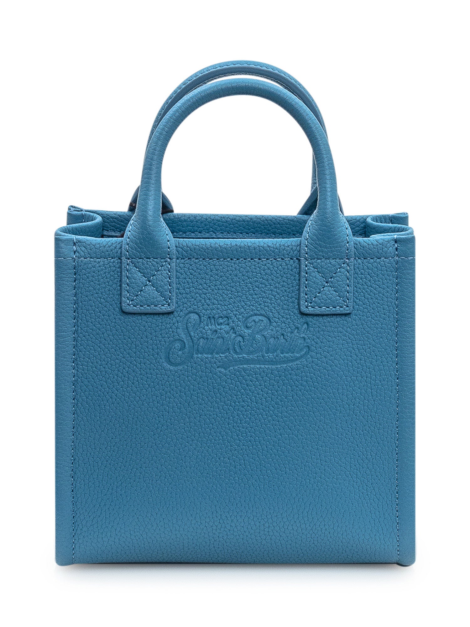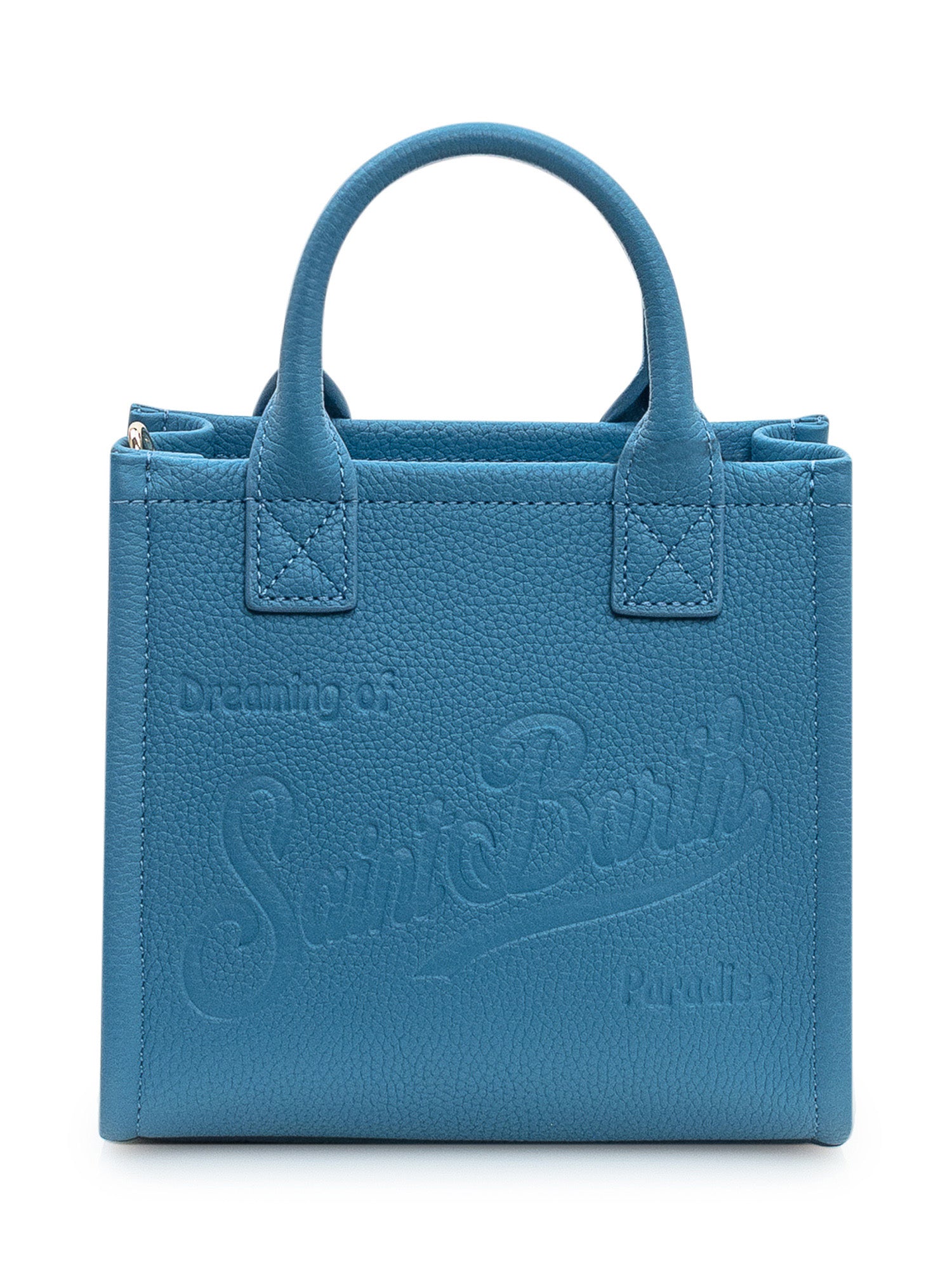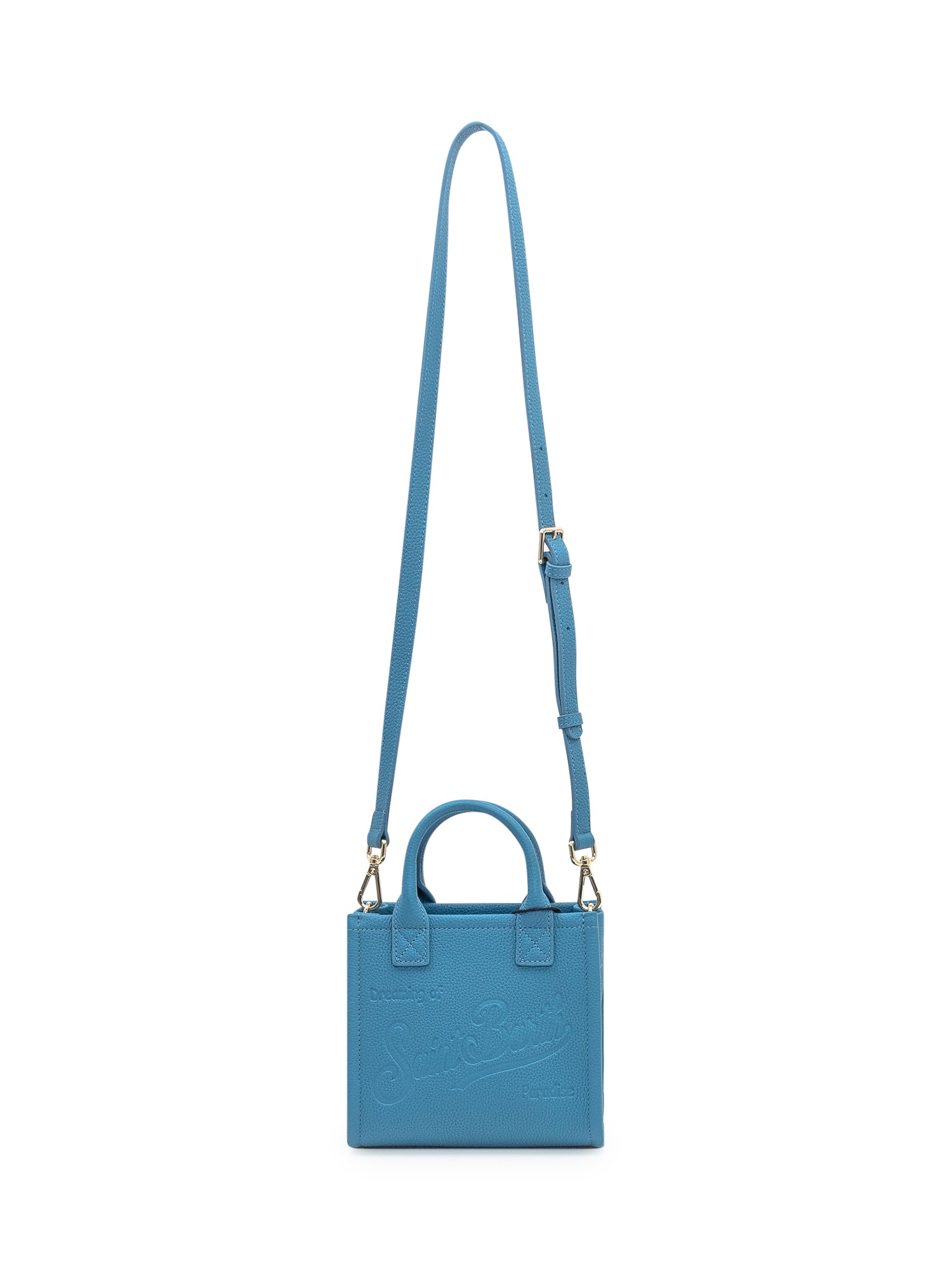 Borsa Vanity Bag Mini MC2 Saint Barth in pelle martellata azzurra con logo in rilievo.