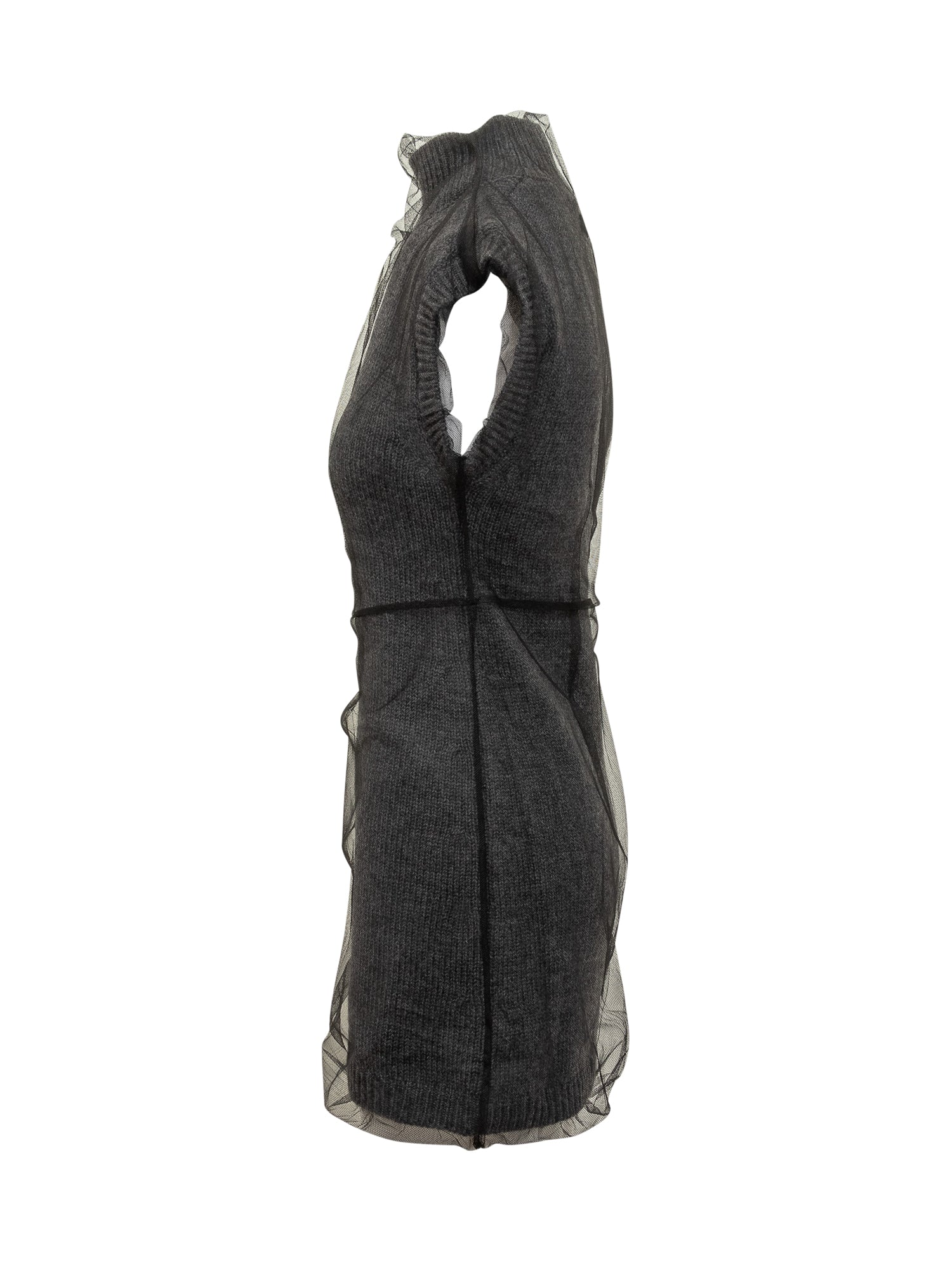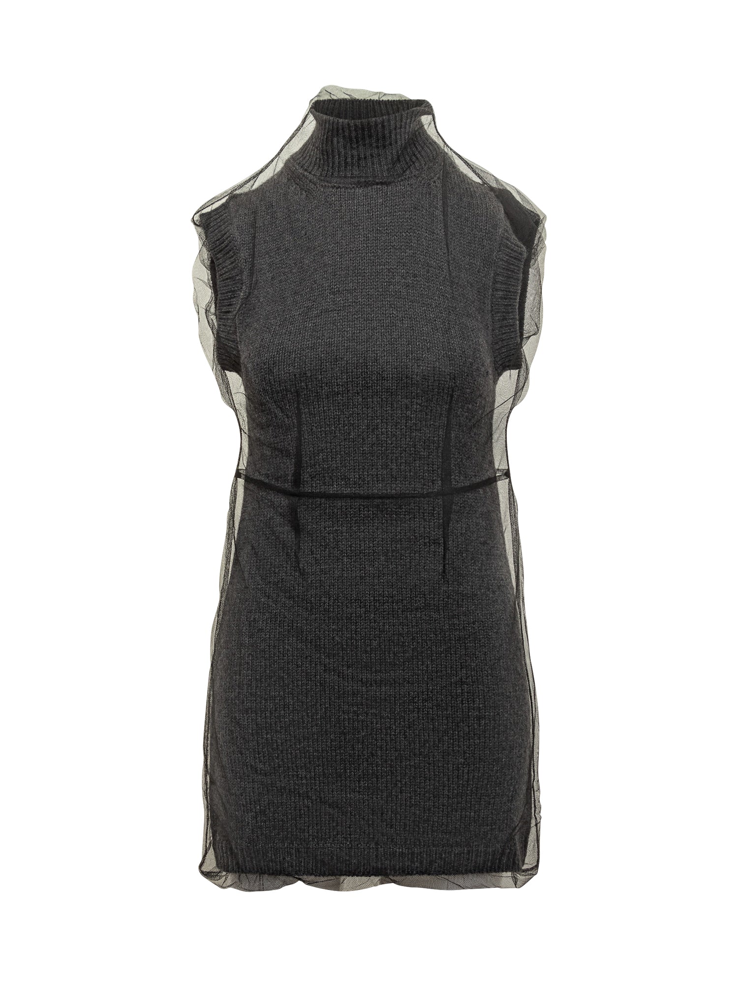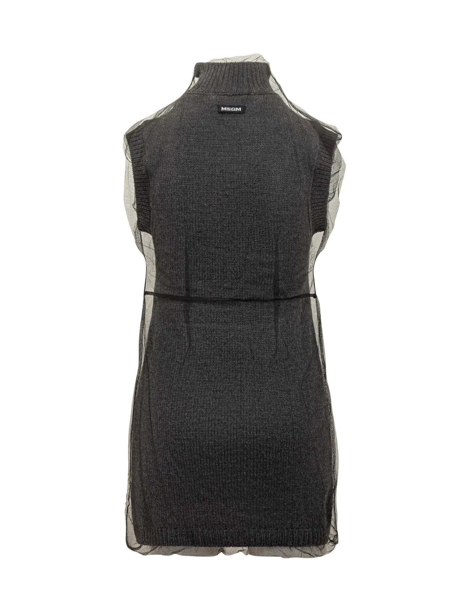 Abito Msgm in maglia di lana con strato di tulle trasparente. Linea aderente, collo alto e design contemporaneo per un look sofisticato e originale.