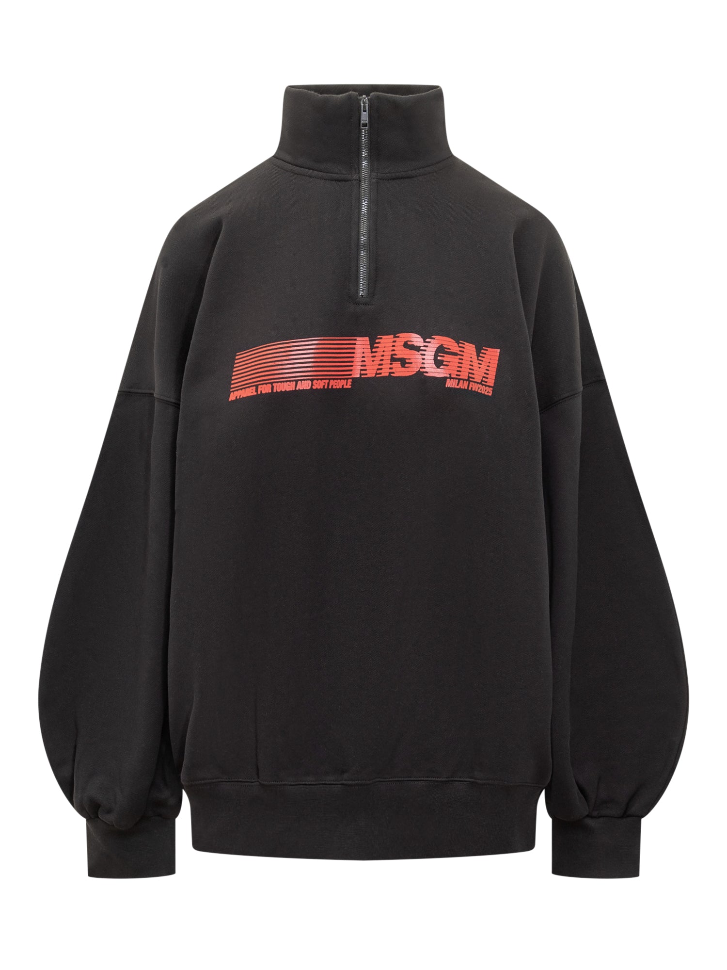 Felpa nera MSGM con mezza zip e logo rosso sul davanti. Design oversize con maniche ampie.